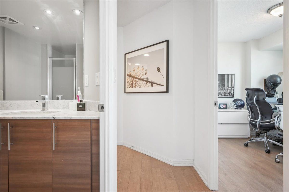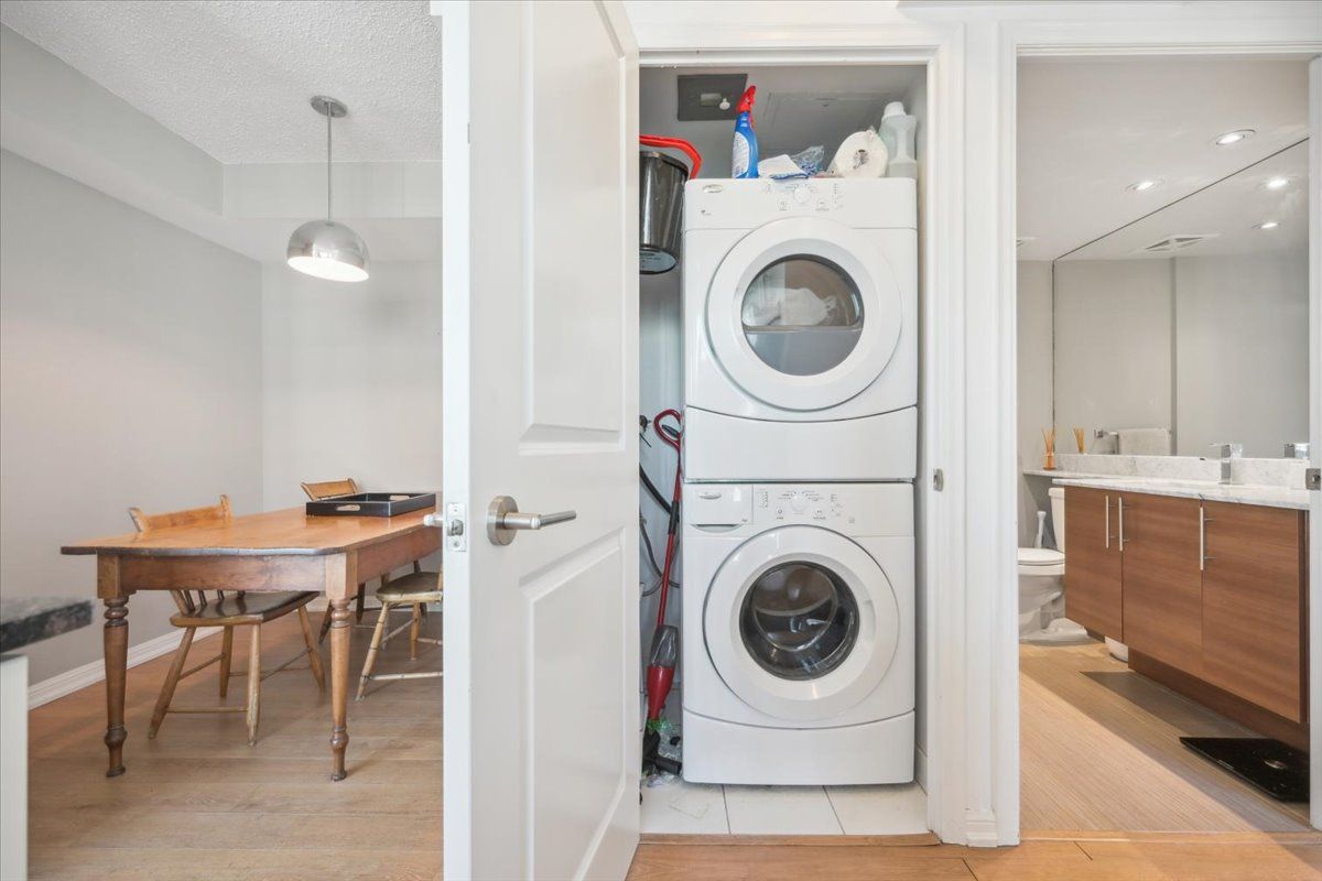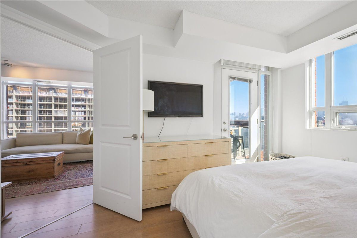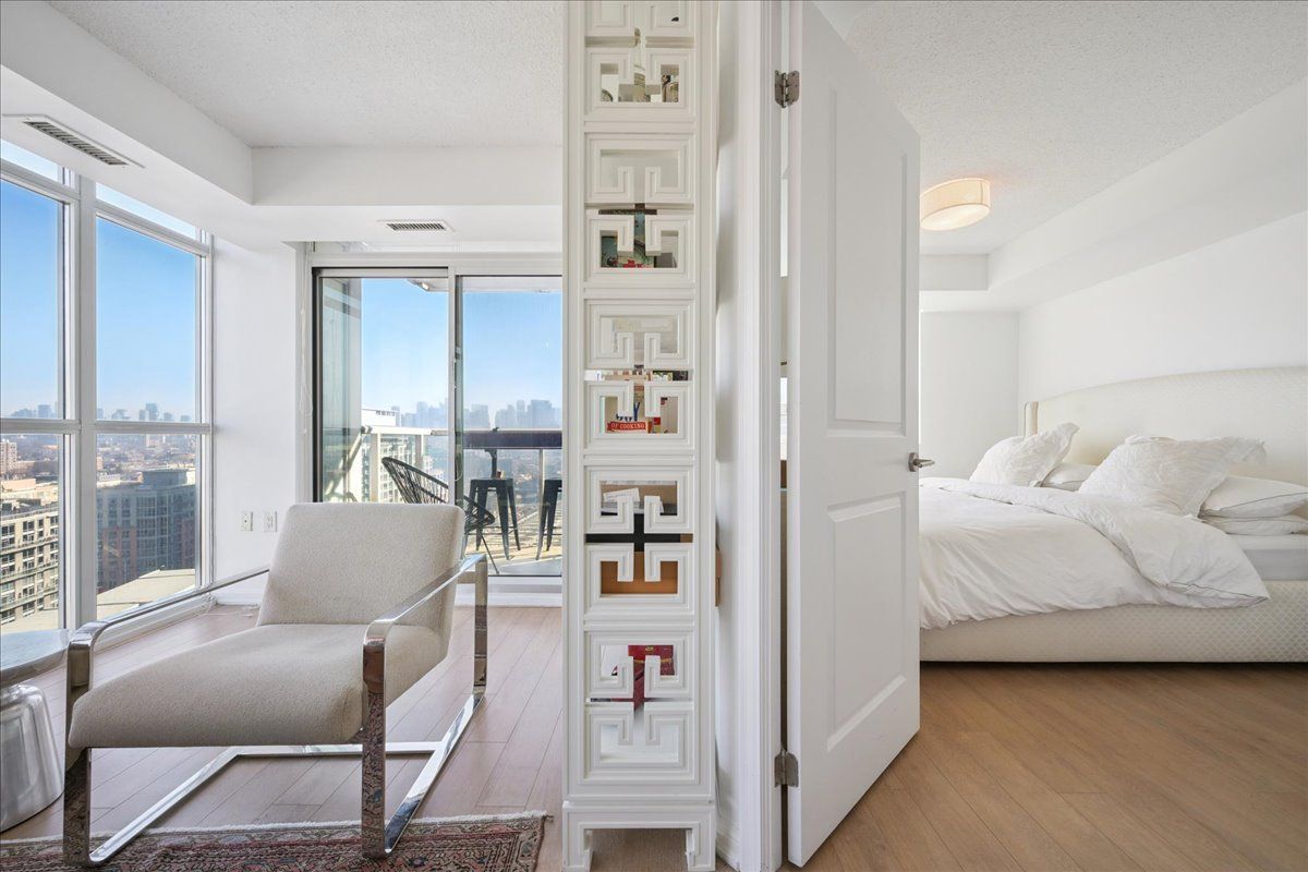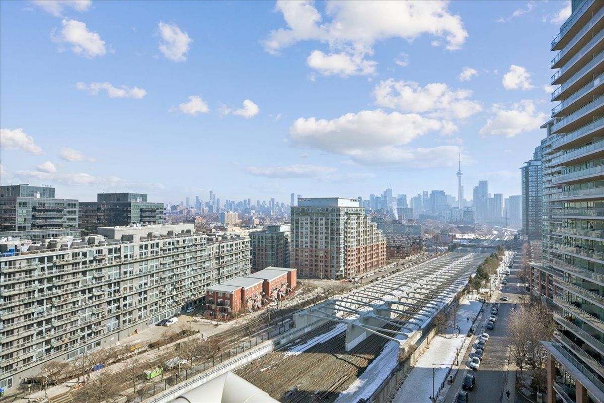 The coveted "02" unit at 125 wb, just in time for spring! Luxury meets functionality in a highly sought-after building, this stunning unit boasts panoramic million $ views of the city's iconic skyline + cn tower (unique only to these units), offering a front-row seat to the vibrant energy of liberty village. Bright, open-concept living space with floor-to-ceiling windows. Sleek, modern kitchen features stainless steel appliances, a full-sized fridge, granite countertops, and a spacious island perfect for entertaining. The expansive living and dining area seamlessly flow together, offering ample space for relaxation and hosting guests, all while taking in the stunning views of the city. Private balcony provides the perfect outdoor retreat to unwind after a busy day. The primary bedroom is complete with custom closet organizers and a luxurious ensuite bathroom. The second bedroom is generously sized, with ample closet space and a second full bathroom conveniently located. The den is ideal for a home office, library, nursery or even a cozy reading nook. With direct access to premium amenities such as a fitness center, party & media room and 24-hour concierge service to provide the utmost convenience. King st right outside your door. Custom closet organizers in each closet. This condo is just steps away from trendy shops, restaurants, cafes, and public transit, offering the perfect balance of city living and comfort.