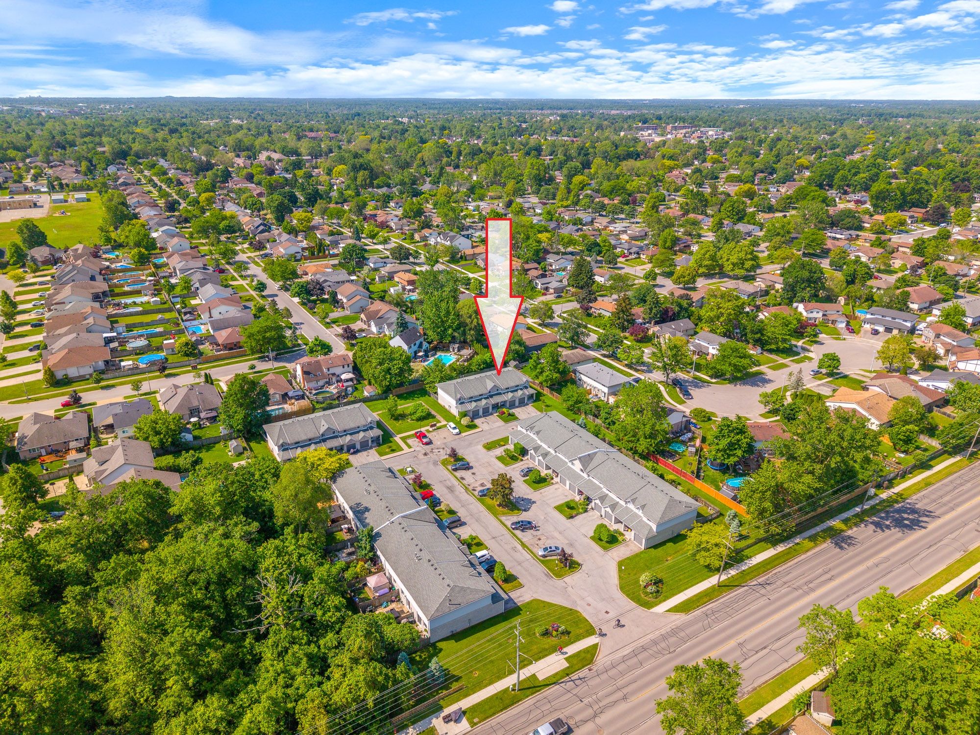 Beautifully renovated 3-bedroom townhouse in prime north welland location. Welcome to this impeccably kept and meticulously maintained 1,400 sq. Ft. 3-bedroom, 3-bath townhouse with attached garage, perfectly situated in a quiet, 24-unit condo community. This truly spotless, move-in ready home has been extensively renovated with over $75,000 in quality upgrades over the last few years, including a modern kitchen with island & stainless steel appliances, custom backsplash, complemented by maple hardwood floors and fresh paint. Every detail has been thoughtfully updated, including all interior doors and trim, and 3 stylish new bathrooms. Upgraded r50 attic insulation. The recently completed and professionally finished lower level offers a spacious rec-room with cozy gas fireplace, a brand-new 4-piece bathroom, a laundry room with newer washer & dryer, plus rough-in plumbing for a future bar or kitchenette, ideal for potential in-law or student accommodations. Enjoy outdoor living on your private rear patio, deck with gazebo and gas bbq line, surrounded by beautifully landscaped grounds, large trees and a privacy wall of mature cedars. This extremely well-managed complex has seen all the major improvements, including new roofs, windows, garage doors, and resurfaced porches. All of the roadways and driveways on this property are scheduled to be completely re-surfaced with new asphalt this year (2026). Low taxes & low condo fees plus a strong and substantial reserve fund provides added peace of mind. Located on a quiet dead-end street, you're just steps from niagara college, the ymca, seaway mall, and the best of north welland's shops and restaurants. You can retire from grass cutting & snow shovelling and enjoy a nice maintenance free, condominium lifestyle! Don't miss your chance to own in this rarely available and highly sought-after community.