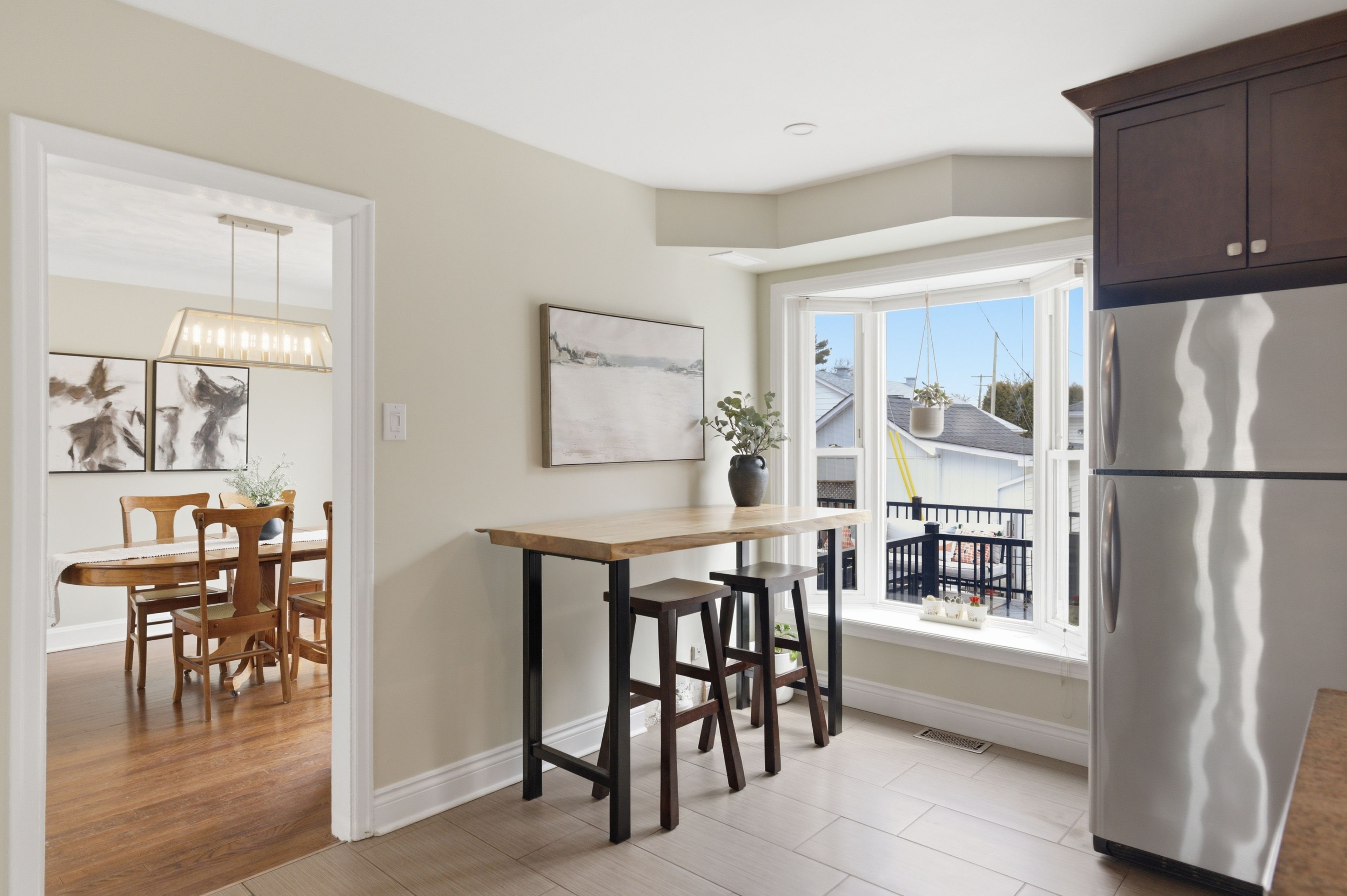 • Well-designed U-shaped kitchen with ample cabinetry and breakfast nook.