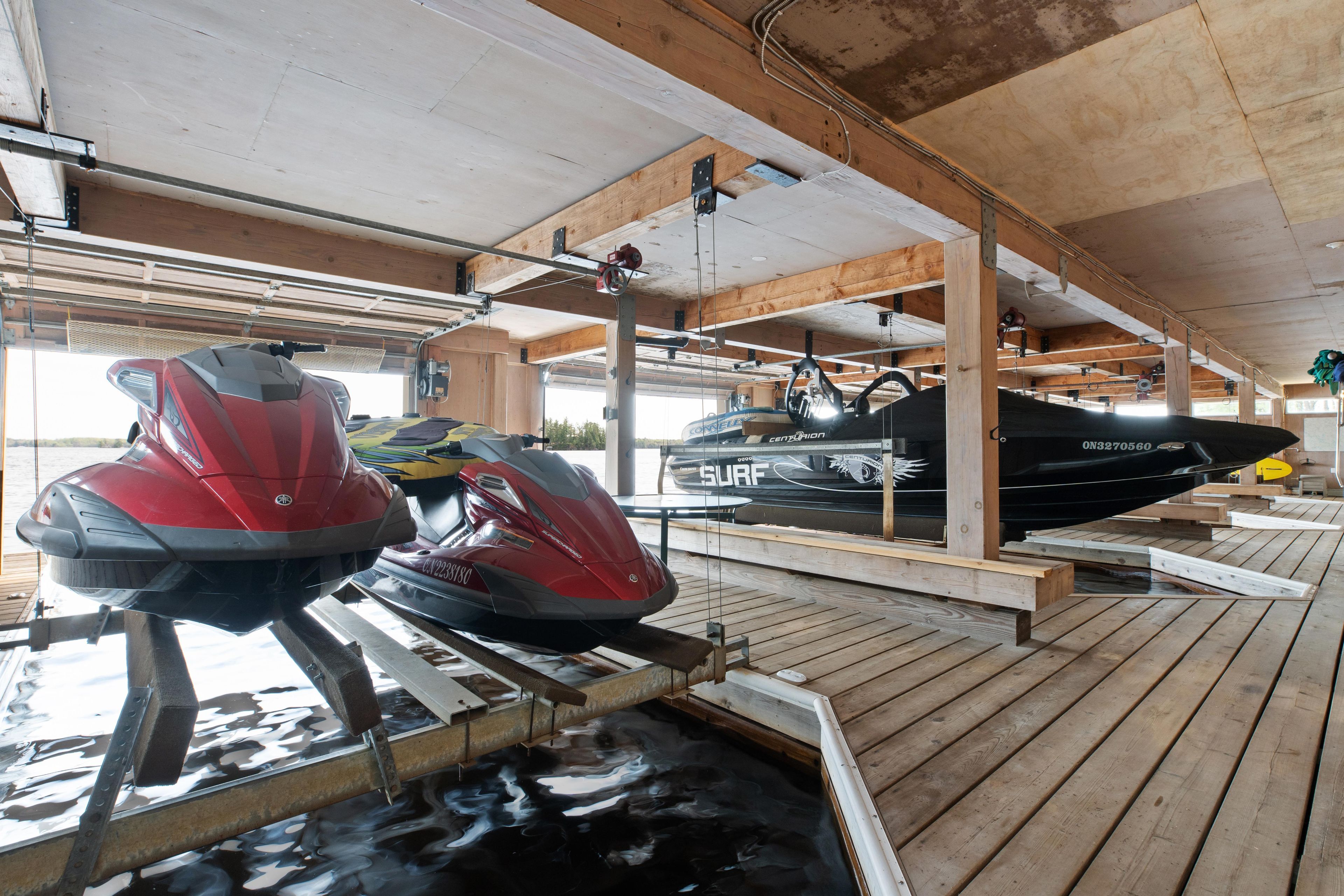 • Oversized two-story boathouse with four slips and panoramic lake views.