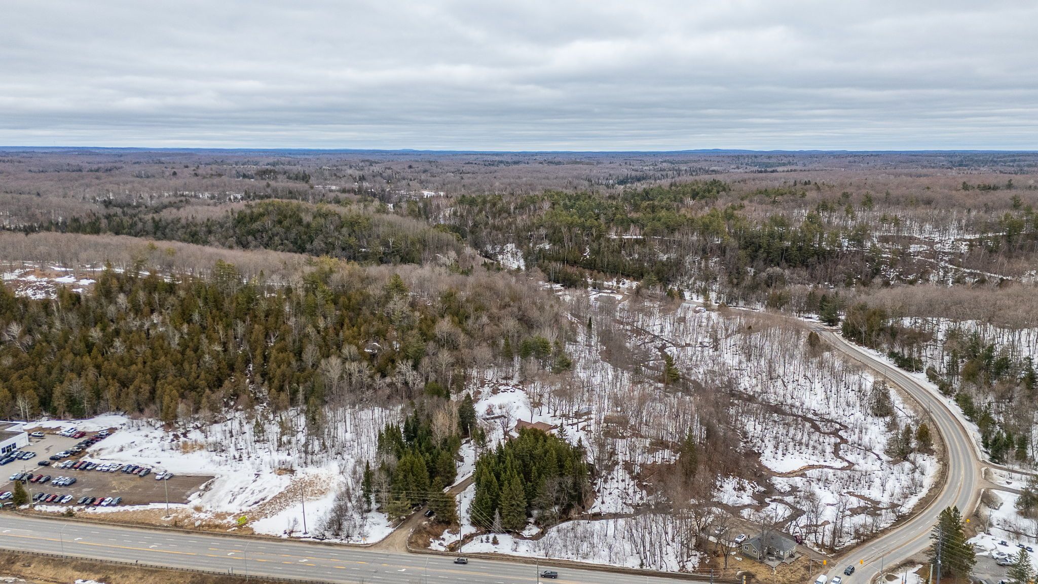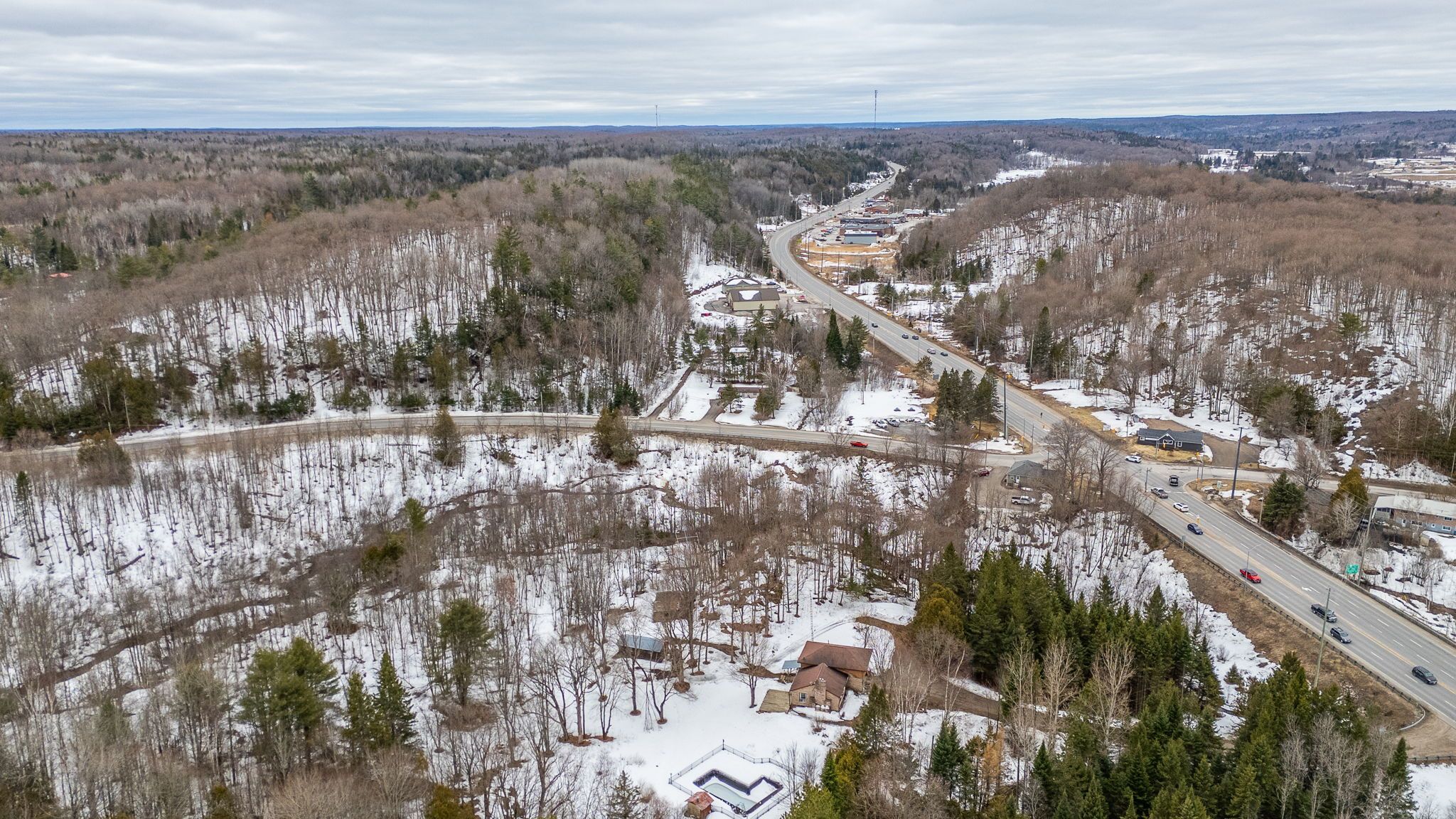 A rare opportunity to be explored with two parcels totaling 23. 65 acres, including a 3. 05-acre parcel and an adjacent 20. 6-acre parcel. Designated in the official plan as service and business area, and residential. Zoned c1, ru, and hz. The site fronts on three roads: south lake road, panorama park road, and has easy access from highway 35. It includes a dedicated turning lane with a wide entrance and driveway off of the highway. At the heart of the property sits a lovely split-level 3-bedroom, 2-bathroom home. With an attached garage and two outbuildings, it offers ample storage. Surrounded by a serene natural setting with abundant wildlife and room to explore. The home provides privacy, while maintaining a prime location that combines peaceful country living with convenient access to town. This is a truly unique offering.