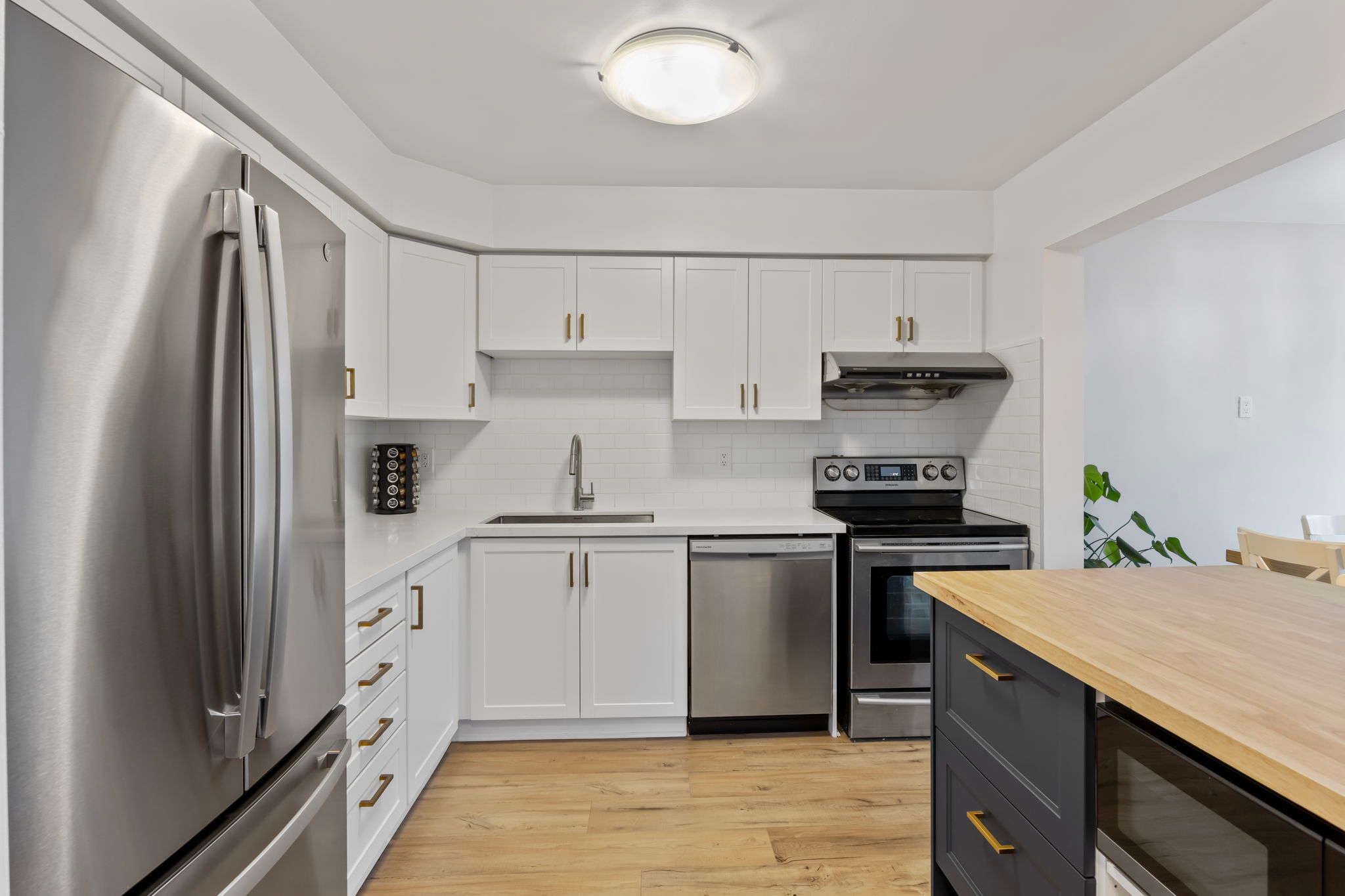 • Bright kitchen features quartz countertops and breakfast bar for convenience.