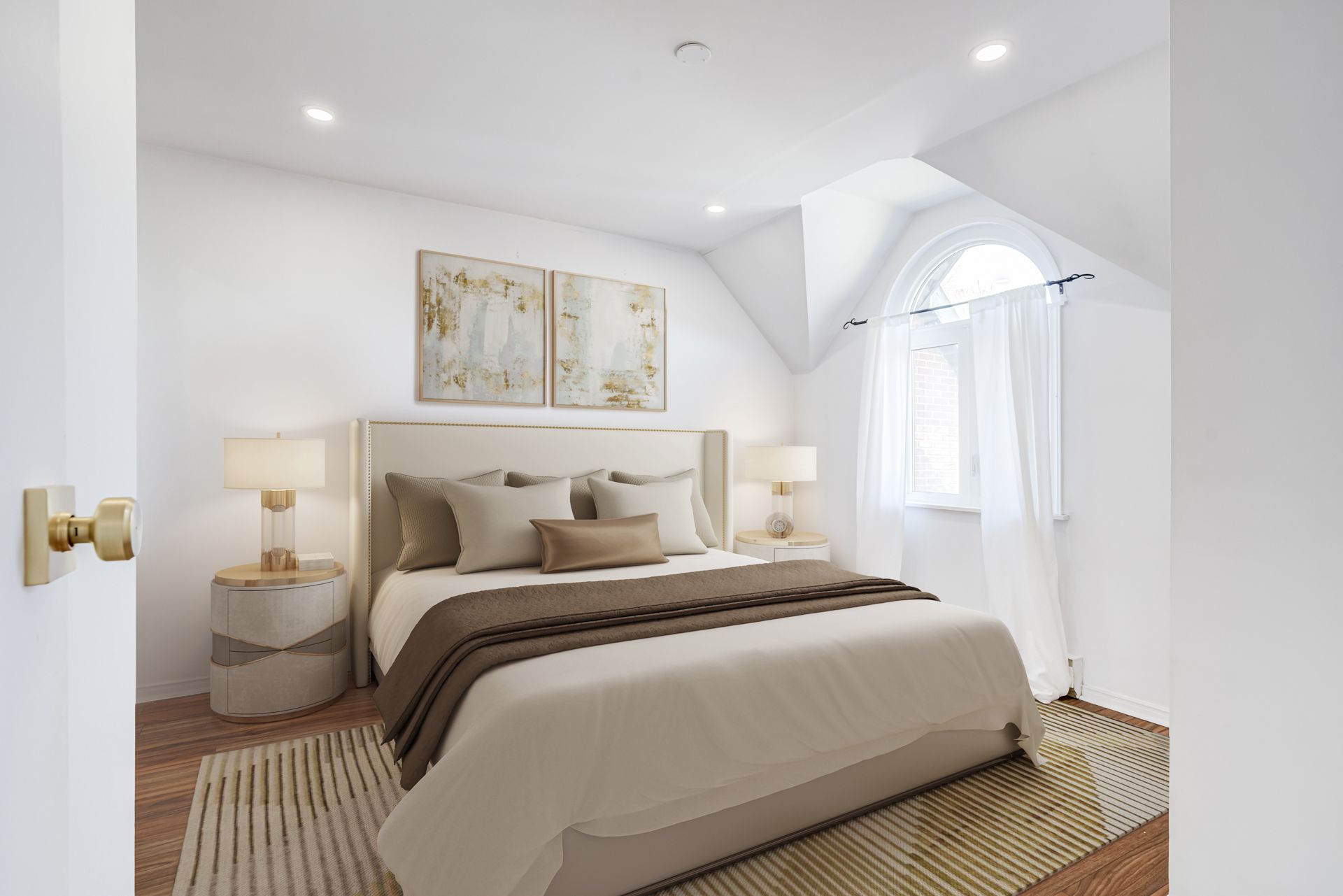 Move-in ready 2-storey condo townhouse in the heart of king west, just steps to liberty village, transit, parks, and a wide selection of restaurants and cafés. Offering over 800 sq ft of bright, well-designed living space across two levels, the open-concept main floor features large windows and a functional layout with great natural light. The upper level includes two bedrooms, plus a versatile den. Primary bedroom with lots of natural light, a great sized closet & fits a king size bed! The second bedroom works equally well as a nursery, guest room, or home office. Renovated kitchen with quartz countertops & updated appliances. Bell internet and cable are included in your rent. Shared bbq area, multiple overnight visitor parking spots. Streetcar access at your doorstep makes commuting downtown simple. Includes ensuite laundry, one underground parking space, and a locker.