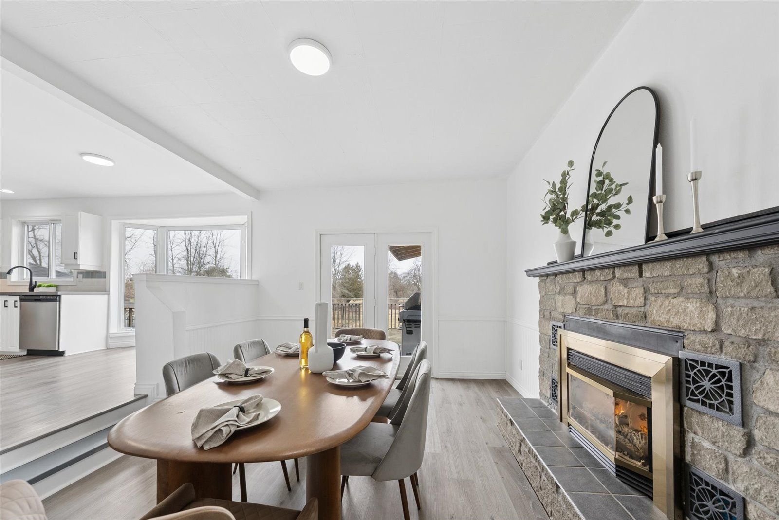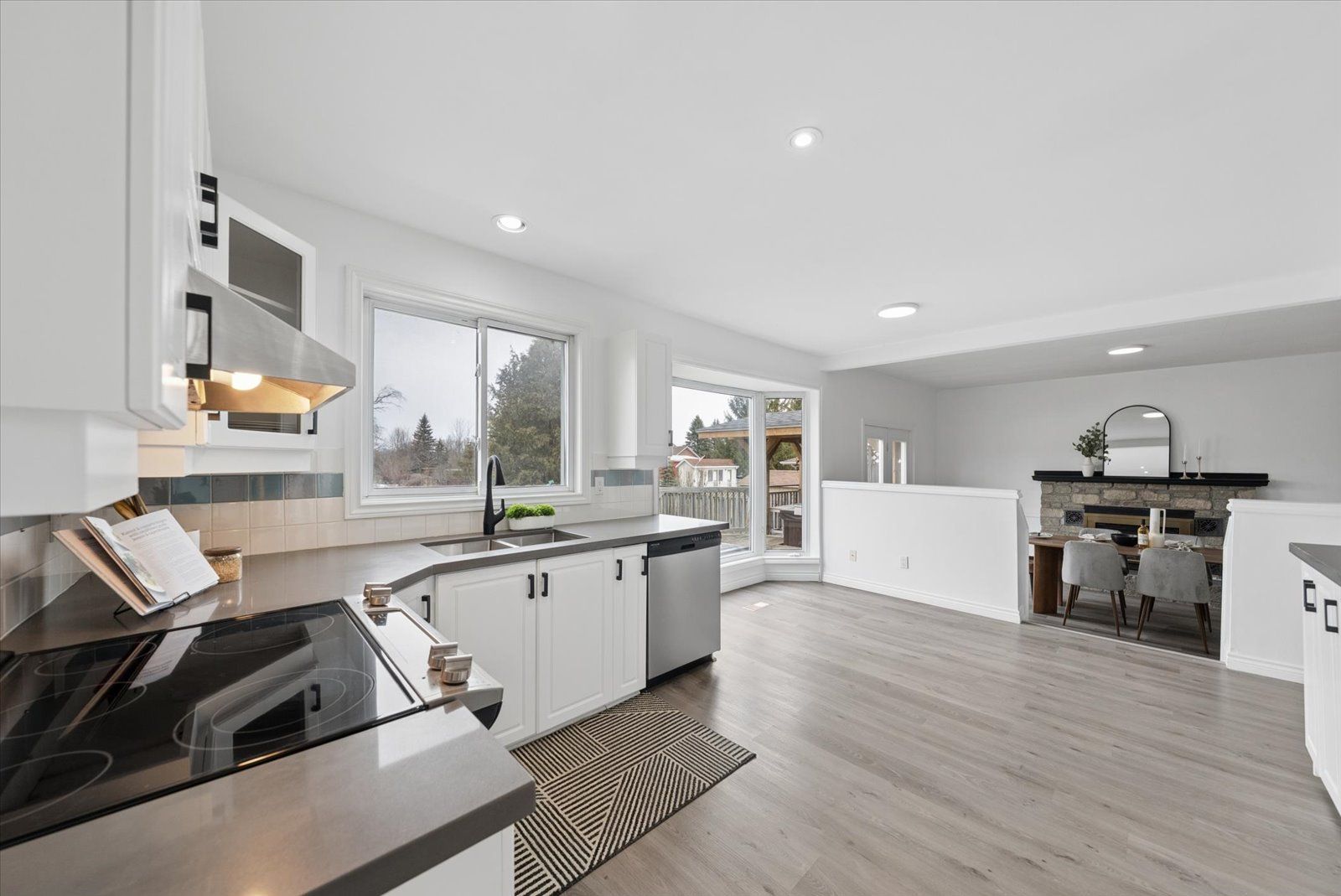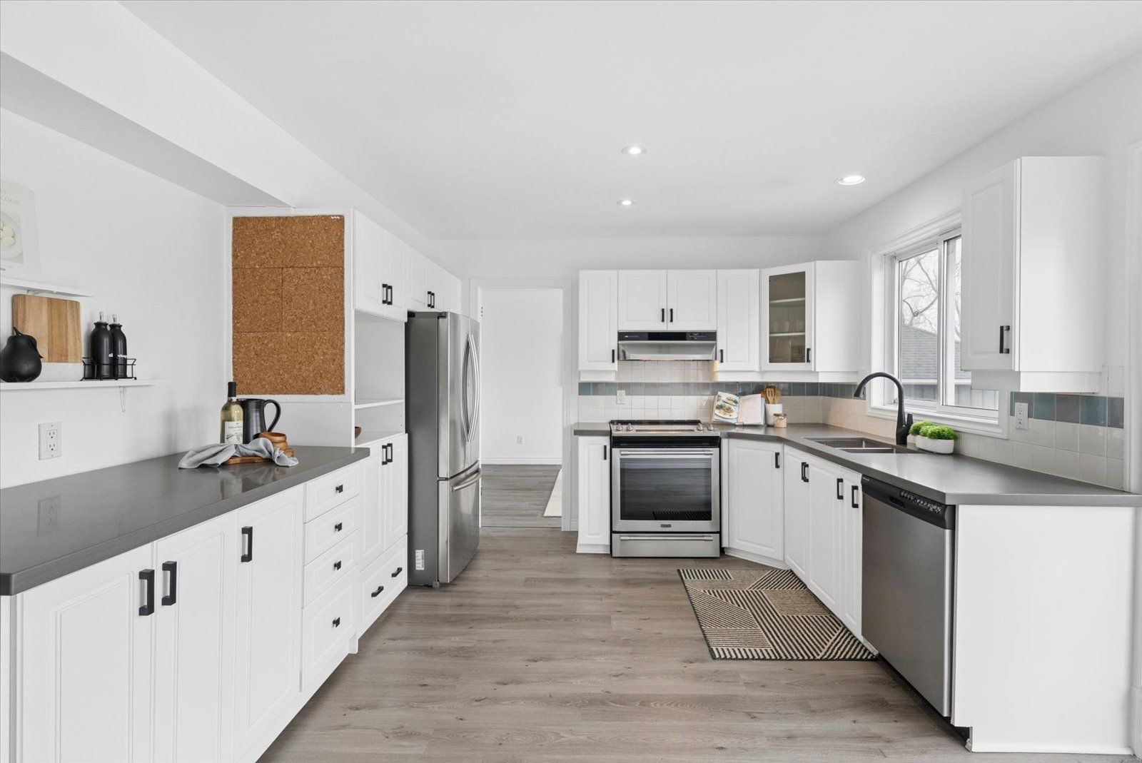 • Modern eat-in kitchen with stainless steel appliances and great for gatherings.