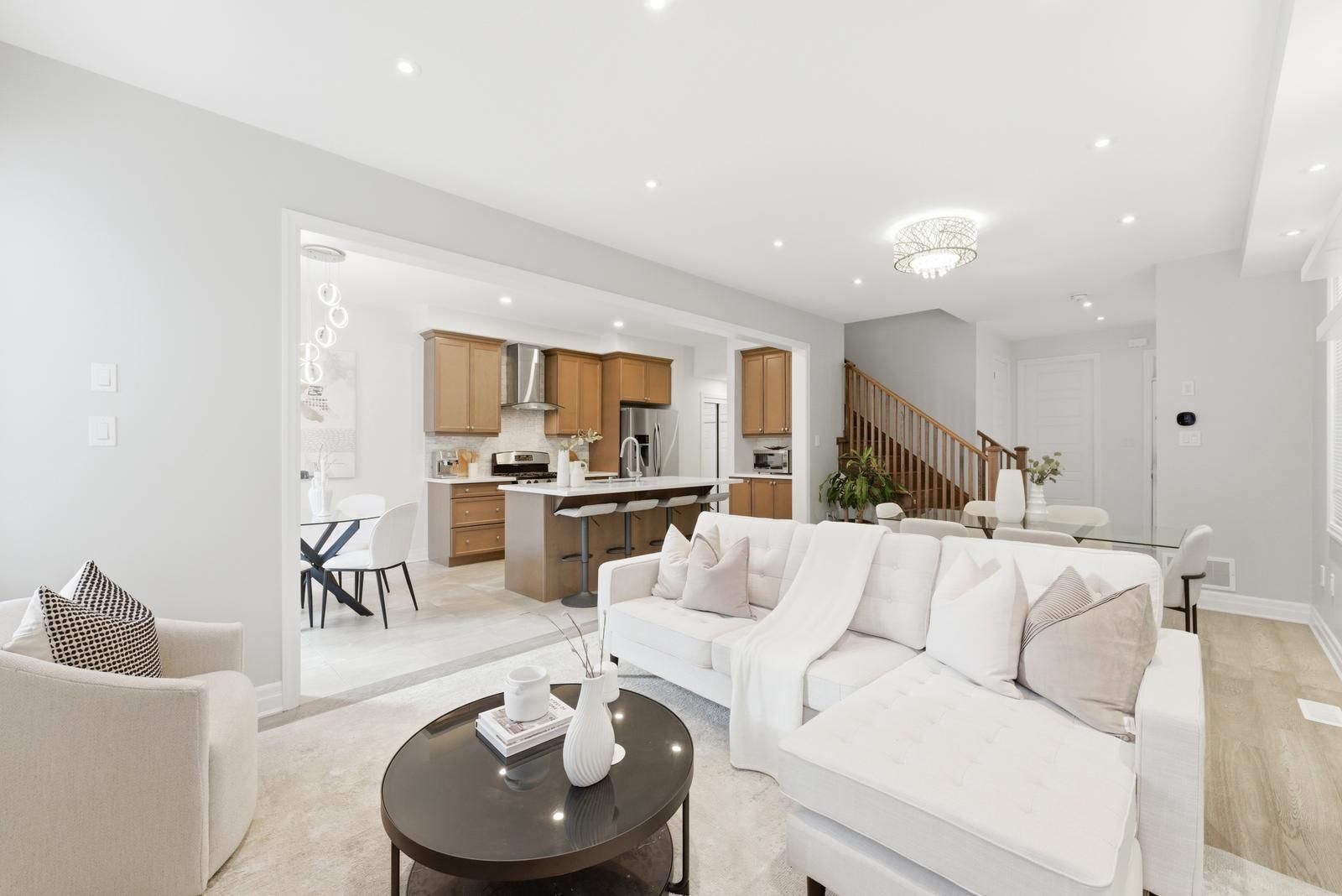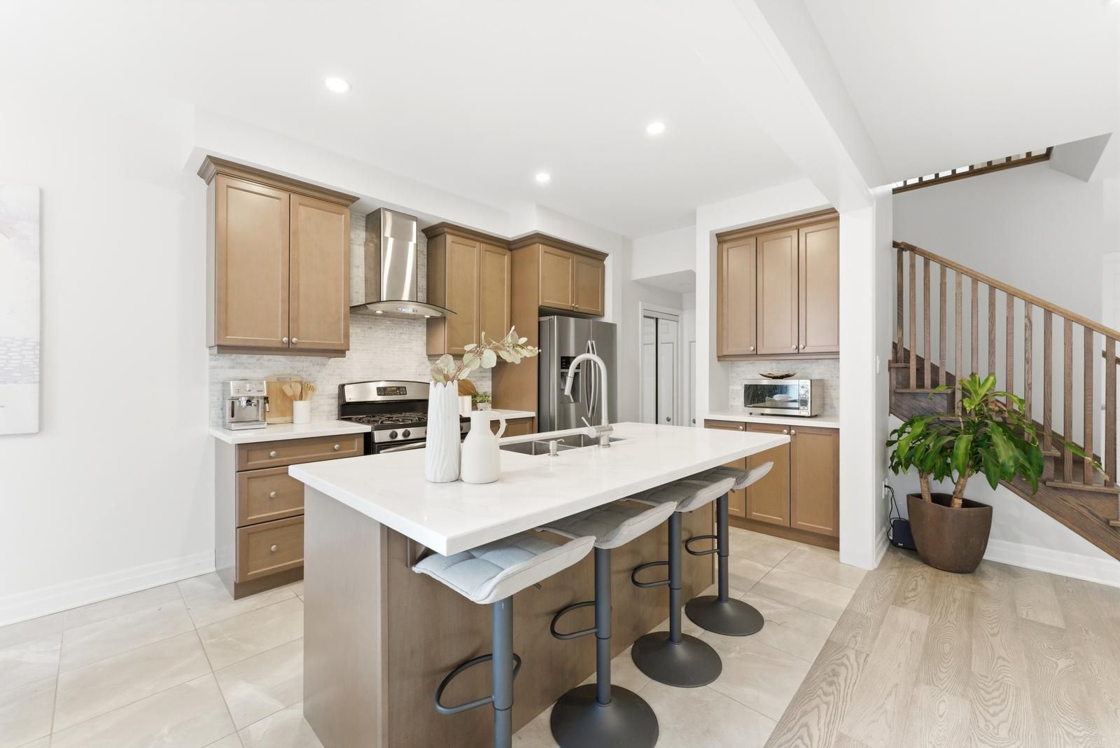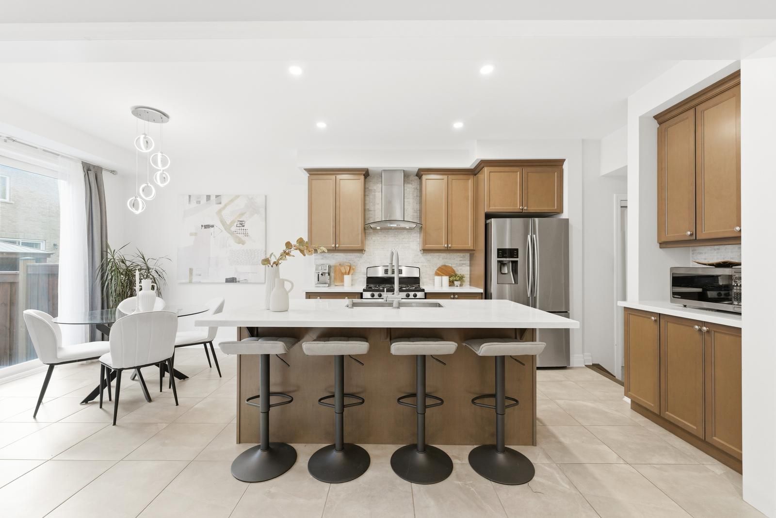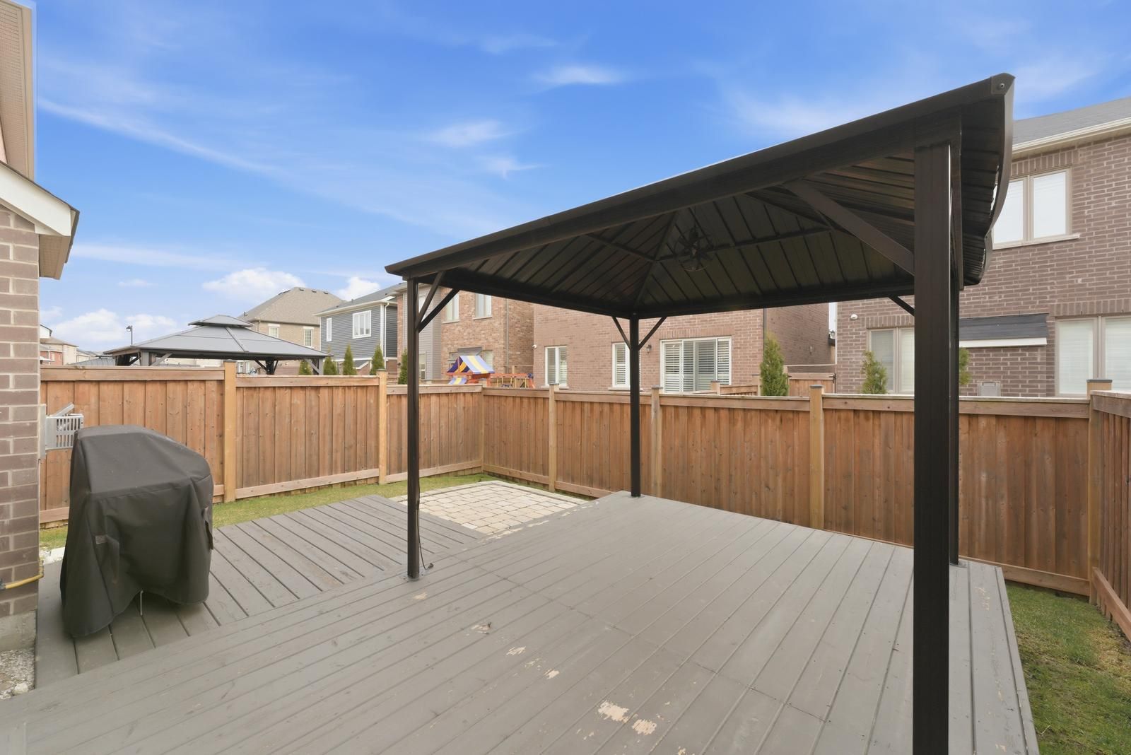Beautiful open-concept layout featuring living, dining, kitchen, and breakfast areas. Oak staircase and hardwood floors throughout. Includes a study room, stainless steel appliances, gas range with chimney-style vent, quartz countertops, pot lights, chandeliers, custom backsplash, and a large island. The breakfast area opens to a decked backyard. Primary bedroom offers a walk-in closet and a 4-piece ensuite. Additional features include a loft, extended driveway, deck, and convenient second-floor laundry.