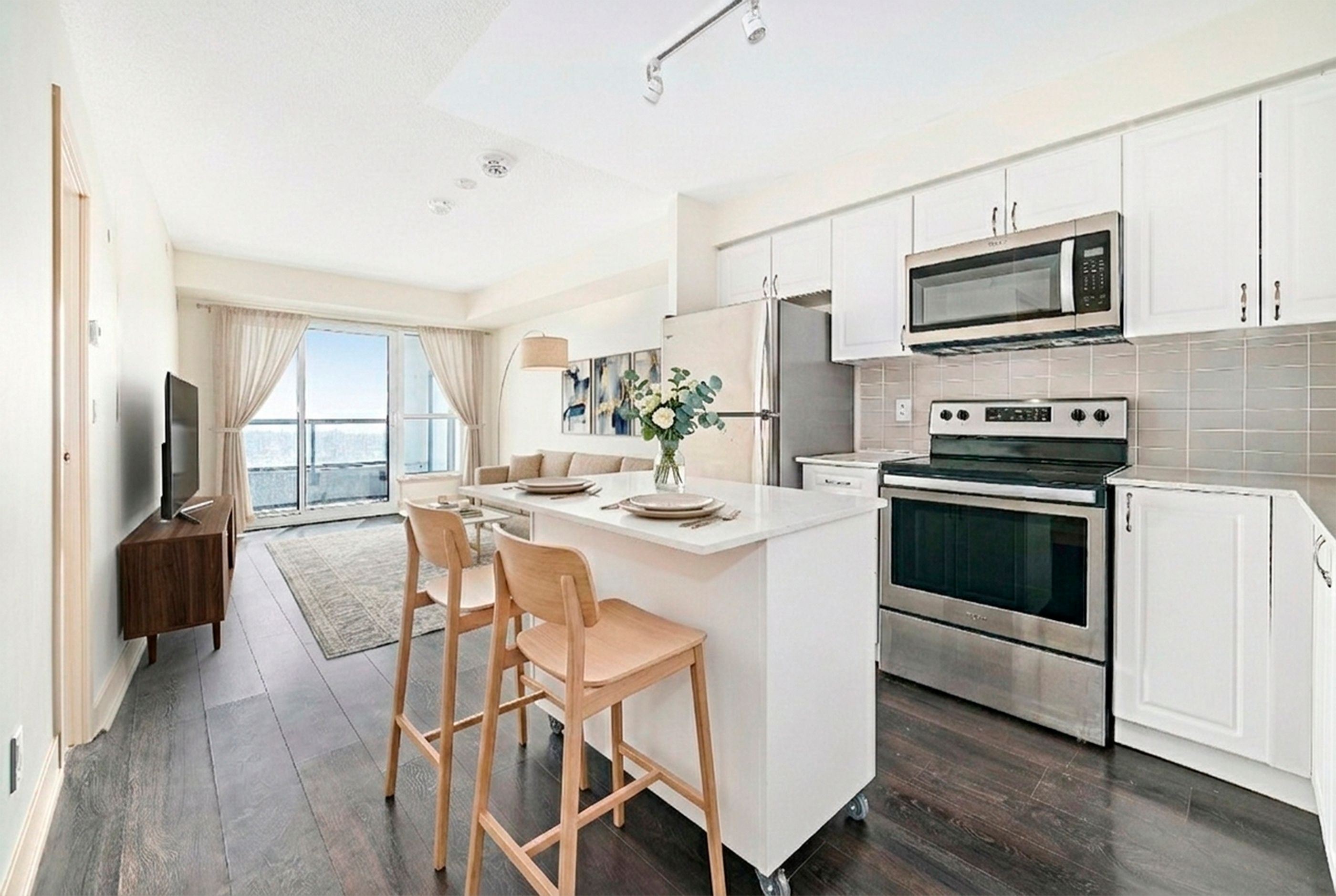 Bright and spacious one bedroom plus den condo available for lease! This suite boasts 700 sq ft. Of living space & a modern open-concept design with a large living area, contemporary kitchen w/ stainless steel appliances, and a flexible den that can serve as a home office or tv room. Step out onto your private 125 sq. Ft. Balcony and take in clear unobstructed south views of lake ontario & frenchman's bay. Ideally situated just moments from the go station, pickering town centre, parks, restaurants, pickering beach and shopping, this location delivers exceptional convenience and lifestyle. The building provides outstanding amenities, including a 24-hour concierge, outdoor pool, party room, gym, guest suites and bbq area-offering everything you need for comfortable, low-maintenance living. Please note no parking space is included.