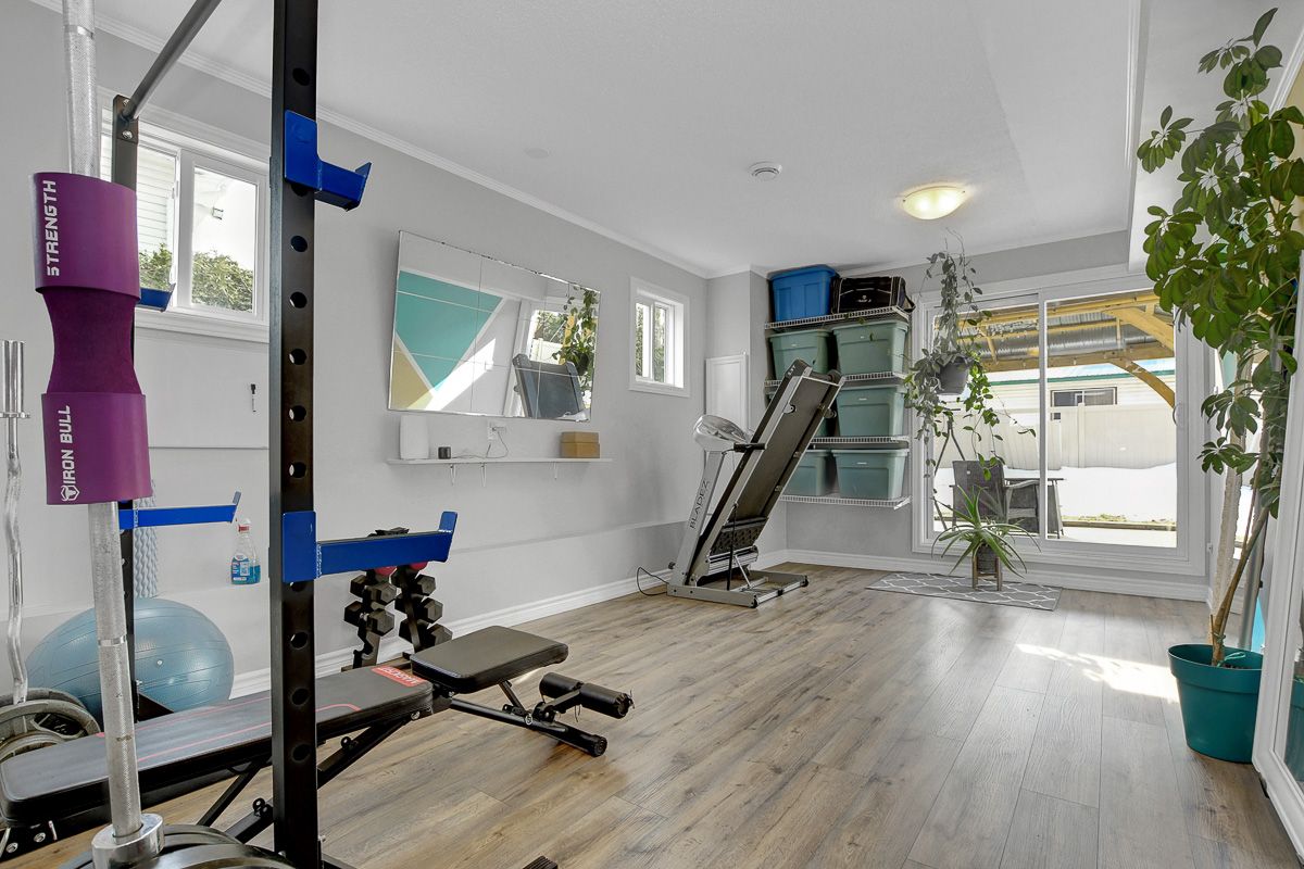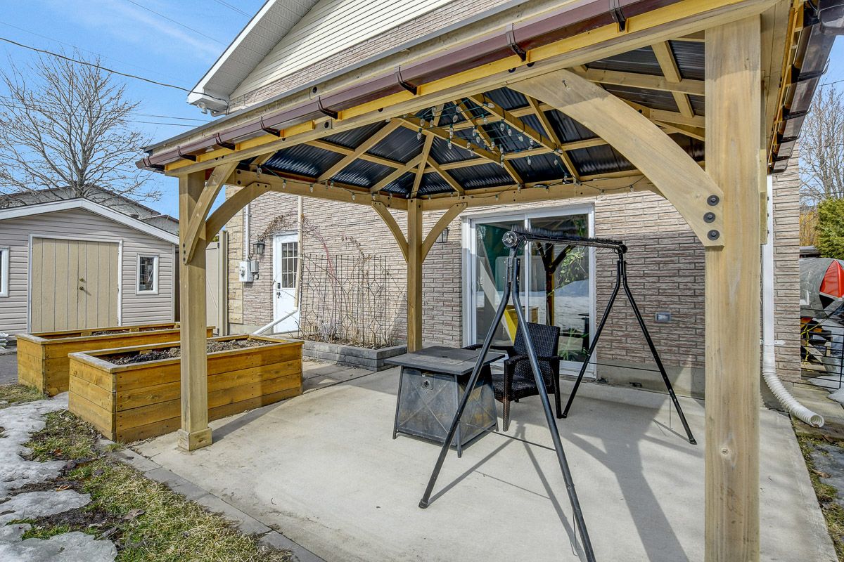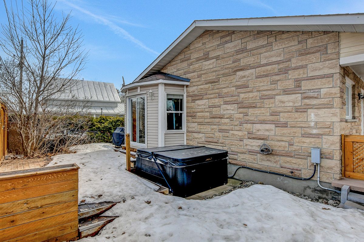 A superb 3 bedroom, 3 bath renovated bungalow with a walk-out basement and double garage! This home truly checks all of the boxes.! The modern finishes begin with the contemporary foyer ('24), leading you into a re-imagined main living space. So many updates here! A smartly planned new kitchen by potvin ('23) with quartz counters, pot and pan drawers, apron sink, additional pantry, pot lights & ss appliances. A very large living room provides ample space for get-togethers, framed with a gas fireplace. Patio doors lead to a side yard with the hot tub, bbq and deck. The main level has lvt flooring ('23) - easy care and sharp looking! The primary bedroom features a renovated 3 pc ensuite ('24) with heated flooring and a large walk-in closet with custom storage. Secondary bedrooms are well proportioned. Updated 5 pc main bath with electric fireplace to enjoy those long baths. Even more living space on the lower level! Updated stairs with new banisters and railing, lending that contemporary feel, bring you to an expansive family room with a wet bar, custom cabinetry and seated bar area. Movie nights in this space are a must! A flex room - now being used as a gym - has patio doors leading to the large yard with shed, gazebo, raised garden beds, patio and pvc fencing ('25). Great mudroom with built-in cabinetry leading to the inside entry garage. Laundry, cold storage and another 3 pc bath complete this level. The home was recently converted ('22) to forced air system. Come and create new family memories!