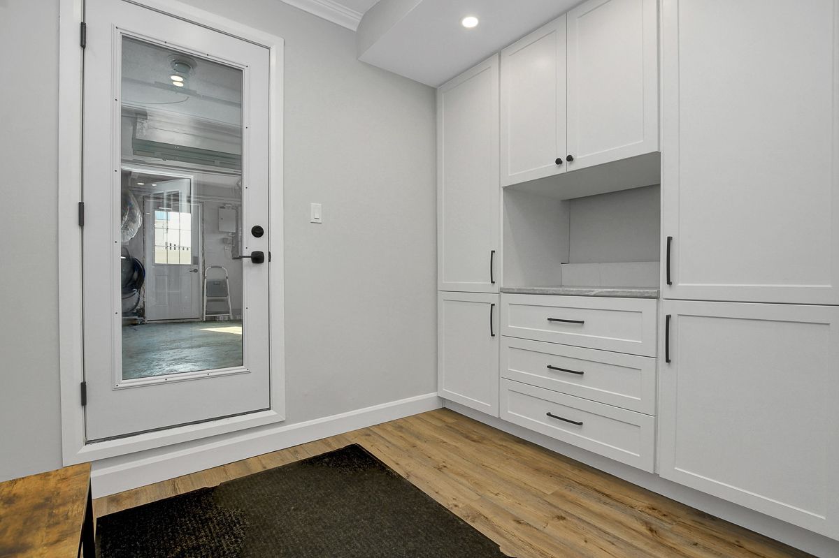 • Updated mudroom with built-in cabinetry for added convenience.