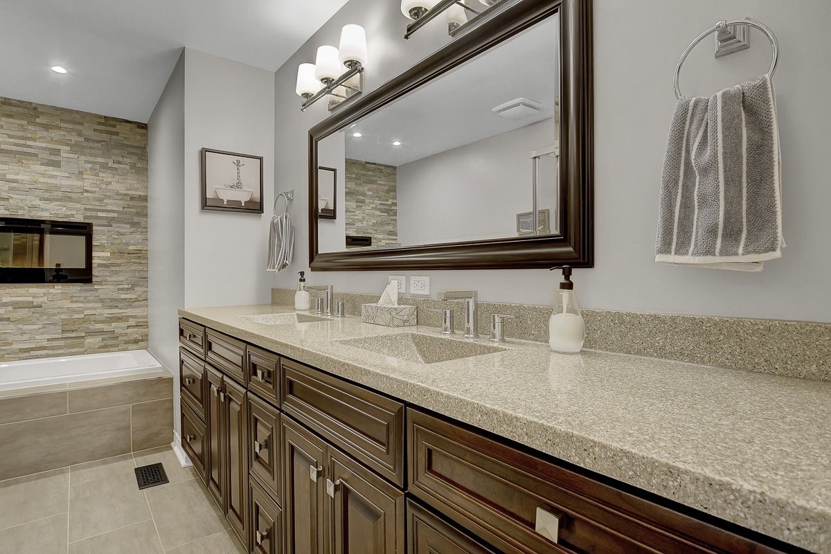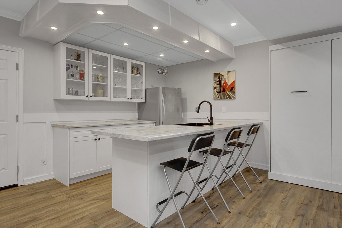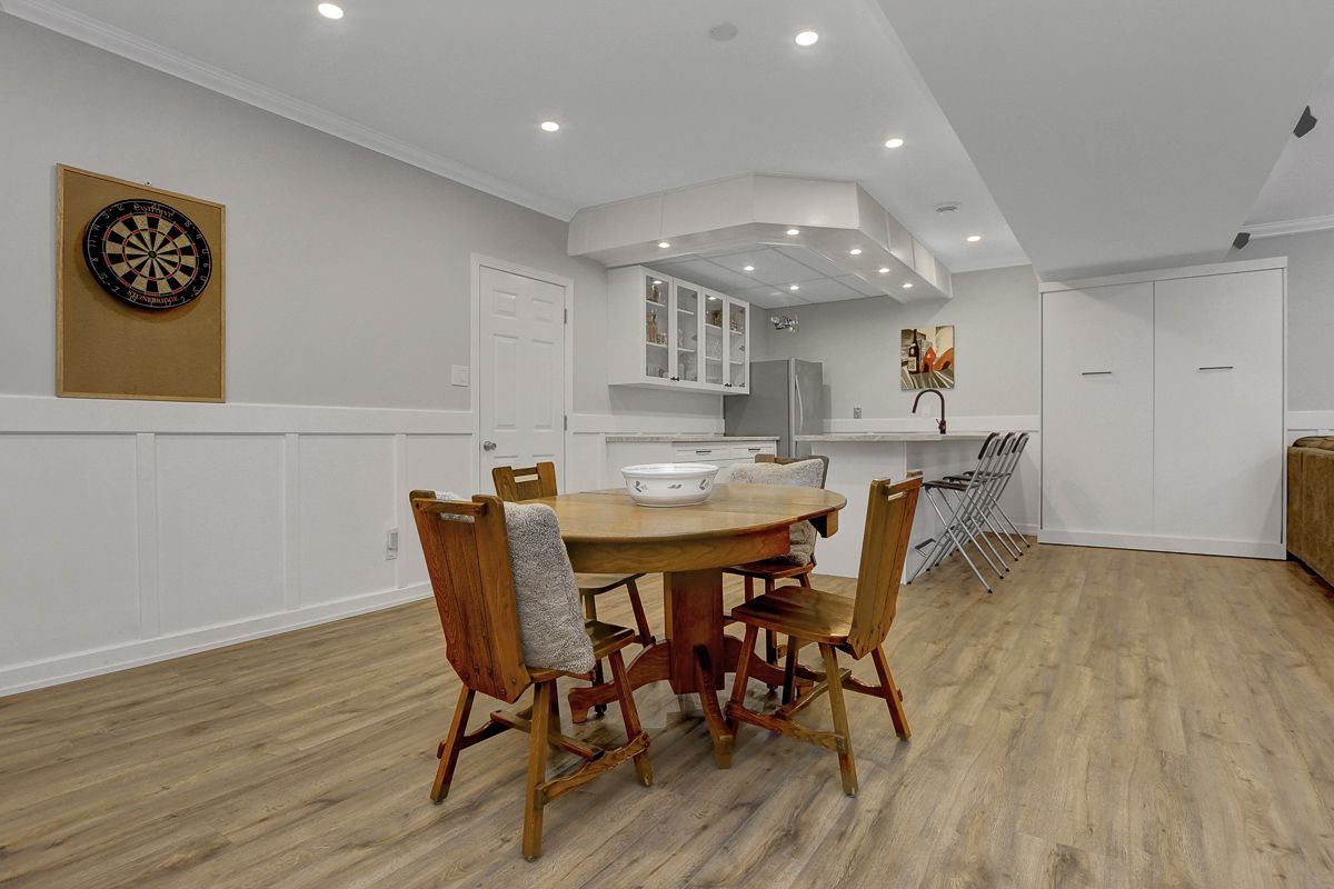 • Large lower level with a wet bar, ideal for movie nights.