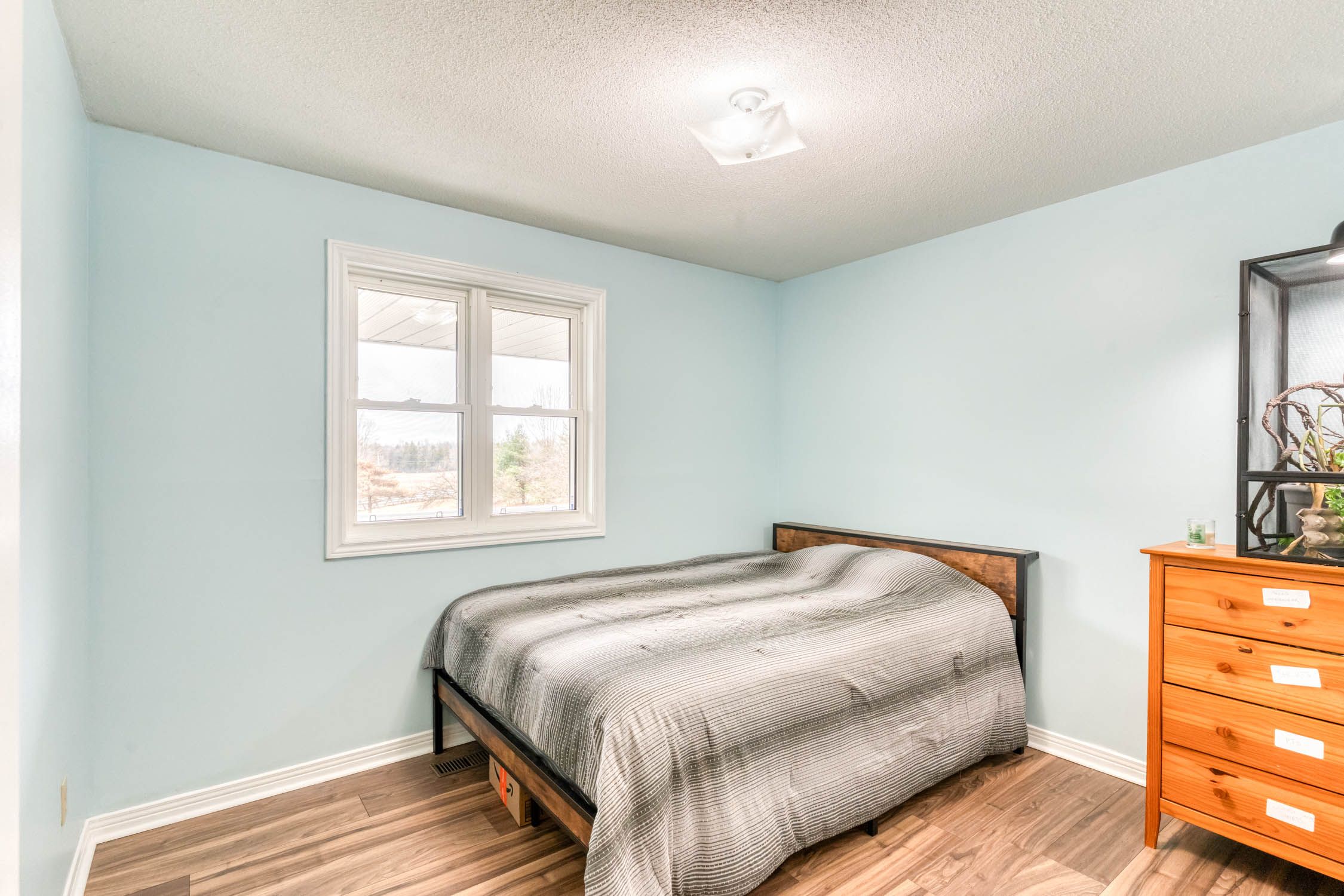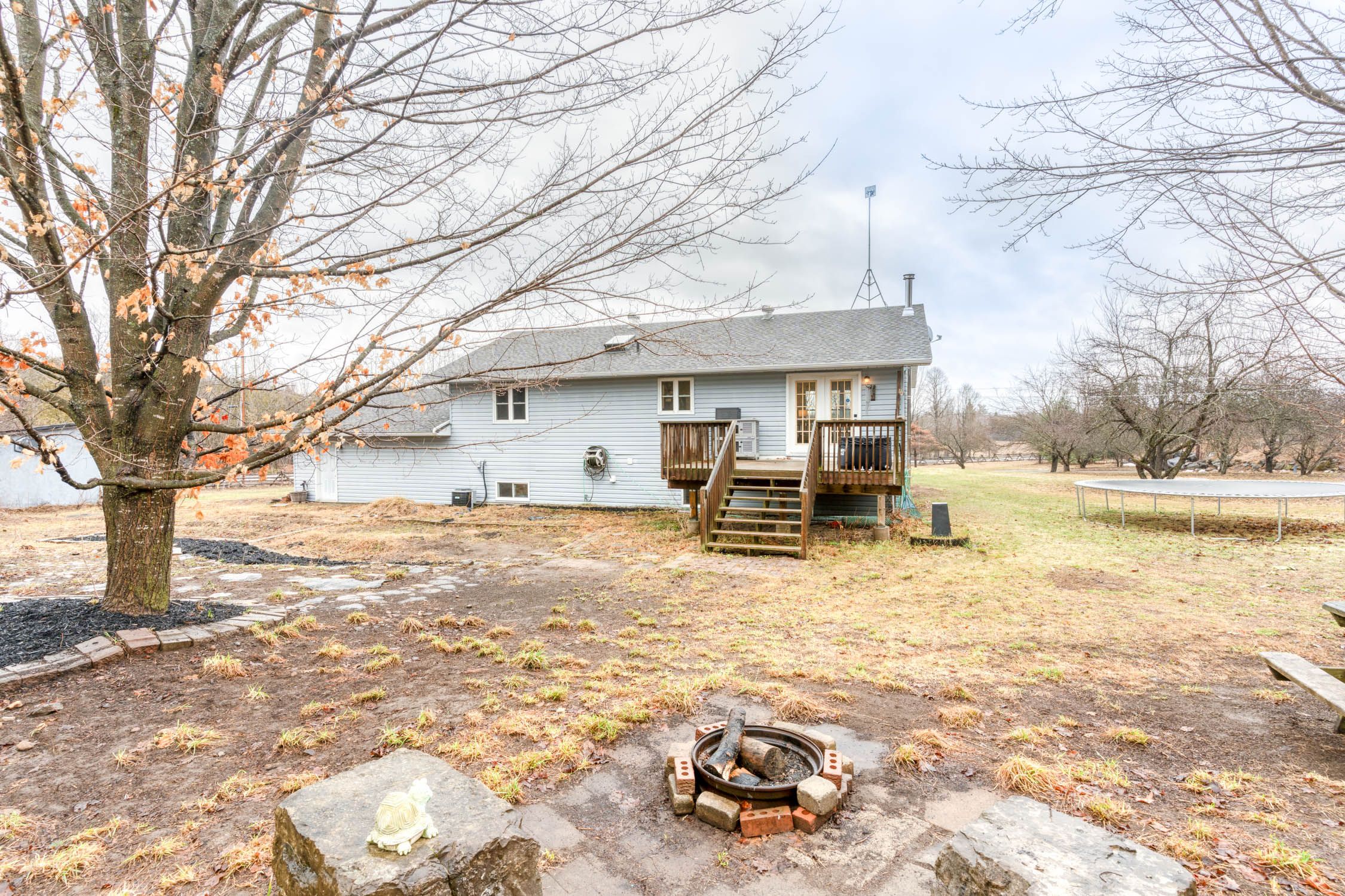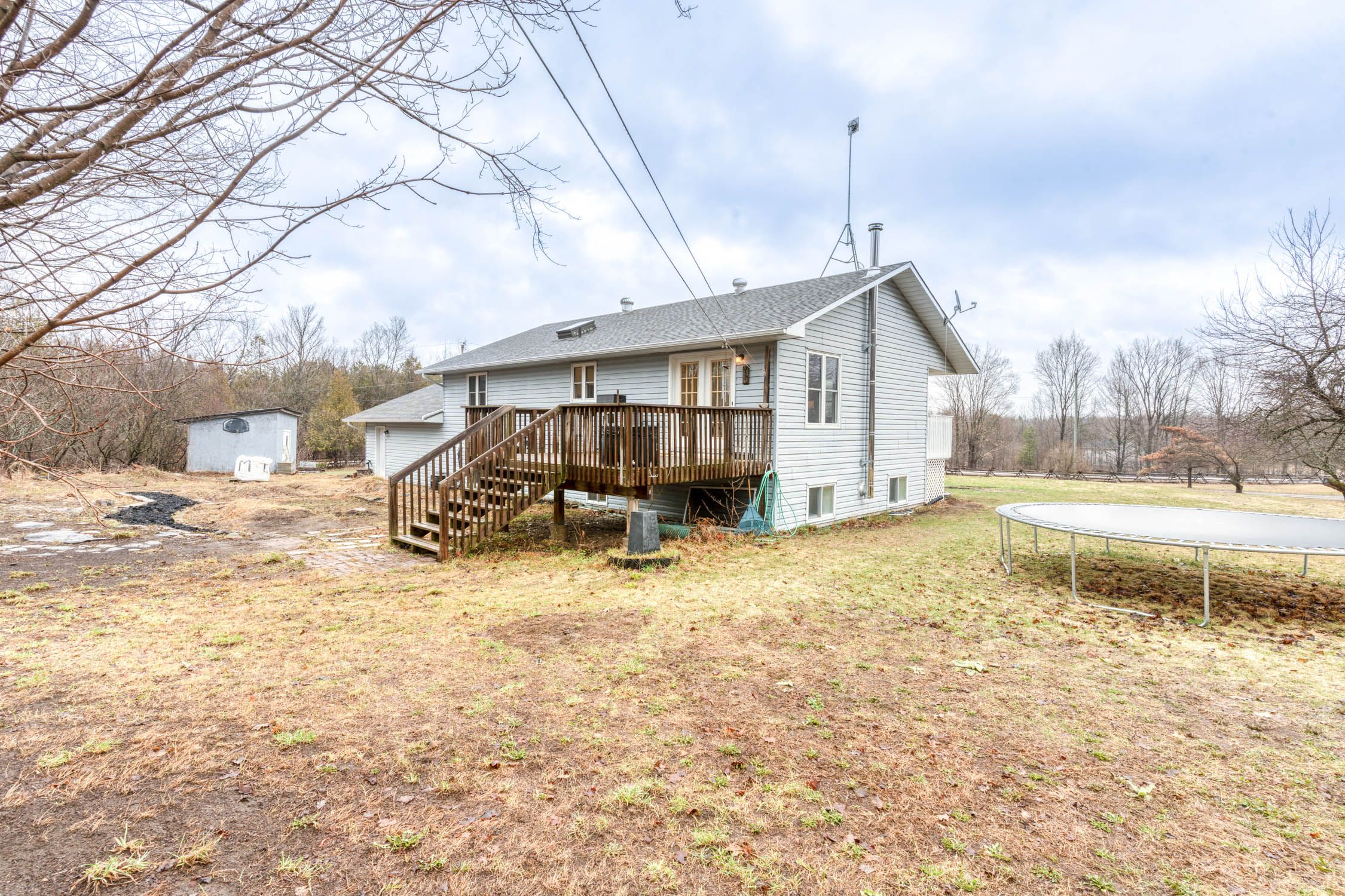 Room for the whole family!! You are greeted by a large open porch to relax on and enjoy the peace and quiet!! Inside you will find a 3 + 1 bedroom 2 bathroom home with an open concept.. The kitchen has a generous supply of cupboards and counter space and is open to the dining room and living room. From the dining room you have terrace doors to a deck ideal for your next bbq. Three well sized bedroom complete the main level. In the lower level you have sun filled family room with a cozy wood stove for cool winter nights. The fourth bedroom is ideal for teenagers or over night guests. A handy three piece bathroom is conveniently located in the lower level. The huge laundry/utility room provides extra storage as well as inside access to the attached garage. There is also a den/office area for those that work from home. The 3. 9 acre lot offers plenty of road frontage + there are trails to explore!! The huge ridge at the back of the lot adds to the privacy. There is a massive storage building with power. This would make an excellent storage space for of all of your boats, campers, 4 wheelers++++ recent upgrades include new flooring in the living room /dining room in 2026. In 2025 new dishwasher, stove and fridge, new water pressure tank, in 2022 lower bathroom was renovated