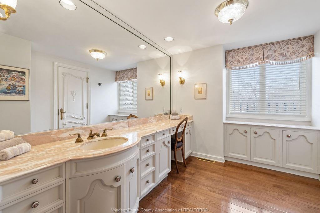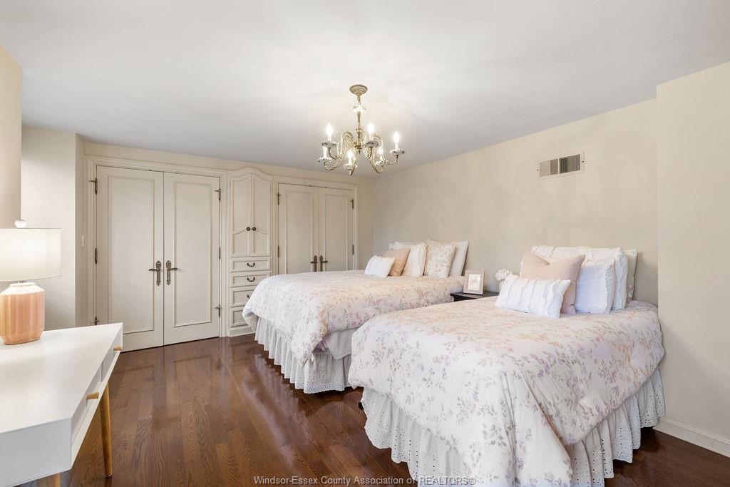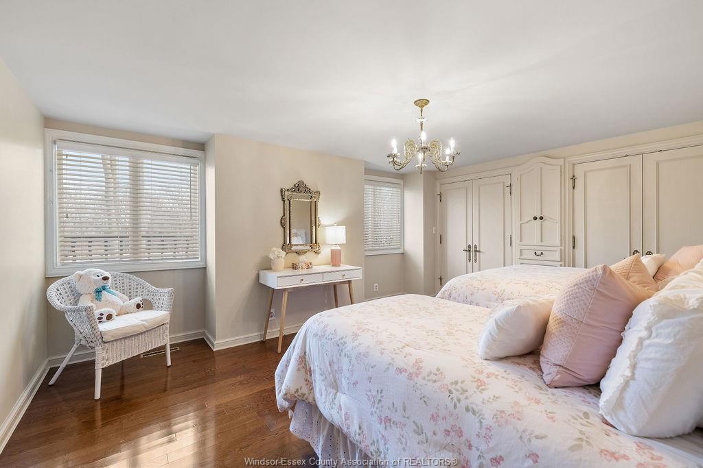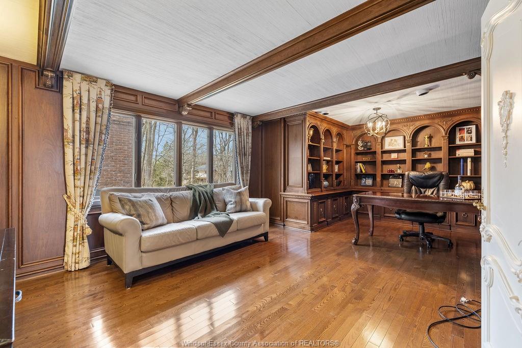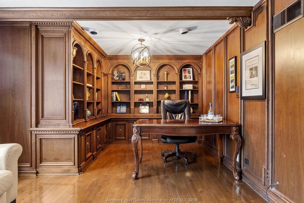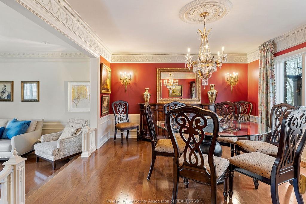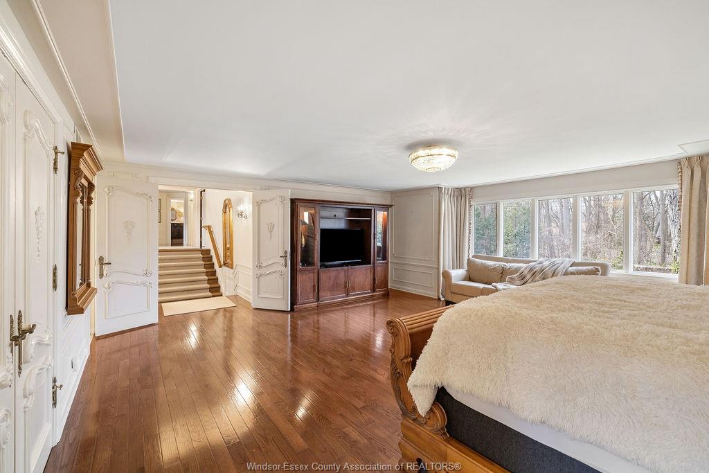 Executive estate on secluded street steps from essex golf & country club & u. S. This home features classic architecture with superb quality. Exquisite oak staircase & grand foyer welcomes you to this lavish home, every room is spacious w/numerous custom details. Sunken liv rm, formal din rm, very large open concept kitchen w/a 11ft island, separate bar area & family rm w/gas fireplace overlooking serene yard. 2nd flr provides a 800 sq ft(approx) primary suite w/walk-in clsts, ensuite w/rare marble dressing room, steps to 2 oversized bdrms or work from home in the walnut lined library/den. This private property is surrounded by 5ft brick wall & tall mature trees w/no rear neighbours & lush landscaping. Quality is evident w/all plaster construction, stacked crown mouldings, solid wood doors w/detailed carvings, rare marbles, granite/quartz; hand scraped walnut, porcelain tiles. Some updates incl: furnaces(both) '23, plumbing/electrical fixtures '23. Perfect for the most discerning buyer.