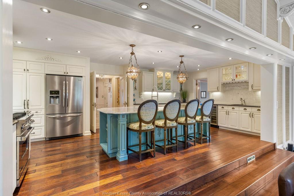 • Large open concept kitchen featuring an 11ft island and separate bar area.