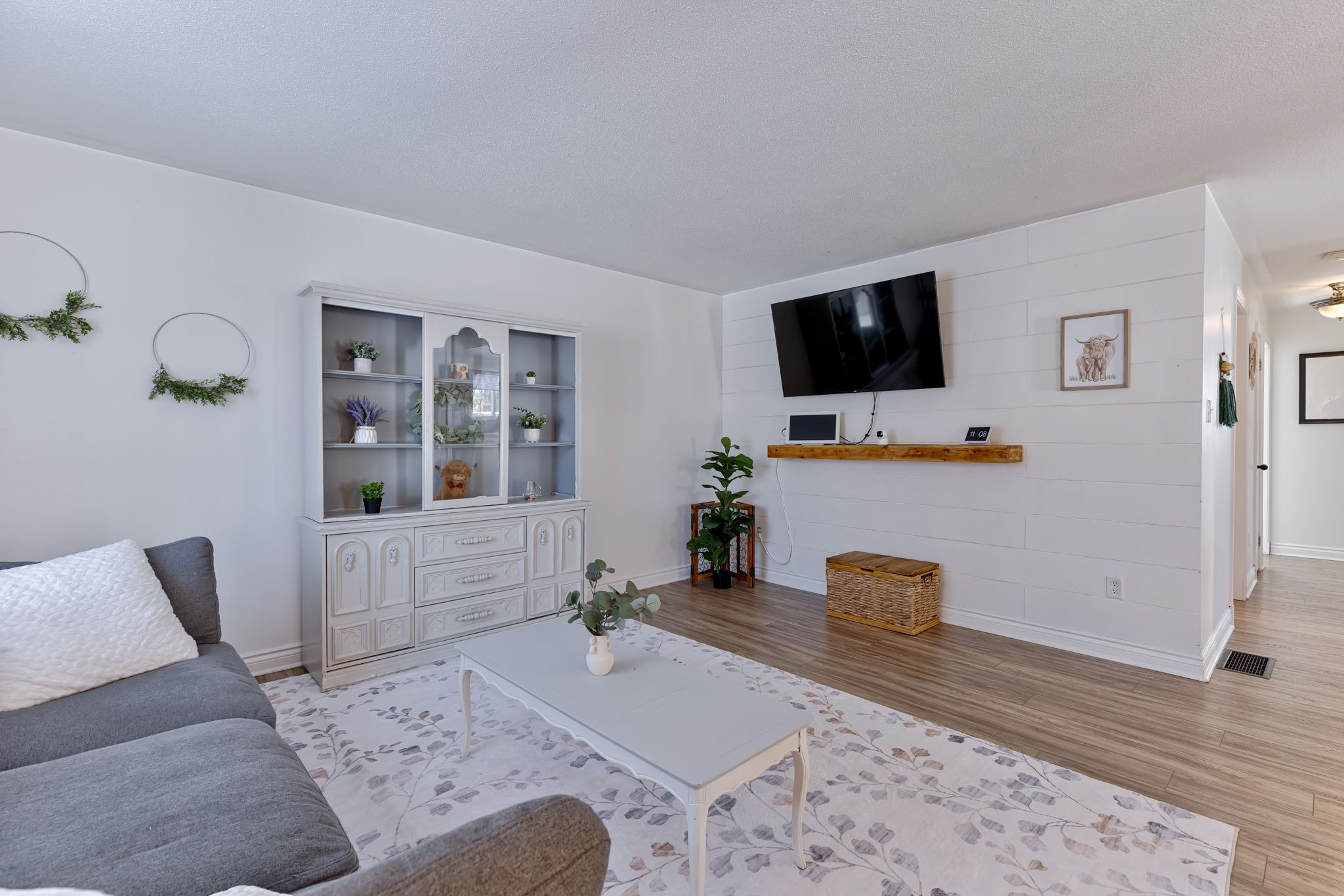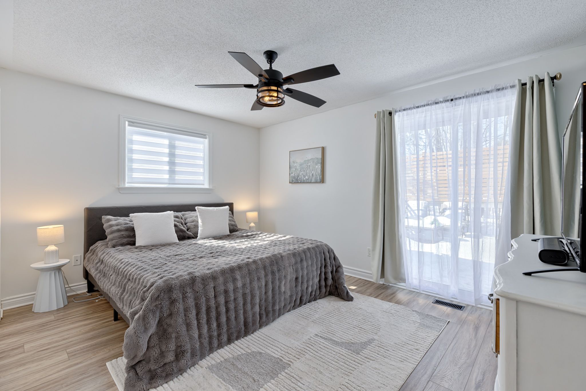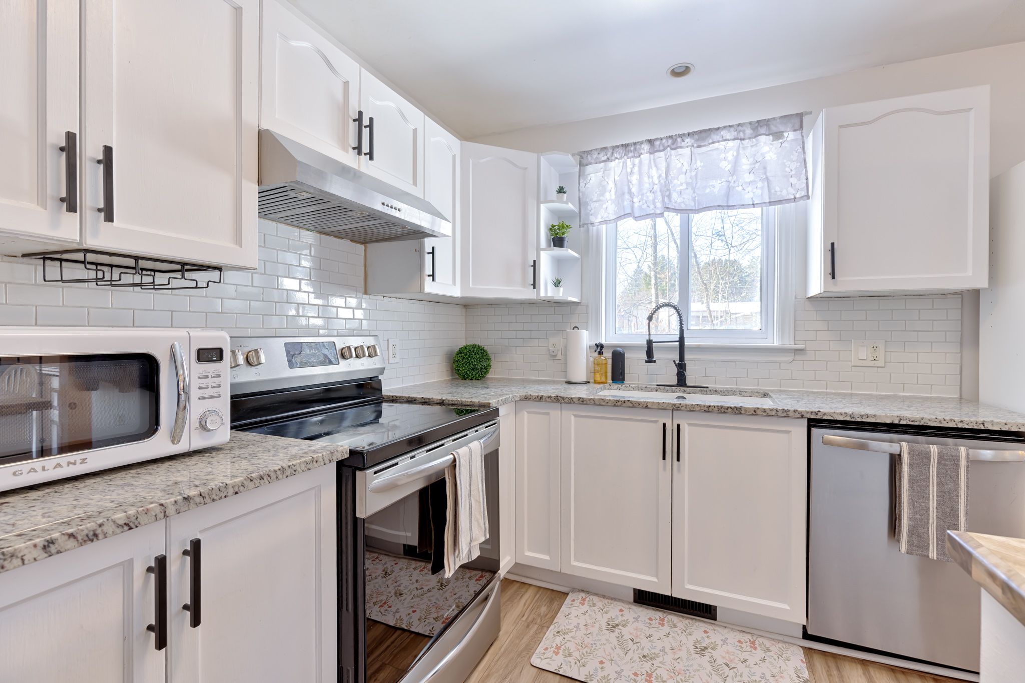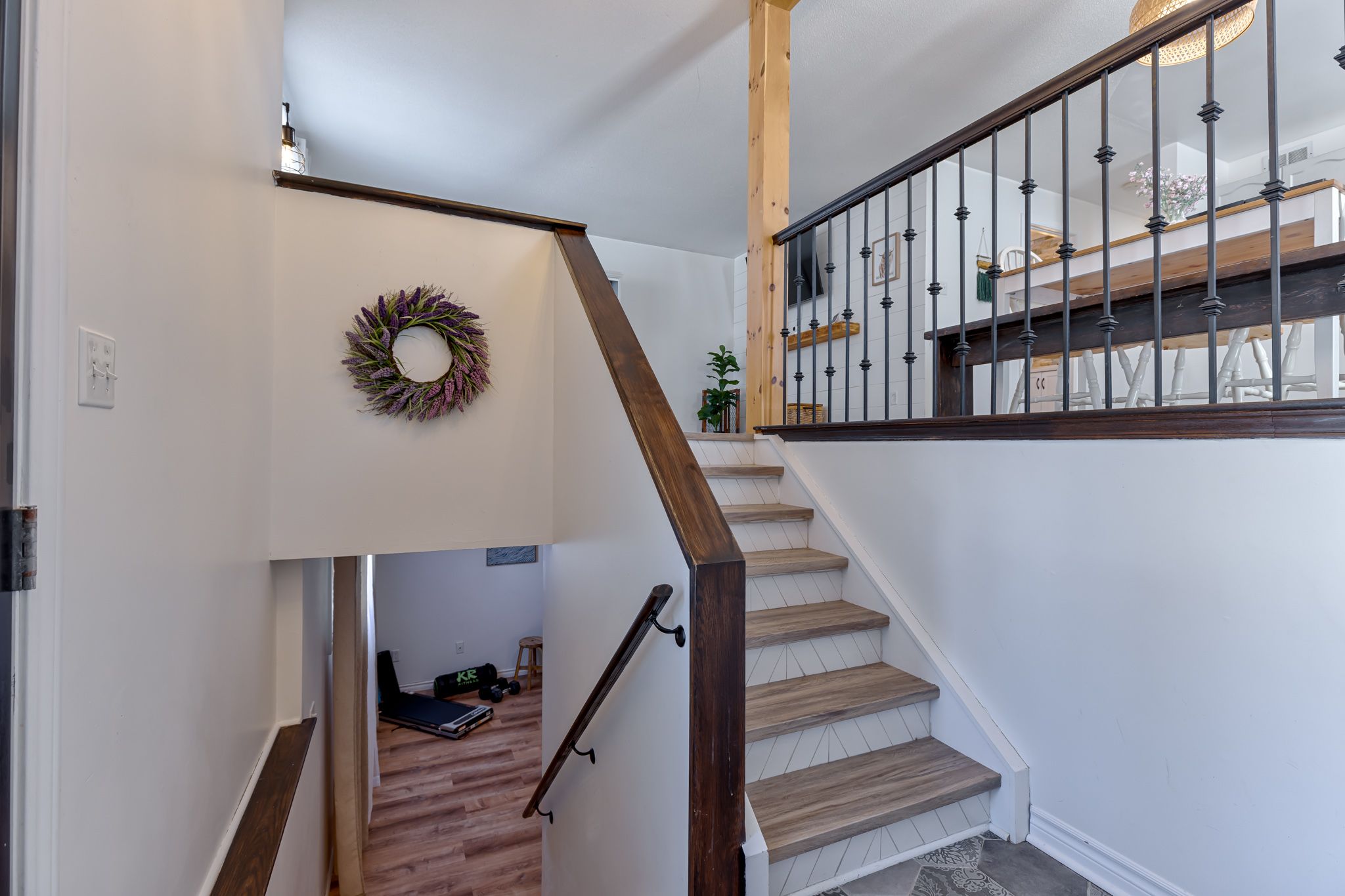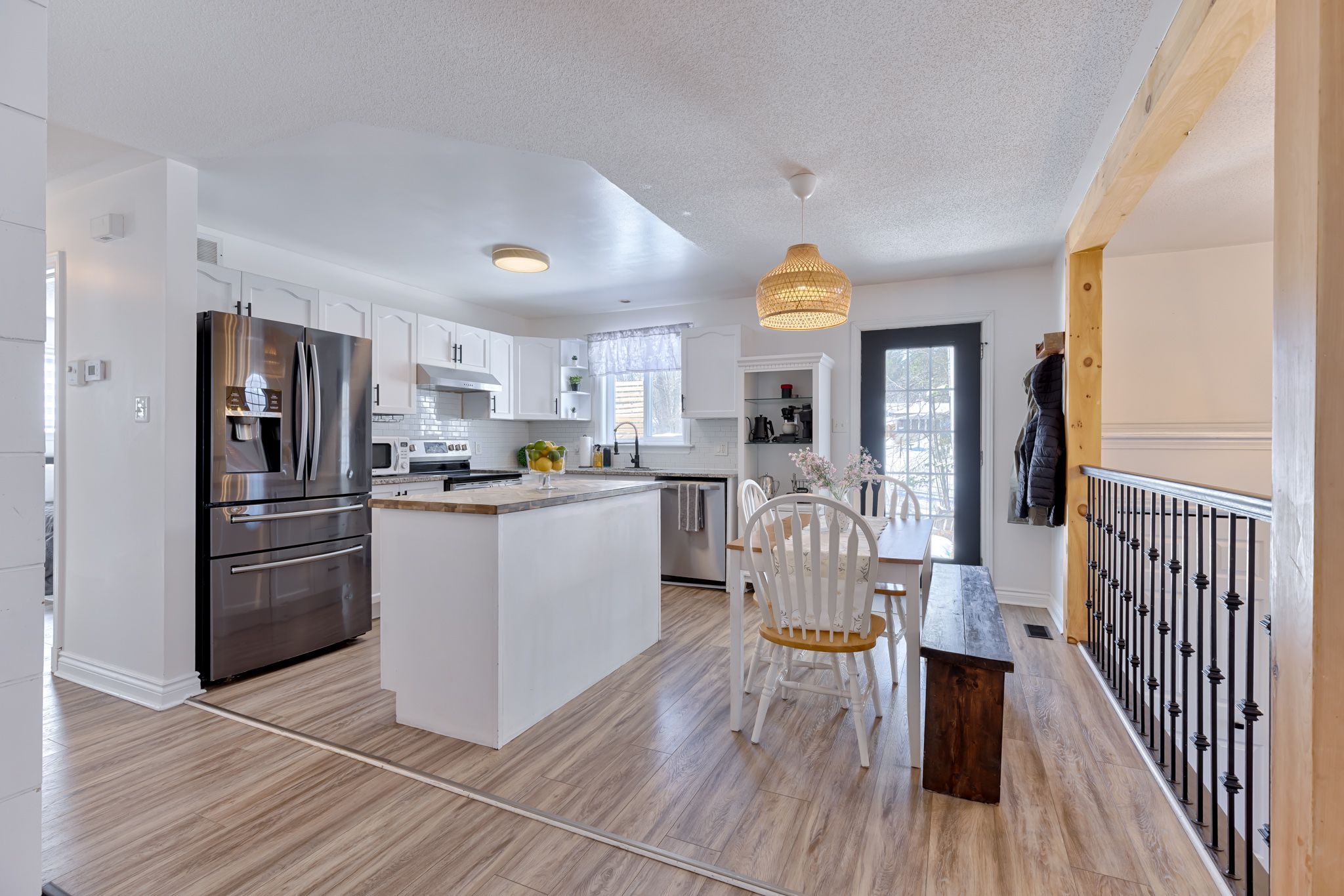 • Bright open concept layout with updated kitchen and dining area.