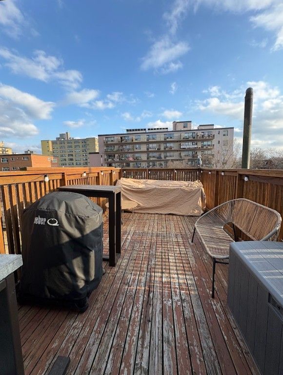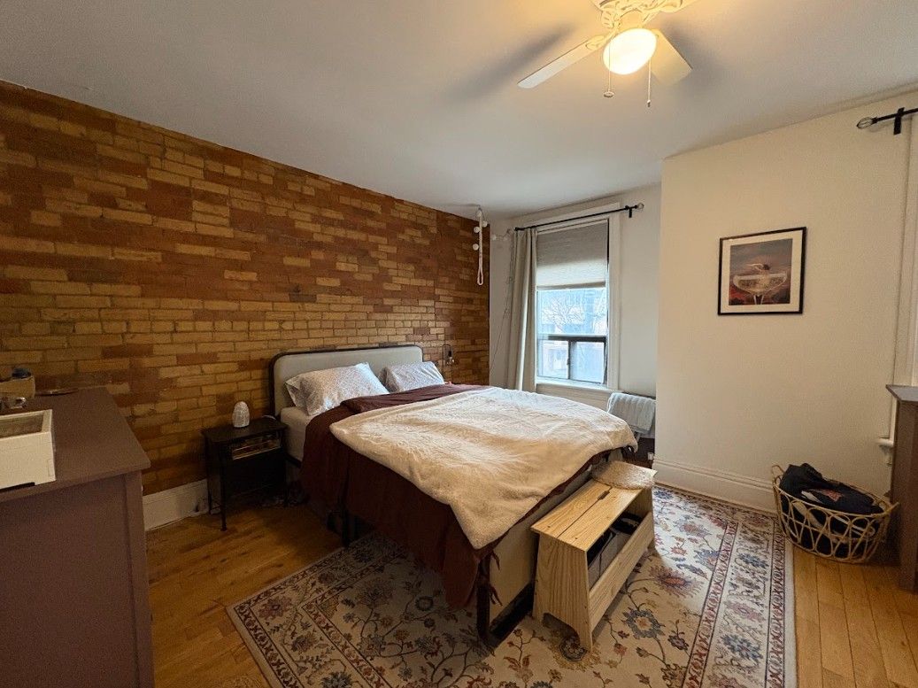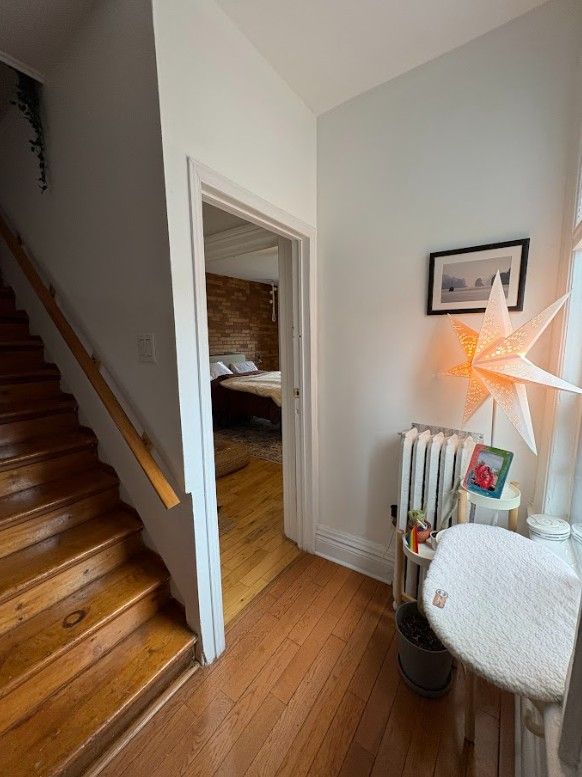Character-filled 3-bedroom, 1-bathroom unit featuring exposed brick walls, warm hardwood floors, and a spacious loft-style layout that still offers privacy where you need it. With just under 1500 square feet of generous living space, great natural light, and a flexible floor plan, this space is perfect for those who appreciate charm, space, and a home that doesn't feel cookie-cutter. Enjoy a private rooftop patio with full daytime sun exposure-perfect for relaxing or entertaining. Ideally located with streetcar access right at your doorstep, just 15 minutes to downtown and 5 minutes to liberty village. Shops, grocery stores, cafes, and restaurants are all within walking distance. Parking available upon discussion.