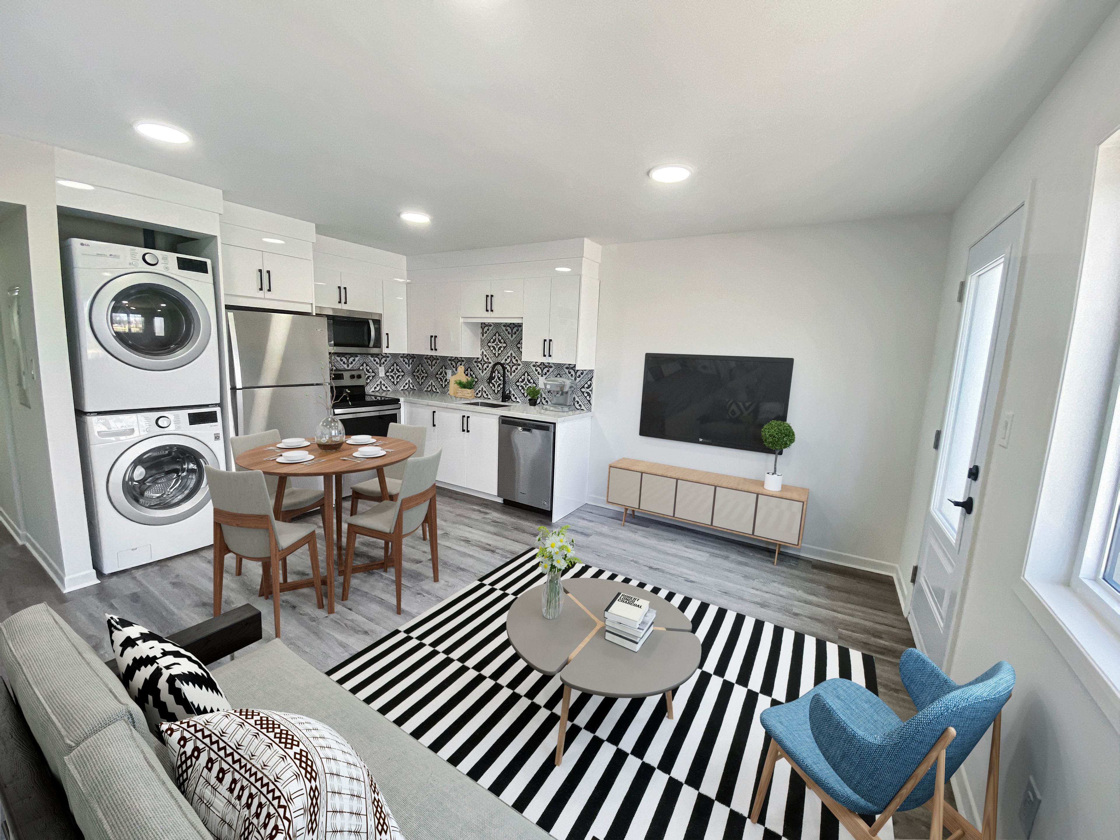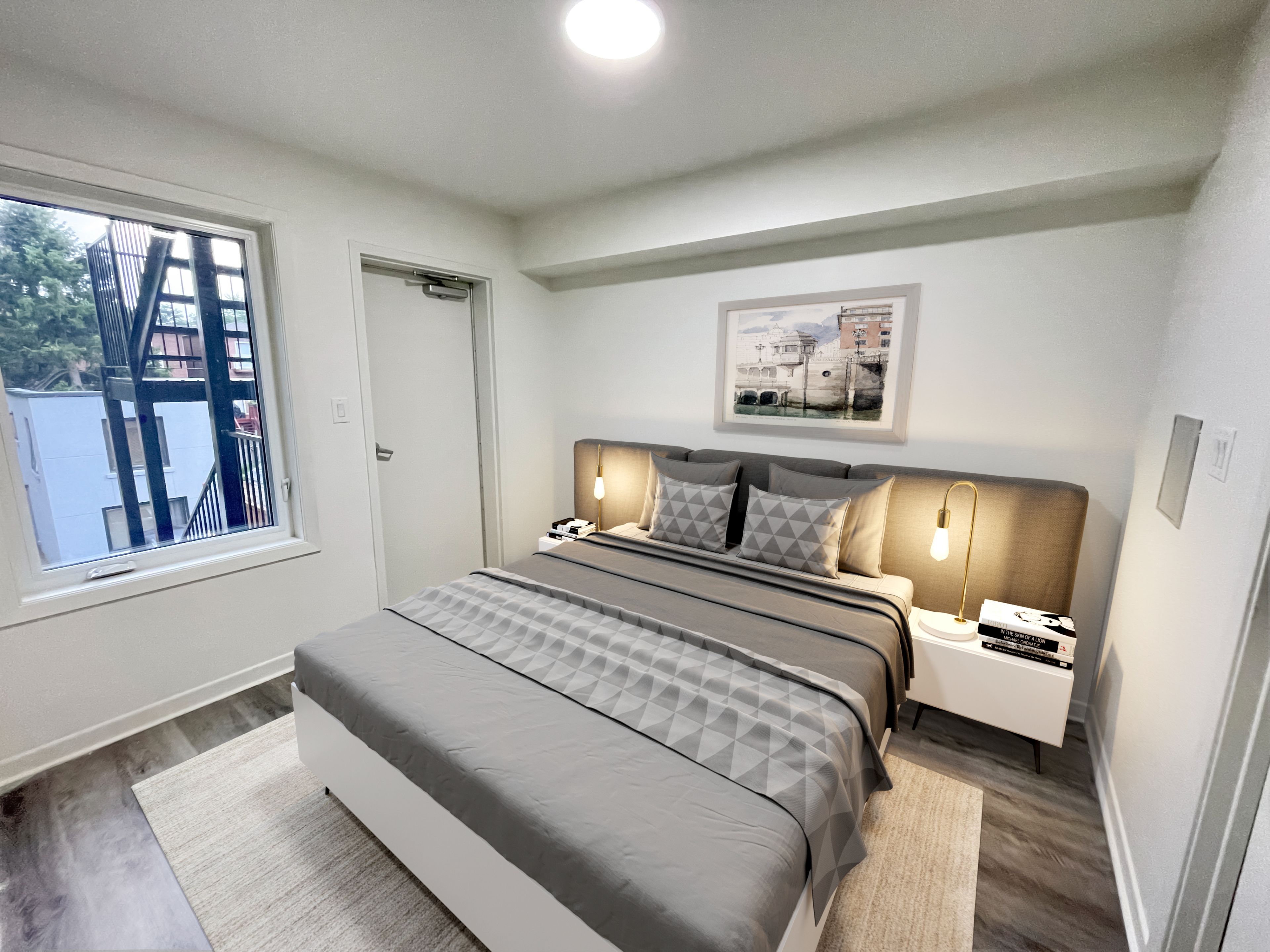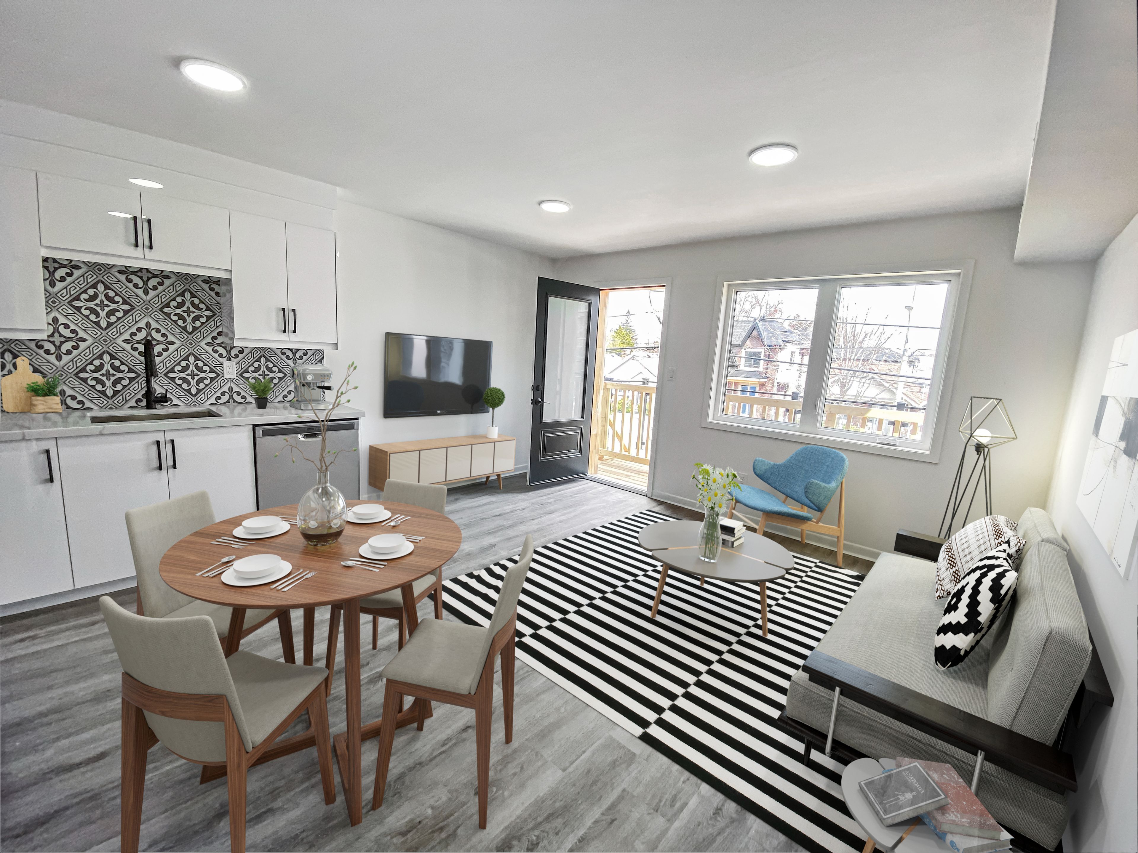 Looking for that condo alternative with high speed internet included? This ground floor level, 1000sf with 3 bdrm and 2 bathrooms. The suite was professionally designed with high end open concept kitchen/living for entertaining, quartz countertops, gorgeous bathroom & private terrace. Located in a family friendly area, steps to parks, schools, shopping, dvp, & a bus stop right outside the door! Get to broadview station in under 5 minutes. It is possible to park a car in a private parking spot right by the entrance to the unit.