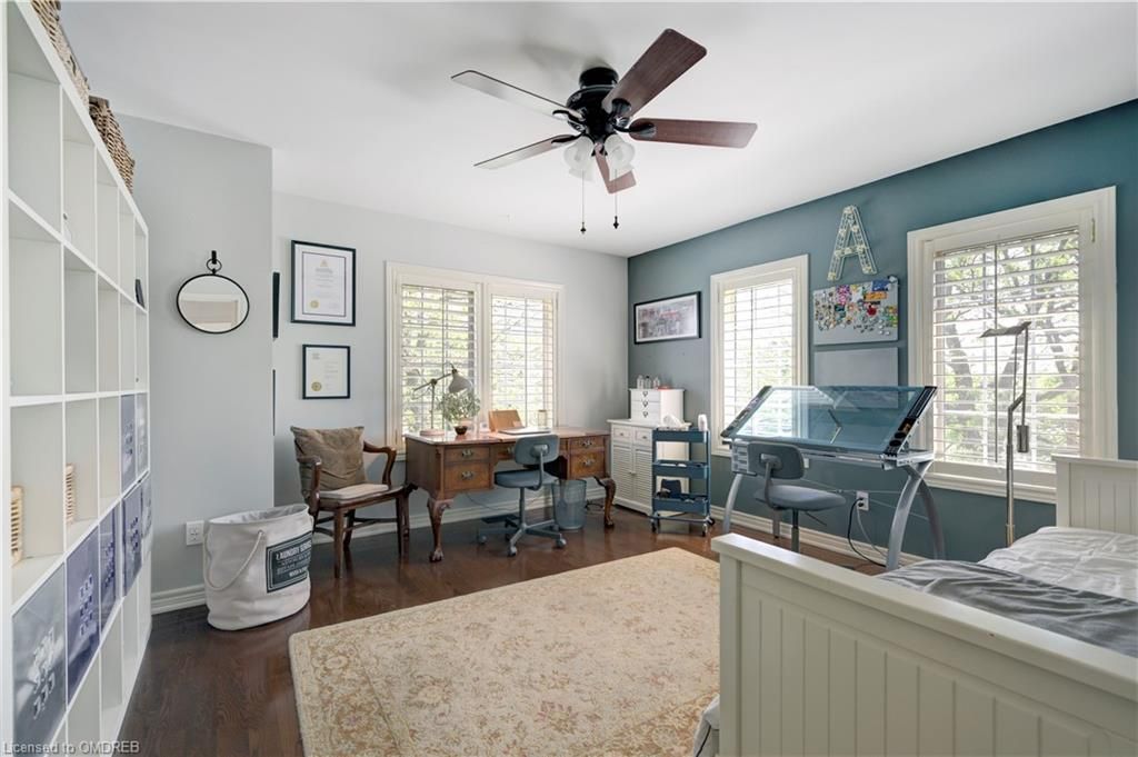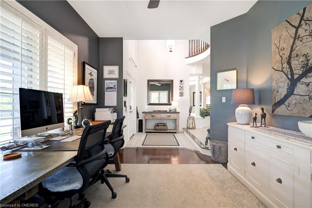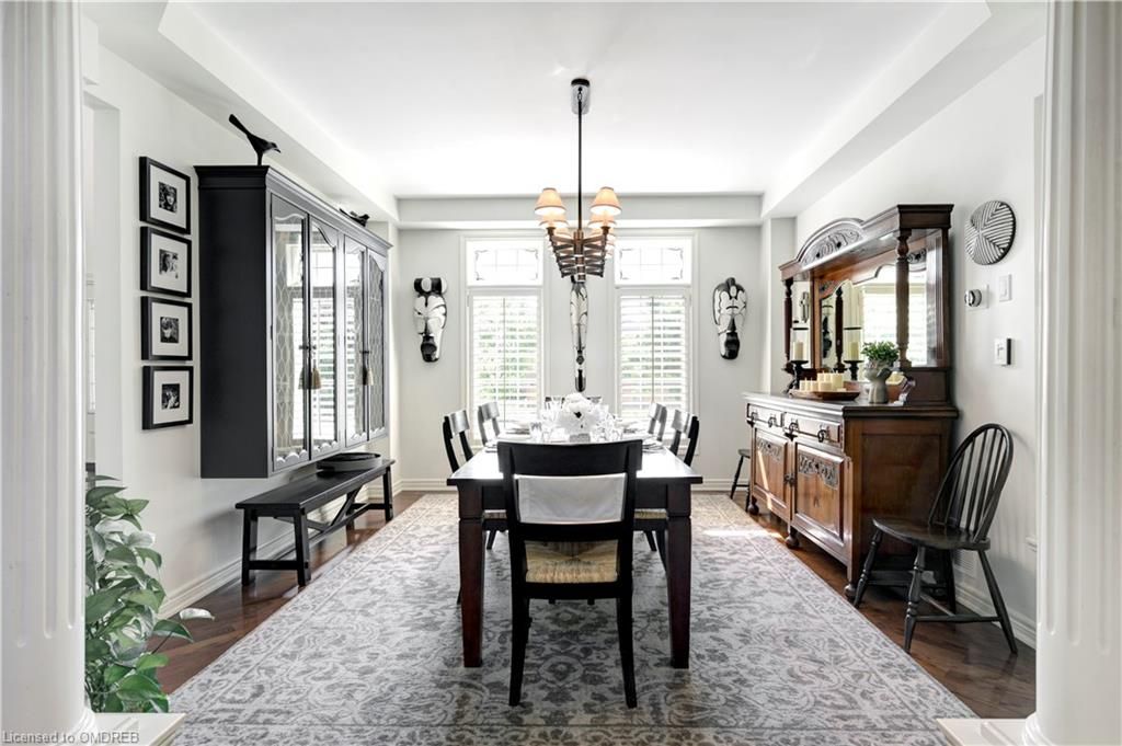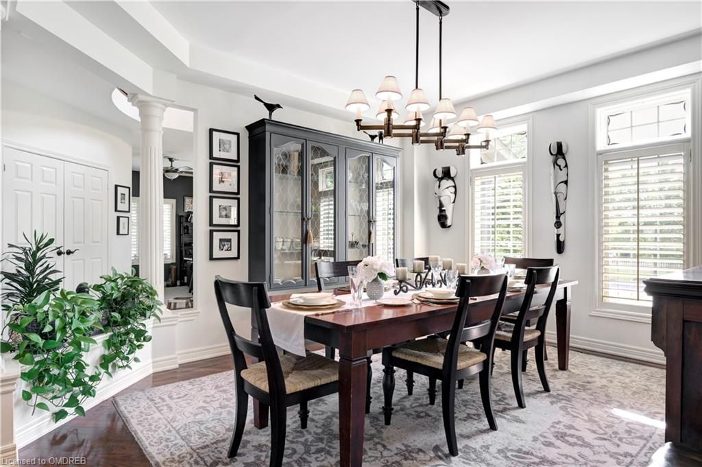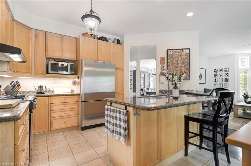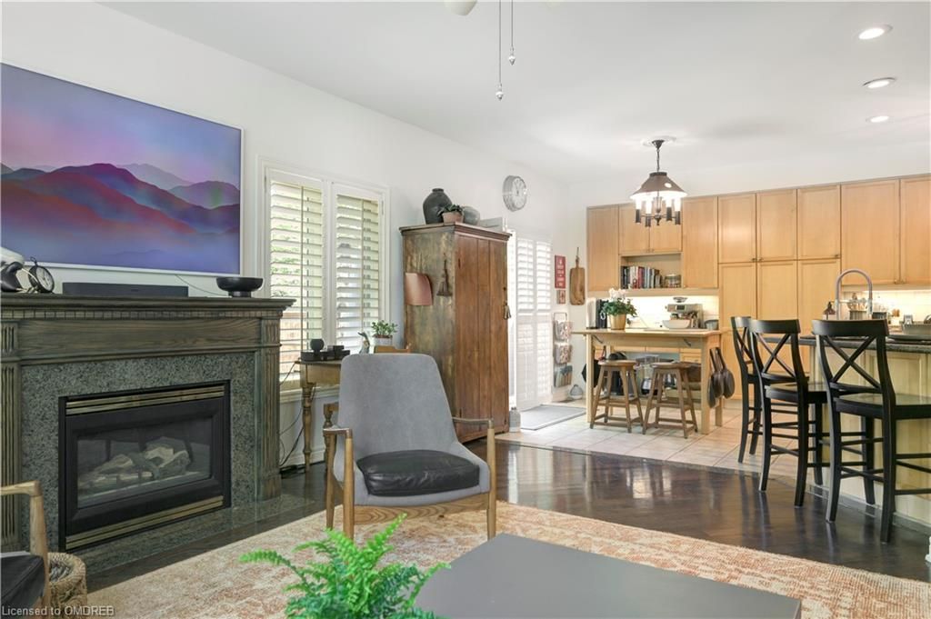 Great family home in a fantastic location! Discover this charming family home situated between two top-rated schools in joshua creek: st. Marguerite and iroquois ridge. With just a few minutes walk in either direction, convenience for families is at your doorstep. This property features a rare wrap-around front porch, complemented by a beautiful stone garden. The front-facing room is perfect for a home office or a quiet retreat. The inviting open kitchen and family room boast a cozy gas fireplace and provide easy access to the backyard, making it an ideal space for entertaining. Highlights include: 9 ft ceilings and durable hardwood and tile flooring throughout for easy maintenance. A spacious basement equipped with a second gas fireplace, an extra bedroom, a full bathroom, and a newer laundry suite plus tons of storage space. A 2-car garage with inside entry, along with a side entrance from the mudroom. This home blends comfort, convenience, and style. Enjoy nearby parks, recreational centers, dining, shopping, and easy access to the highway. Don't miss your chance to make this beautiful house your new home!