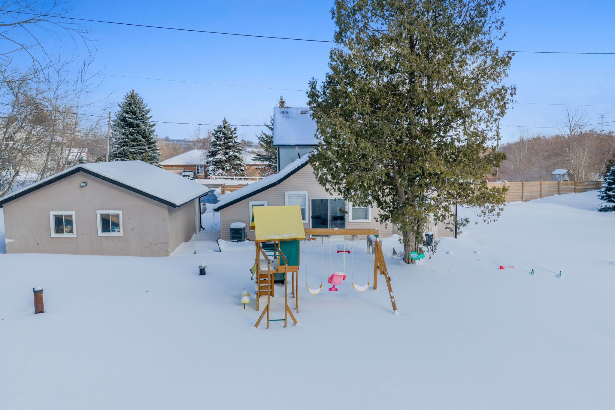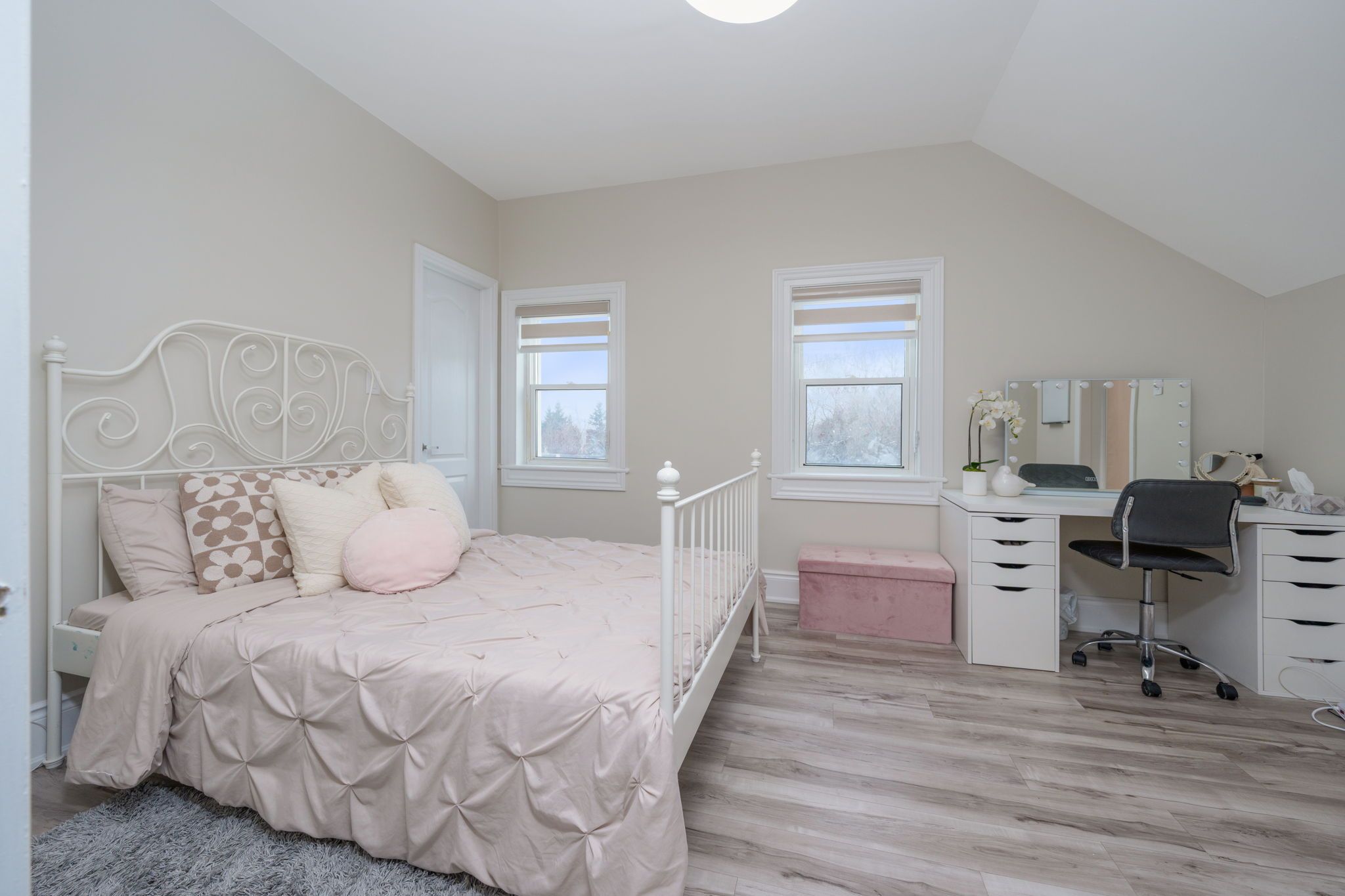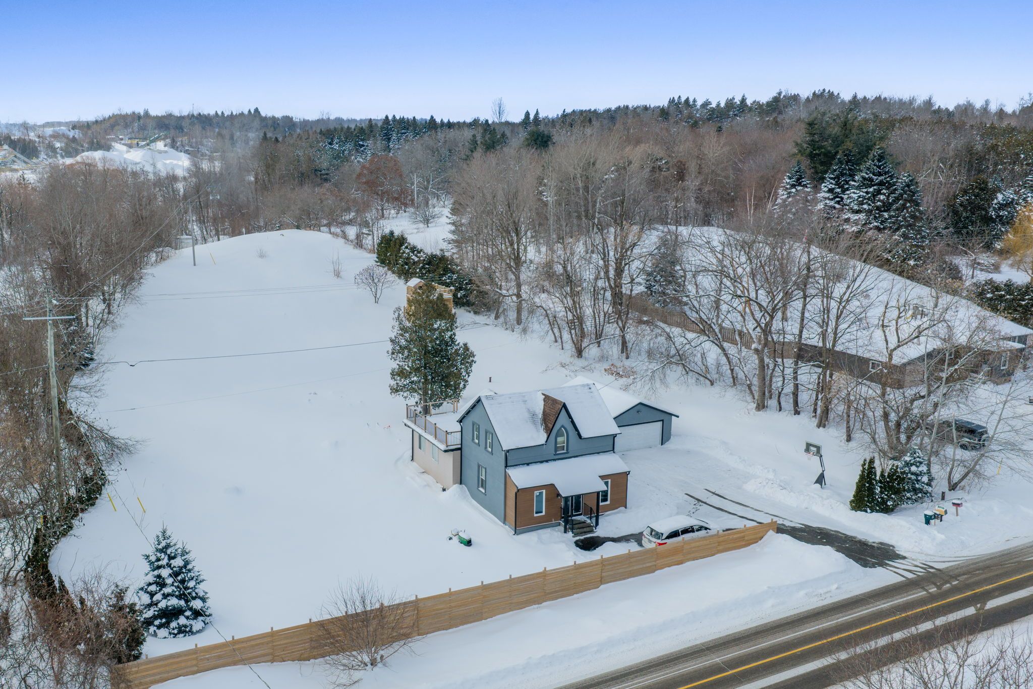 Charming century home showcasing classic gothic revival architecture, complete with eye-catching lancet window. A convenient family friendly enclosed porch/mudroom welcomes you into this beautifully updated heritage residence where an open-concept living and dining area features stylish vinyl plank flooring, an electric fireplace set against a striking wood feature wall and a complementary wood-accented ceiling. Pot lights throughout create a bright, inviting ambiance. The chef-inspired kitchen is truly the heart of the home, offering a massive island with seating for five, quartz counters and backsplash, stainless steel appliances, double farmhouse sink, convenient pot filler above gas stovetop, generous pantry and a dedicated coffee centre. Step through the sliding door walkout to a large patio overlooking mature, private grounds, small koi pond and a family-friendly retreat with a play structure and a charming gazebo/playhouse - ideal for outdoor fun and relaxation. The main level features a serene primary suite with an elegant 3-piece ensuite and walk-in closet, a second bedroom/office, a beautifully updated 3-piece main bath and a convenient laundry room with access to the driveway. Upstairs, two charming character bedrooms (one with walkout to a large balcony) and a sleek 3-piece bathroom provide comfortable space for family. The property also includes a huge driveway (parking for 12 cars) plus a separate detached double garage, offering terrific storage, hobby, or workshop space. Ideally located close to limehouse caves and trails, and just minutes to acton, georgetown, and milton for everyday amenities. Commuters will appreciate easy access to major routes.