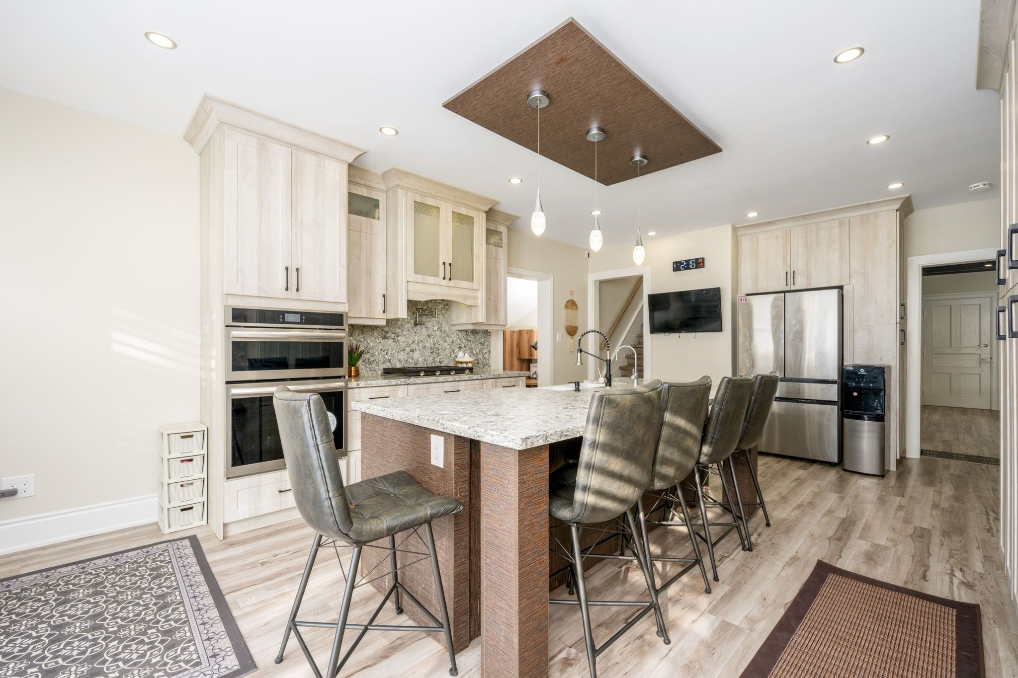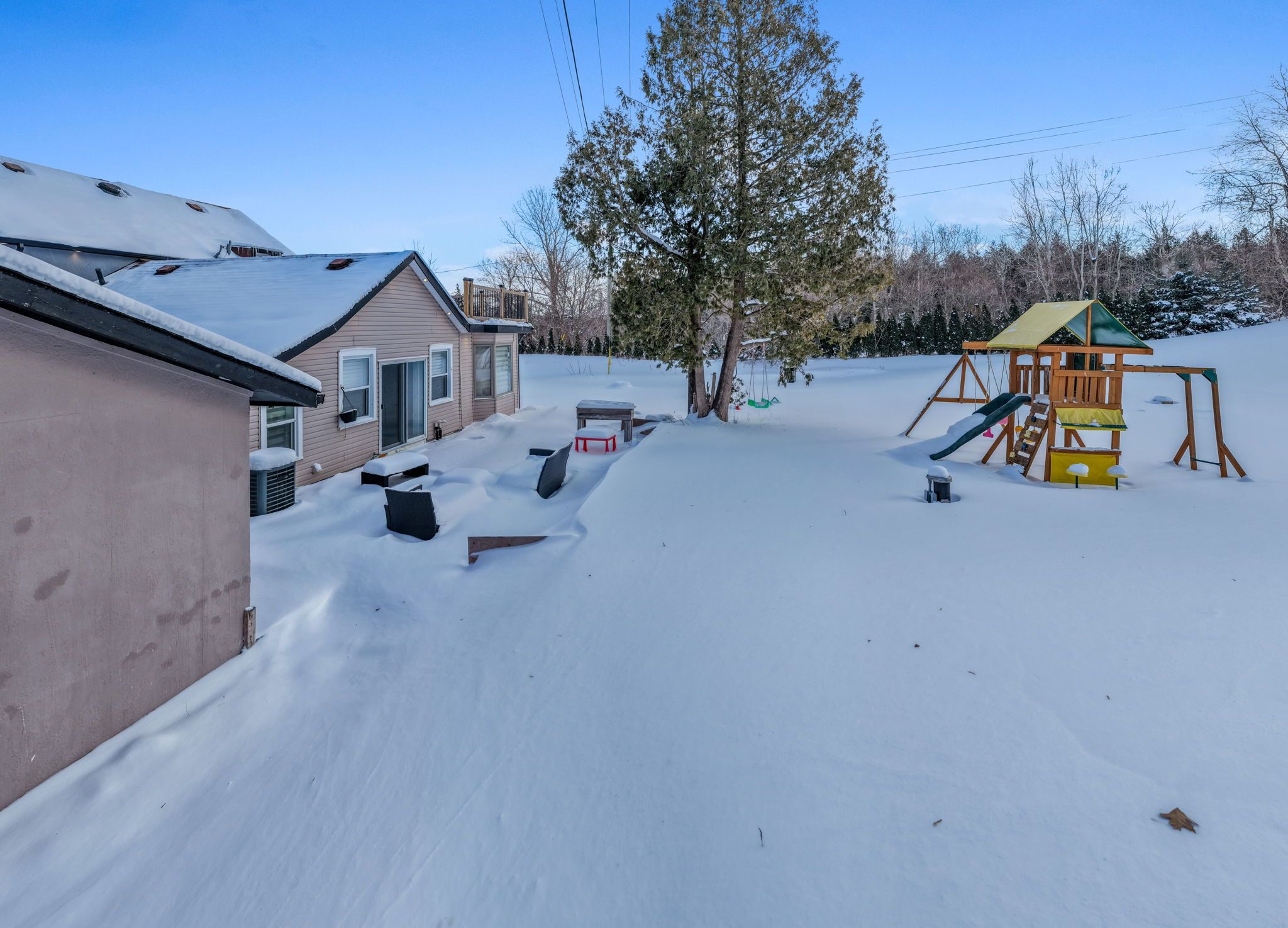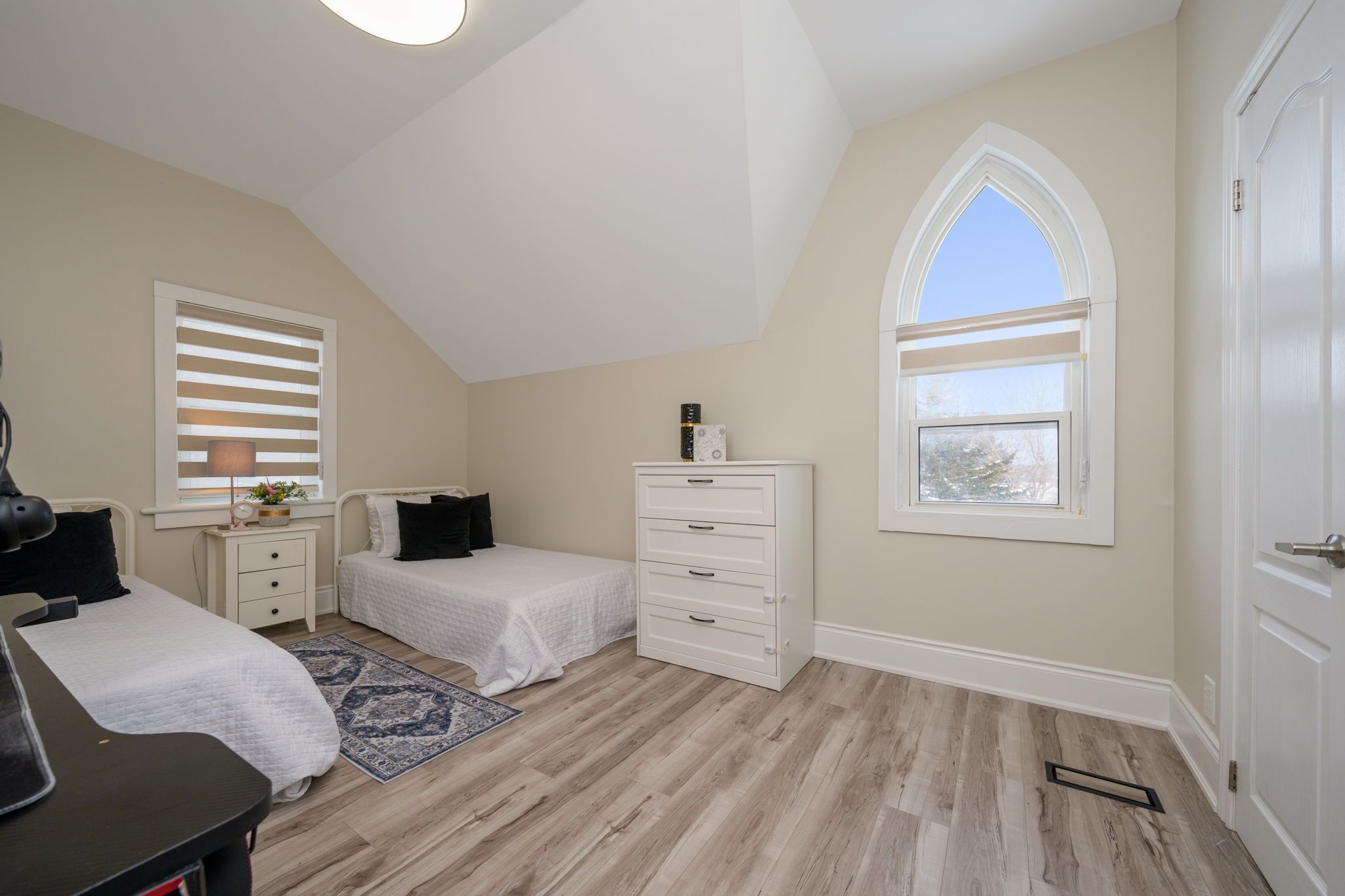 Charming century home showcasing classic gothic revival architecture, complete with eye-catching lancet window. A convenient family friendly enclosed porch/mudroom welcomes you into this beautifully updated heritage residence where an open-concept living and dining area features stylish vinyl plank flooring, an electric fireplace set against a striking wood feature wall and a complementary wood-accented ceiling. Pot lights throughout create a bright, inviting ambiance. The chef-inspired kitchen is truly the heart of the home, offering a massive island with seating for five, quartz counters and backsplash, stainless steel appliances, double farmhouse sink, convenient pot filler above gas stovetop, generous pantry and a dedicated coffee centre. Step through the sliding door walkout to a large patio overlooking mature, private grounds, small koi pond and a family-friendly retreat with a play structure and a charming gazebo/playhouse - ideal for outdoor fun and relaxation. The main level features a serene primary suite with an elegant 3-piece ensuite and walk-in closet, a second bedroom/office, a beautifully updated 3-piece main bath and a convenient laundry room with access to the driveway. Upstairs, two charming character bedrooms (one with walkout to a large balcony) and a sleek 3-piece bathroom provide comfortable space for family. The property also includes a huge driveway (parking for 12 cars) plus a separate detached double garage, offering terrific storage, hobby, or workshop space. Ideally located close to limehouse caves and trails, and just minutes to acton, georgetown, and milton for everyday amenities. Commuters will appreciate easy access to major routes.