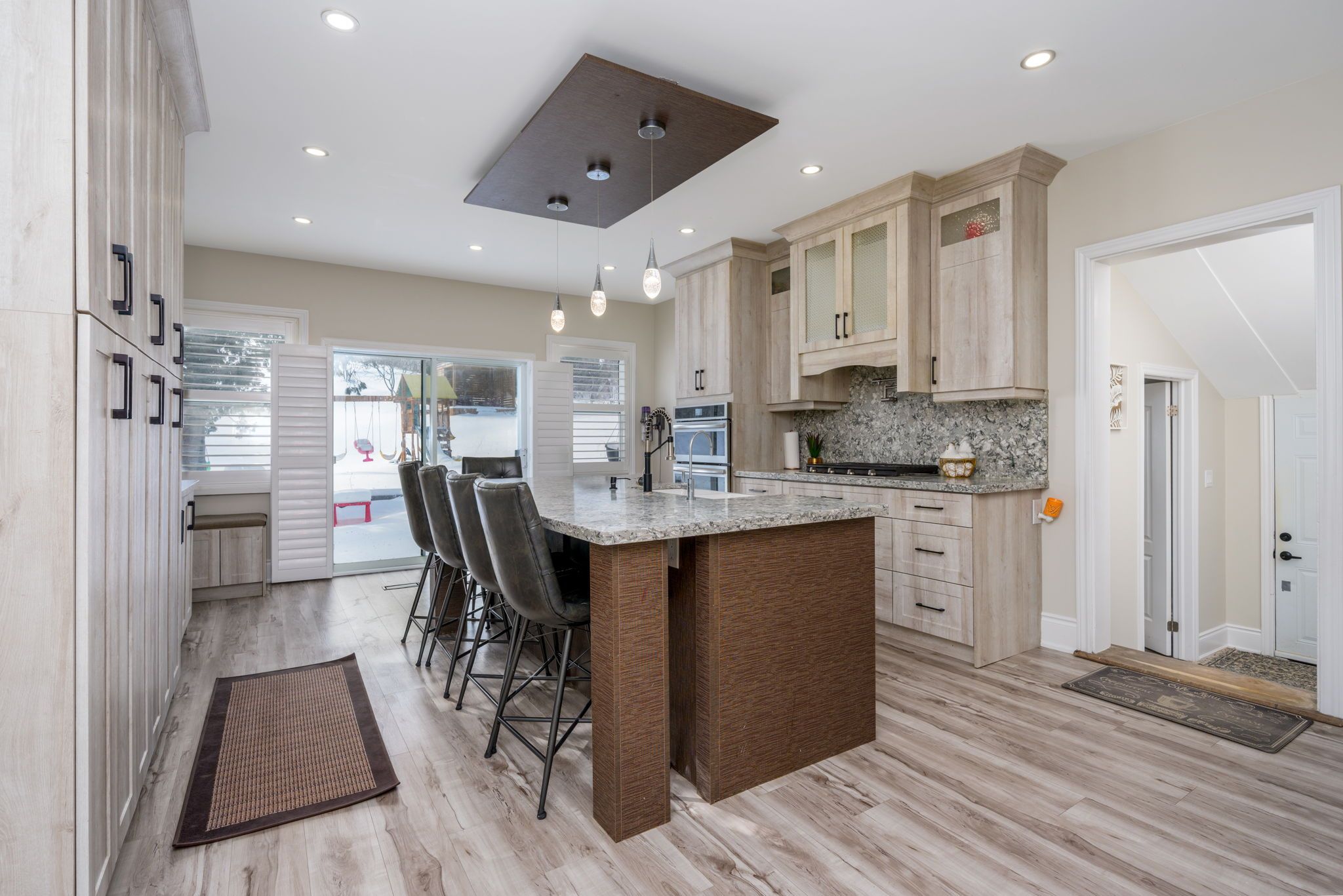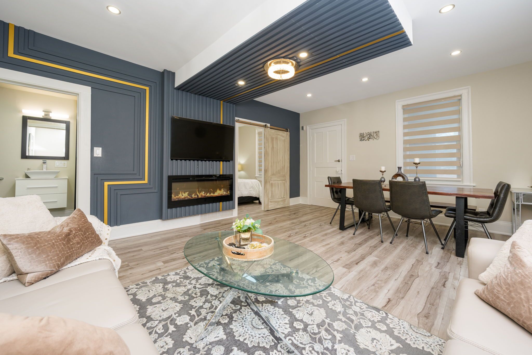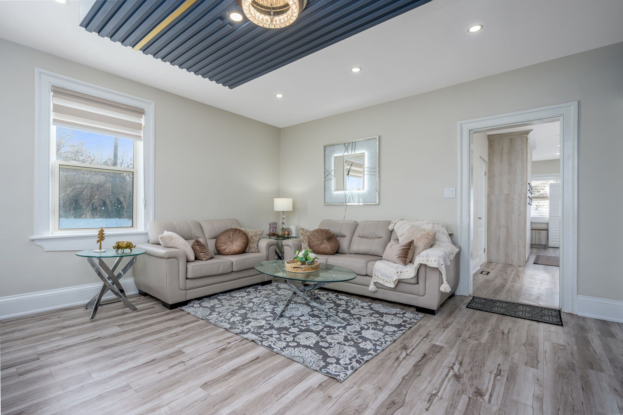 • Updated open-concept living and dining area with stylish vinyl plank flooring.