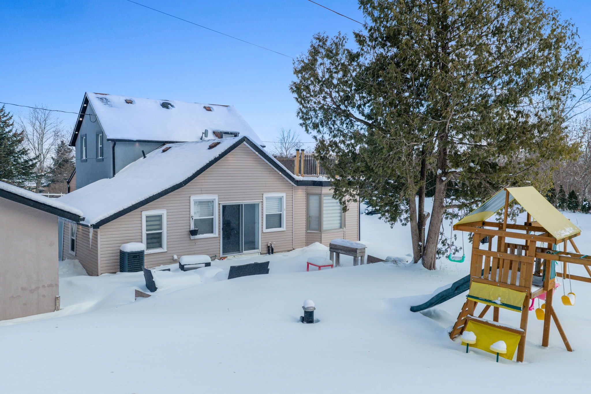 • Expansive outdoor patio overlooking private grounds and play areas.