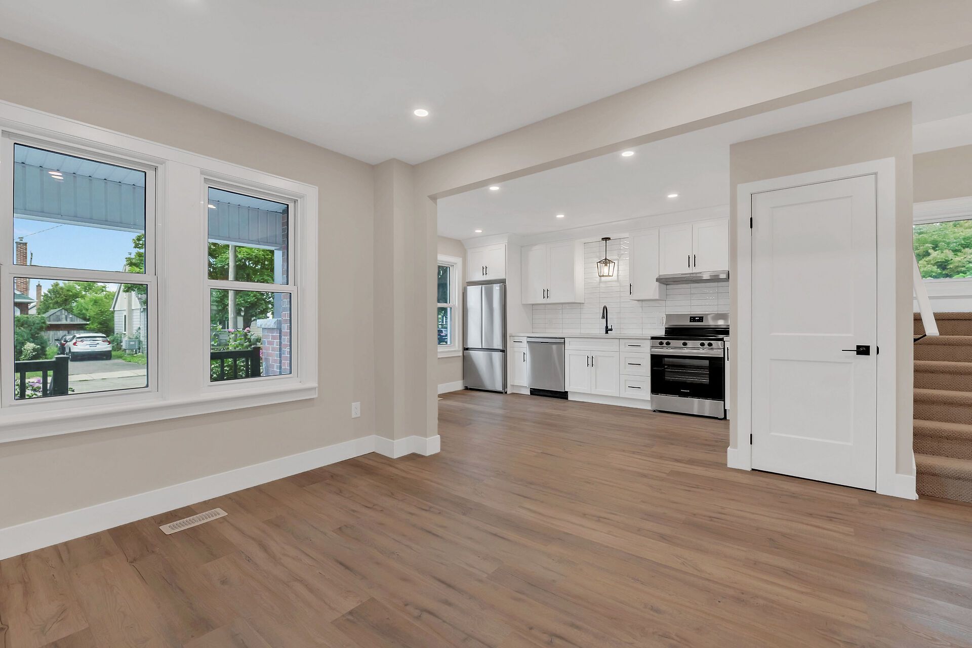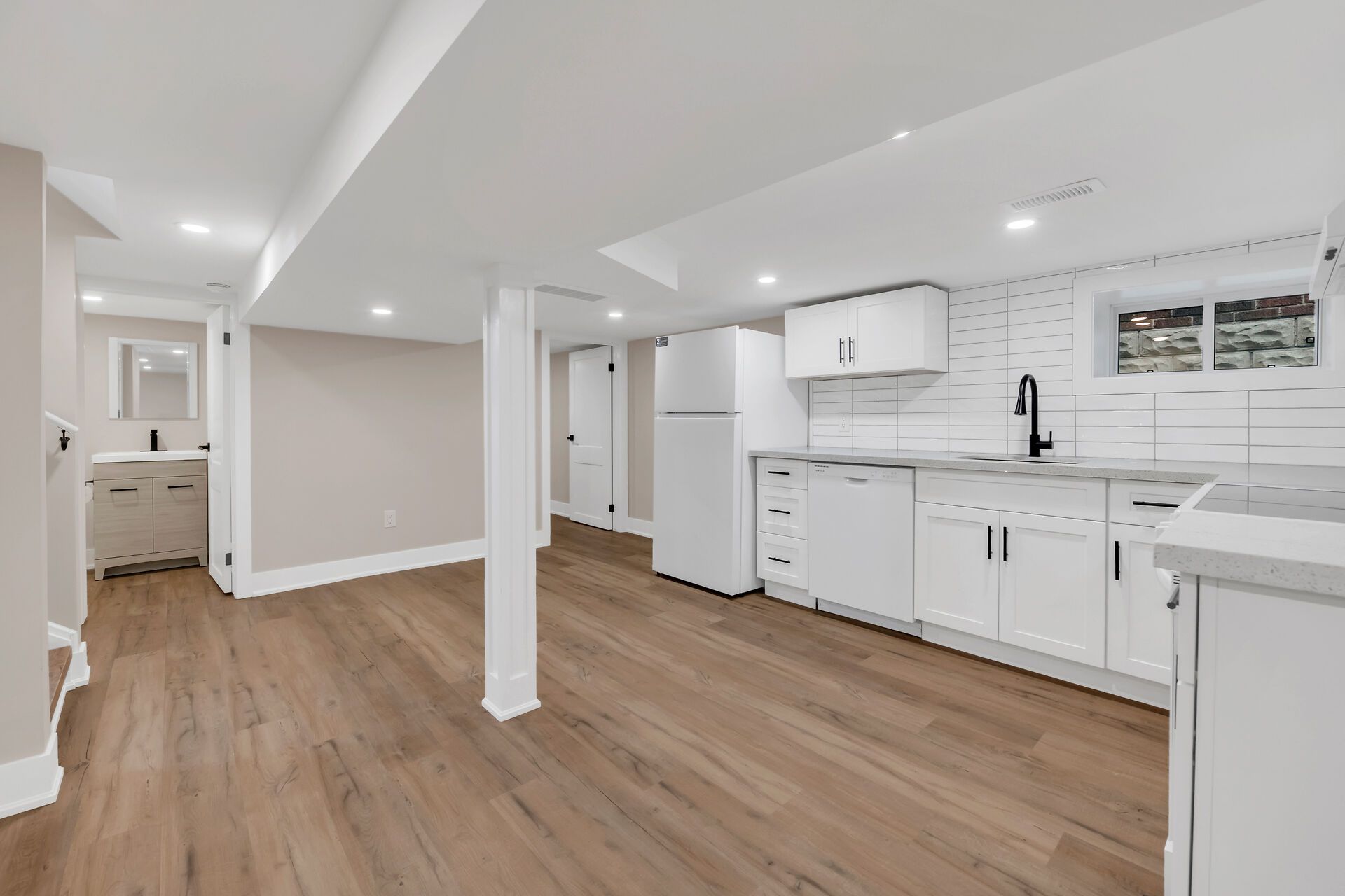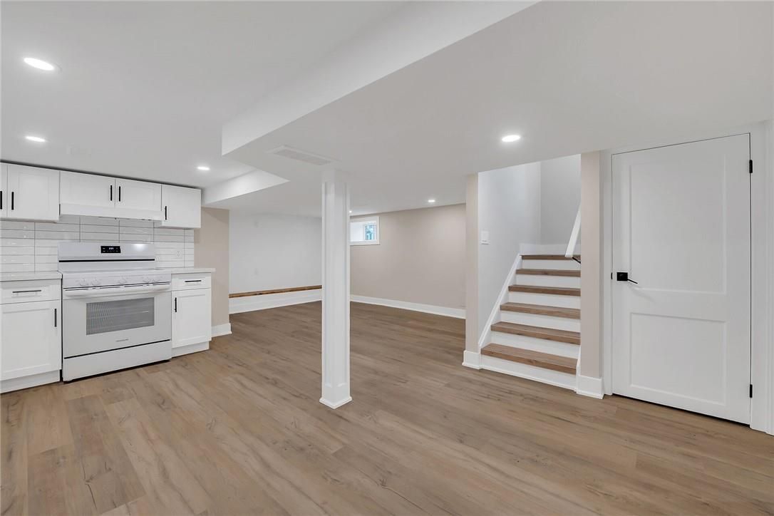 The home you've been waiting for--featuring a full in-law suite with private side-door entry! Offering 4 total bedrooms plus a den, 2. 5 brand-new bathrooms, 2 new kitchens, 2 laundry rooms, and parking for 4 cars, this property checks every box. Step into the main floor and you'll find a custom kitchen with quartz countertops, undermount sink, backsplash, crown molding, pot lights, and a bright, open layout that flows into your living room, flooded with natural light. The main floor also includes 2 bedrooms, a 4-piece bathroom, laundry, and walkout access to your fully fenced, private backyard. Providing all you need on one floor of living space!!! Upstairs offers a large bedroom, convenient 2 pc bath, and a bonus den ideal for a child's play area or home office setup!! The fully finished basement is in-law suite ready, complete with its own private side entrance, full custom kitchen with again quartz countertops, backsplash and pot lights open concept to your spacious living room. With a bedroom, 3-piece bath, and laundry this space is perfect for an extended family, a teenager who needs their own space or added income. Updates include all-new flooring, 2. 5 new bathrooms, new lighting, doors, trim, new driveway, and much more. Located in a highly desirable neighborhood, within walking distance to parks, schools, trails, and all amenities. Just minutes to downtown, qew, 403, red hill, and the linc-this home truly has it all.