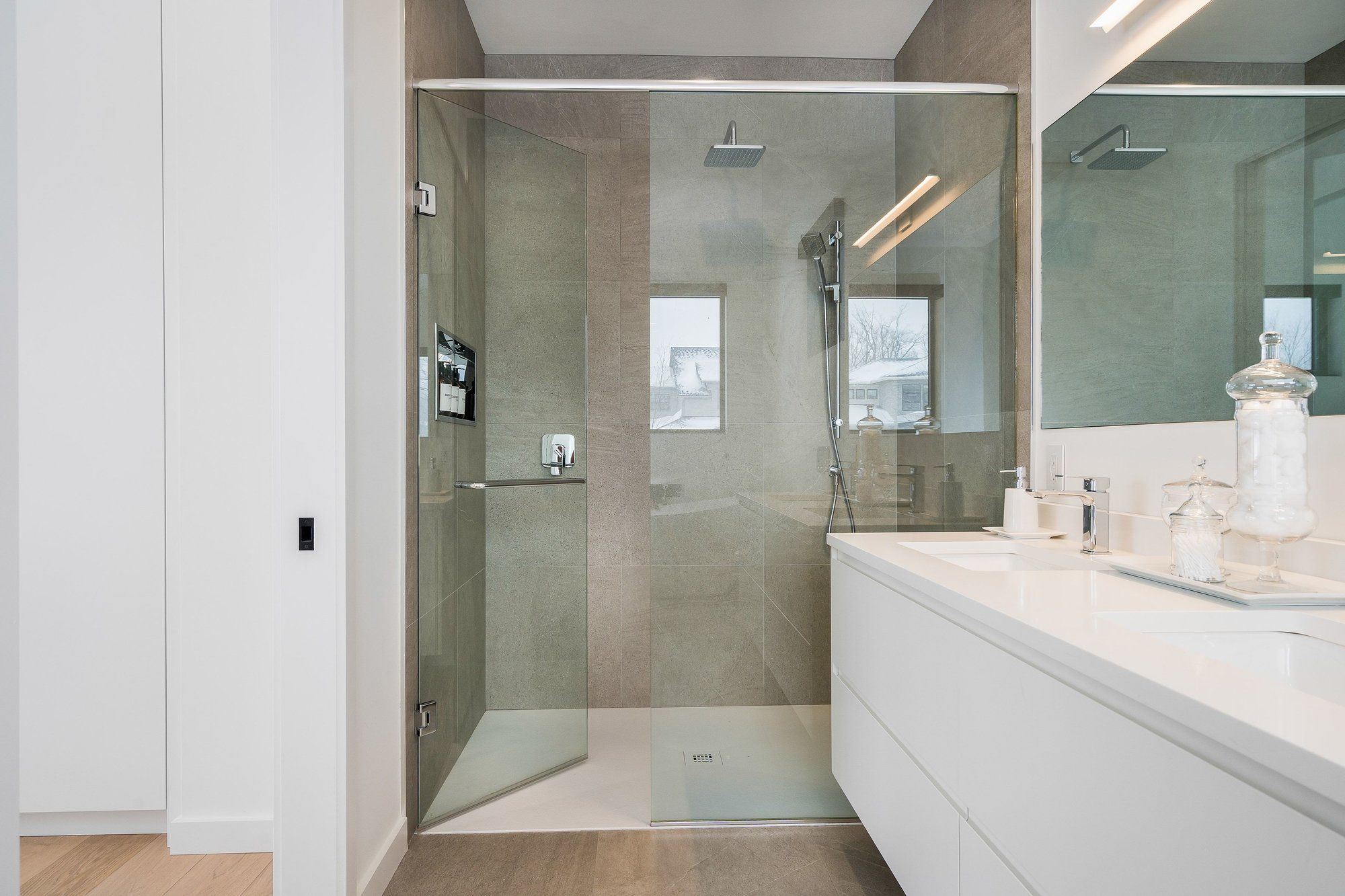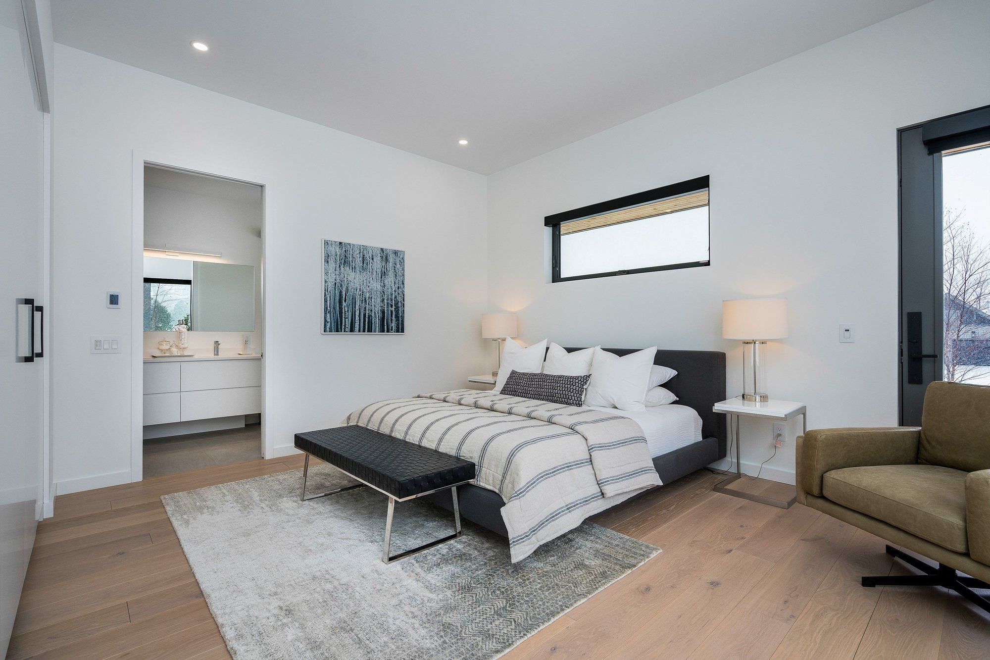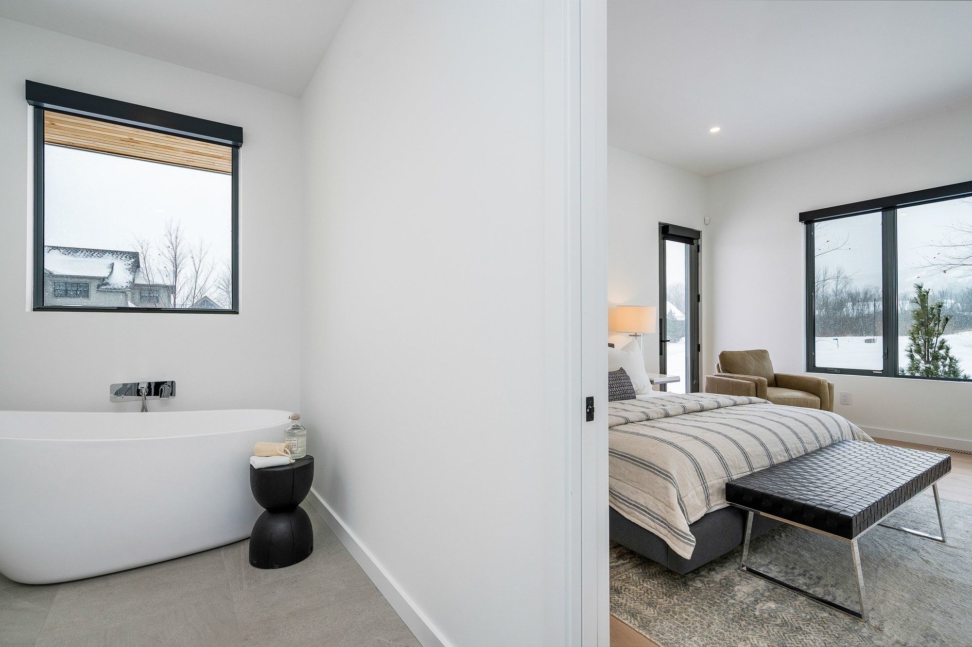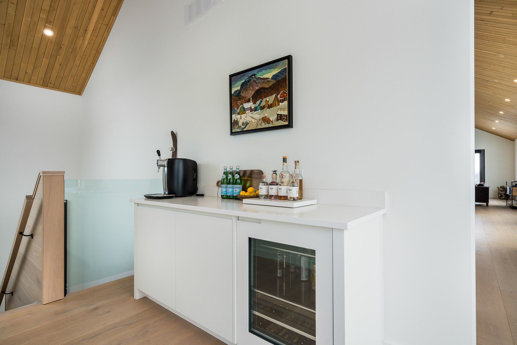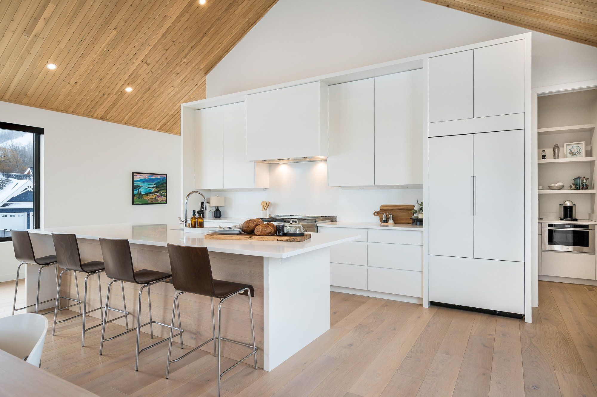 A striking contemporary ski chalet set in the heart of nipissing ridge, offering stunning, unobstructed views of the ski hills and georgian bay from the great room and multiple decks. Designed and built by higher ground building corp., this thoughtfully crafted 5-bedroom, 4-bath custom home is made for après-ski gatherings and relaxed mountain living, seamlessly blending modern architecture with classic chalet warmth. The open-concept upper level is designed for entertaining, featuring a showpiece custom kitchen with a dramatic 10-ft quartz island, walk-in pantry ,wet bar, and walk-out to a generous 23' x 23' deck. The great room is anchored by a stÛv wood-burning fireplace and soaring cathedral ceilings clad in vertical ontario white cedar. Two walk-outs lead to a covered deck and hot tub-perfect for soaking in the hill views by day and the glow of the slopes by night. The main-floor primary suite offers wall-to-wall closet space and a spa-inspired 5-piece ensuite, alongside main-floor laundry and two additional bedrooms, all with heated floors for year-round comfort. The fully finished lower level features polished, radiant in-floor heated concrete throughout, a spacious family and media room ideal for post-ski movie nights, and two additional bedrooms-perfect for family and guests. Located just minutes from craigleith and alpine ski clubs, northwinds beach, blue mountain village, dining, and shopping, this is a rare opportunity to enjoy a true four-season chalet lifestyle in one of the area's most sought-after neighborhoods.