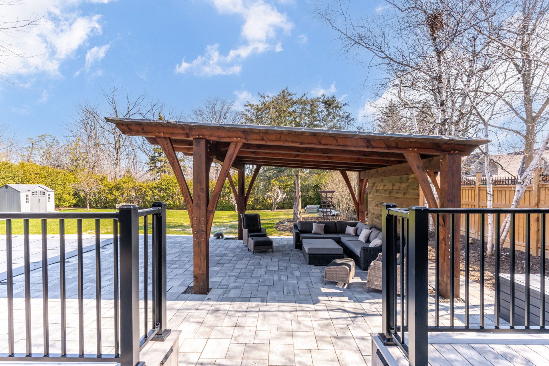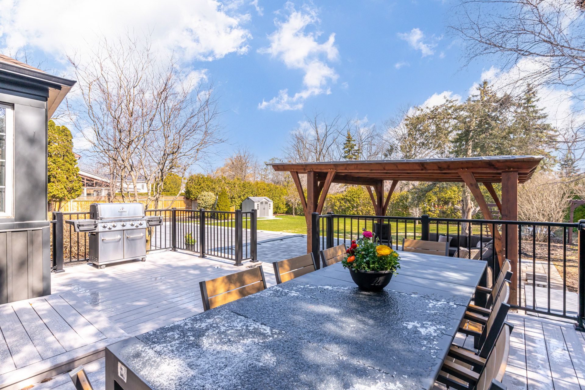 • Stunning outdoor area with a large saltwater pool and inviting pavilion.