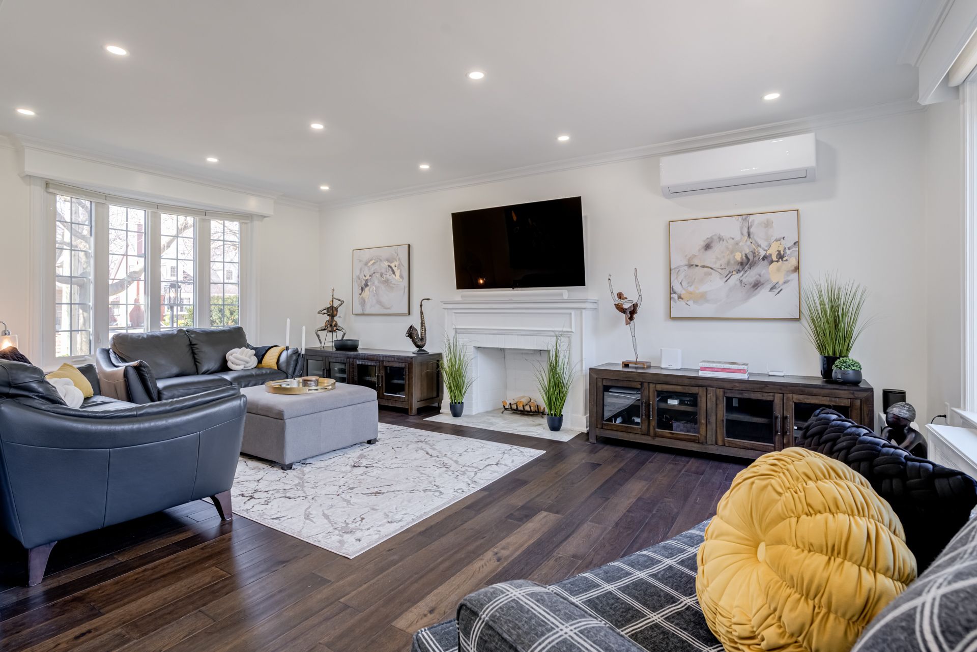 • Generous living spaces throughout, including a formal living room with a fireplace.