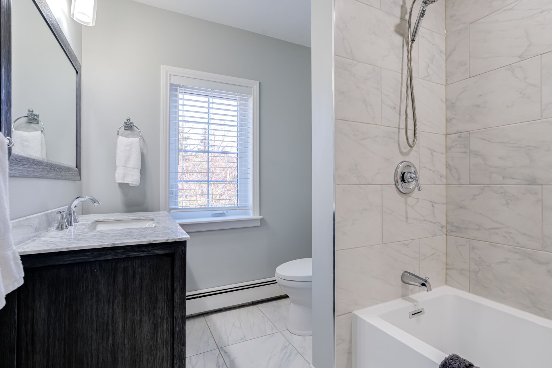 • Renovated interior features modern aesthetics and premium appliances throughout.
