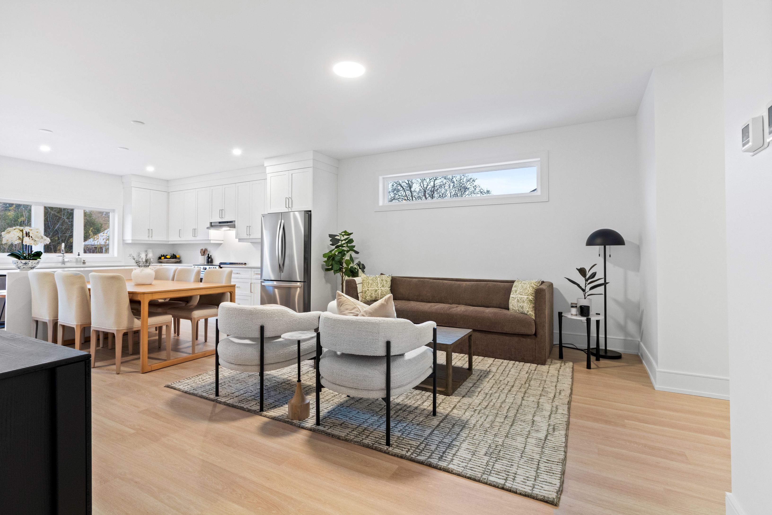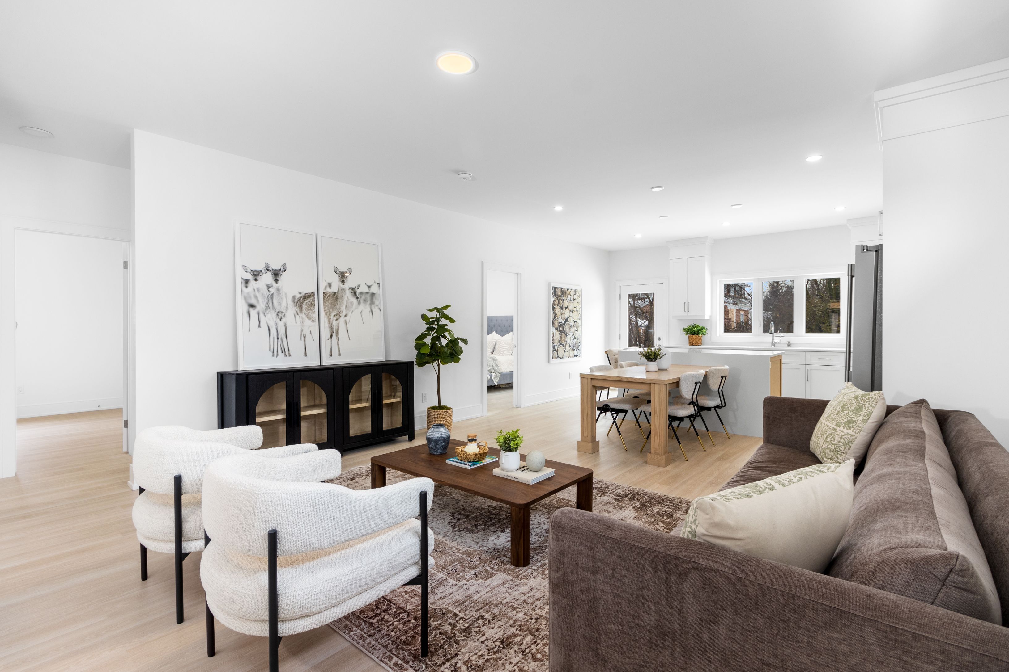 • Bright open-concept layout with 9-ft ceilings for spacious feel.