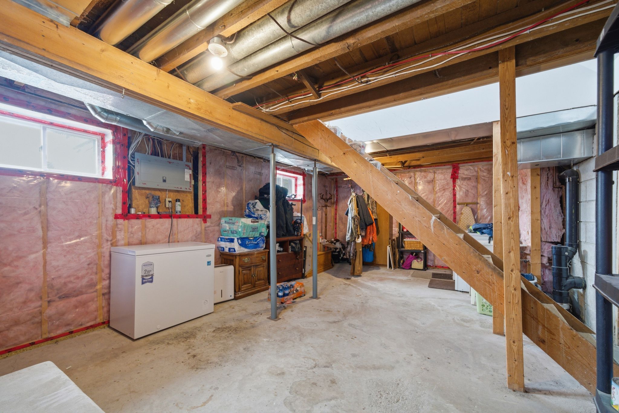 • Bright, clean basement ideal for storage and organization.