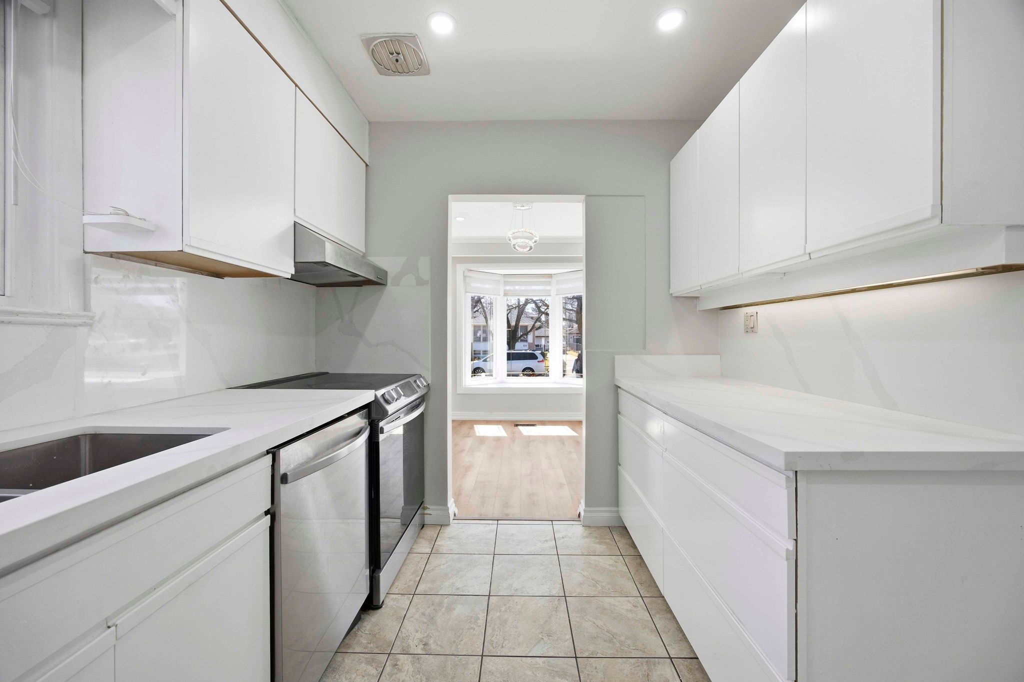 • Fully renovated with a bright living and dining area featuring a bay window.