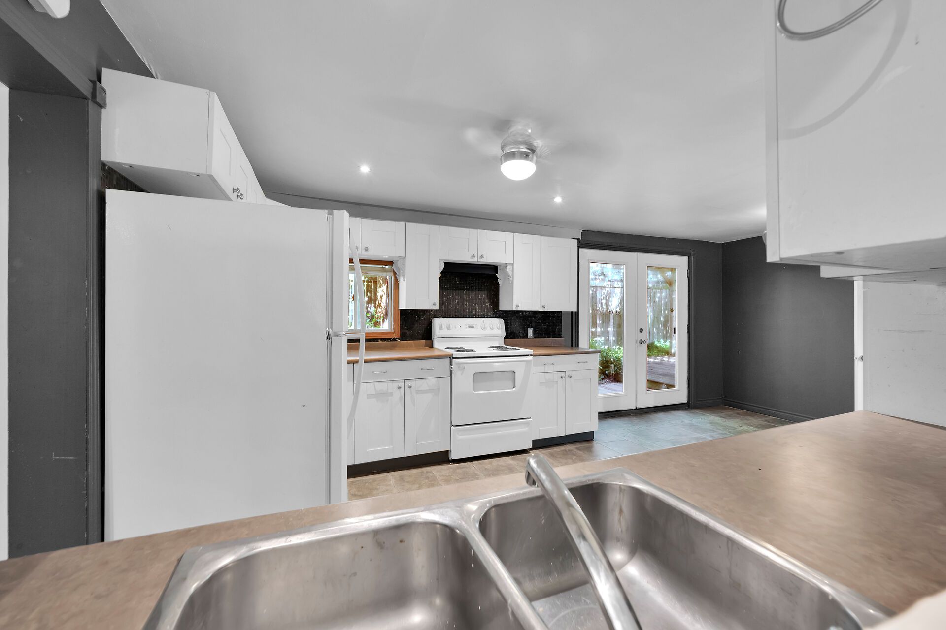Charming 3-bedroom home located on the hill surrounded by trees! Short stroll to downtown & easy access to qew. Spacious main floor with large kitchen and glass doors leading to very private patio with pergola. Main floor family room with gas fireplace, main floor office & main floor laundry, 1. 5 baths. Large shed with loft. Appliances. Steps to bruce trail for nature-lovers. Country setting near city conveniences! Some photos virtually staged.