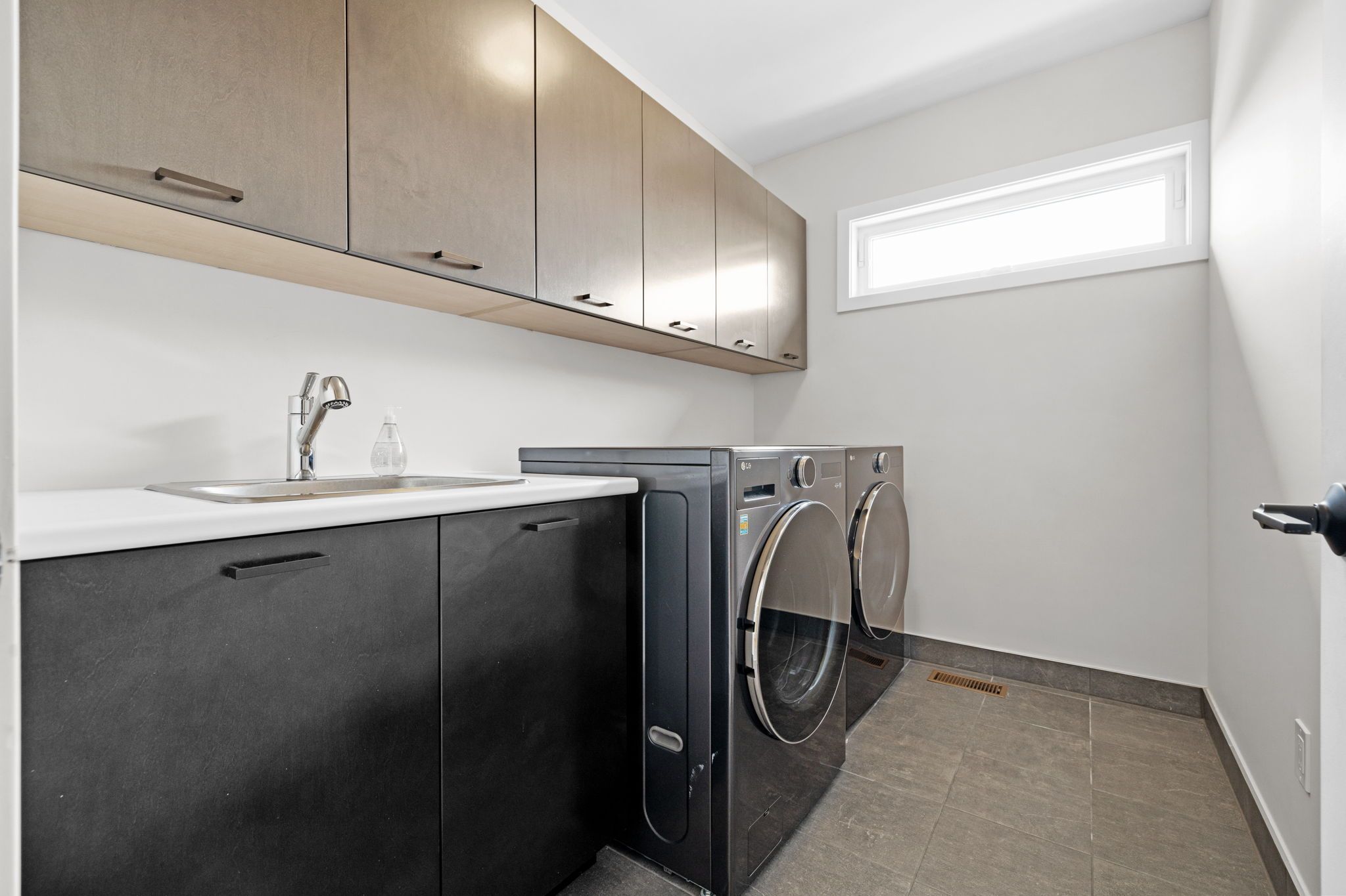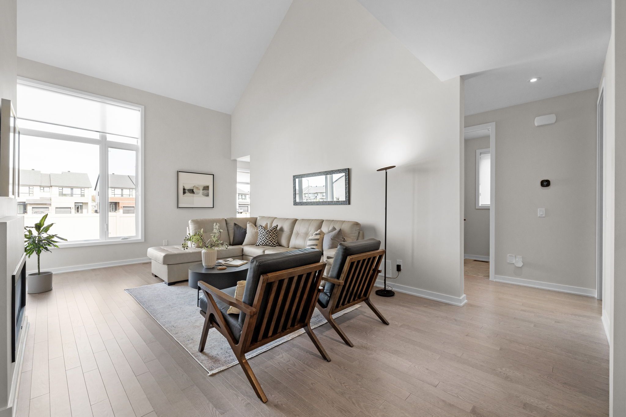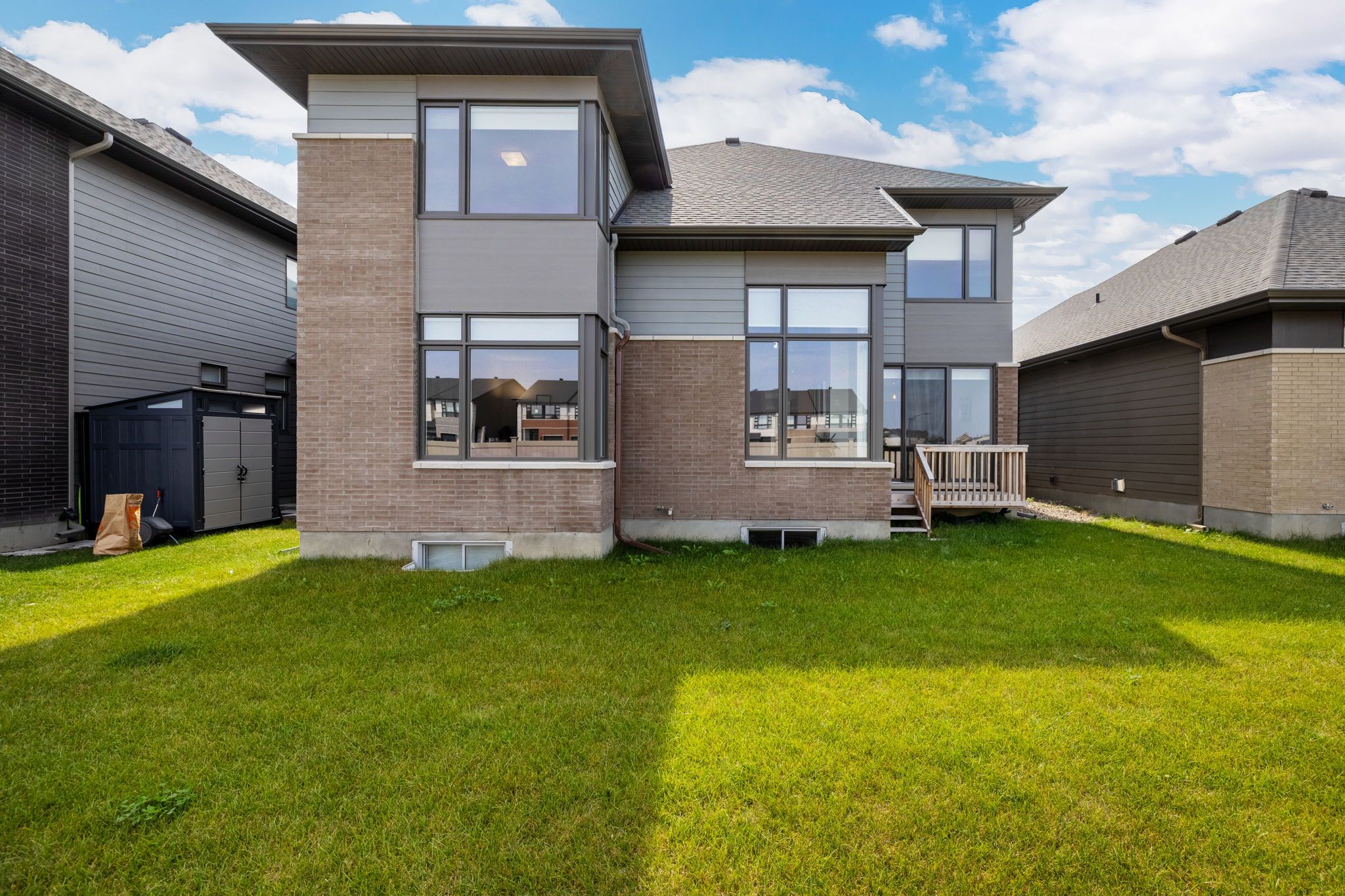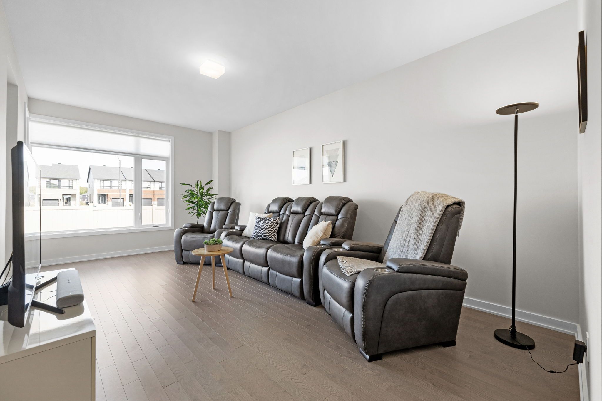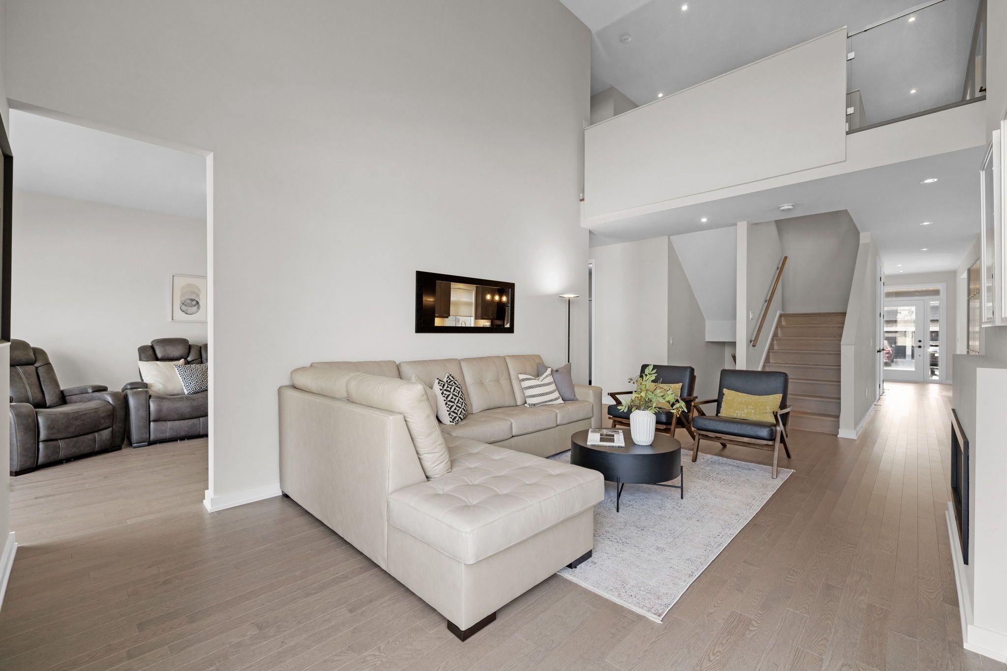 Welcome to 126 orchestra way - a rarely offered, highly sought-after home built by award-winning hn homes. This beautifully upgraded 2023 build offers approximately 3,700 sq ft of thoughtfully designed living space, blending modern elegance with everyday functionality. The main floor welcomes you with a breathtaking 17-foot ceiling in the living room, where oversized windows flood the space with natural light. At the front of the home, a charming south-facing sitting area offers the perfect flex space, ideal for a bright home office, a peaceful reading nook, or a cozy spot to enjoy your morning coffee, afternoon tea, or evening happy hour bathed in natural sunlight. The semi-open concept kitchen is perfect for entertaining, stylishly showcasing what you want seen while discreetly keeping everyday essentials tucked away. Just beyond the living area, a separate bonus media room provides a cozy retreat and offers the flexibility to convert into a 6th bedroom if desired. A highly practical feature for busy households is the separate side entrance through the mudroom. Family and guests can come and go with ease while keeping shoes, coats, and everyday mess neatly contained away from the main living areas. Upstairs, 4 generously sized bedrooms are thoughtfully positioned at each corner of the home to maximize privacy. Three bedrooms enjoy direct access to full bathrooms, offering exceptional convenience for family and guests alike. The primary suite is a true sanctuary, featuring a spa-inspired 5-piece ensuite, two walk-in closets, and sun-filled southern exposure. The fully finished basement, completed by the builder during construction, adds even more functional living space. It includes a spacious 5th bedroom with egress-certified windows and a full 3 pc bathroom, ideal for guests, extended family, or additional living flexibility. If you're looking for space, style, and lifestyle all in one exceptional home, this is it. Book your private tour today!