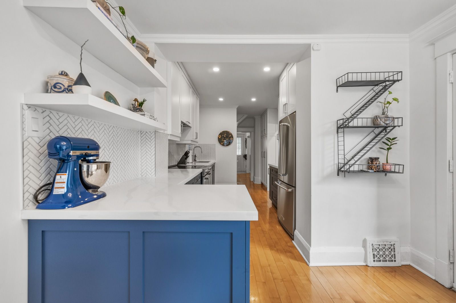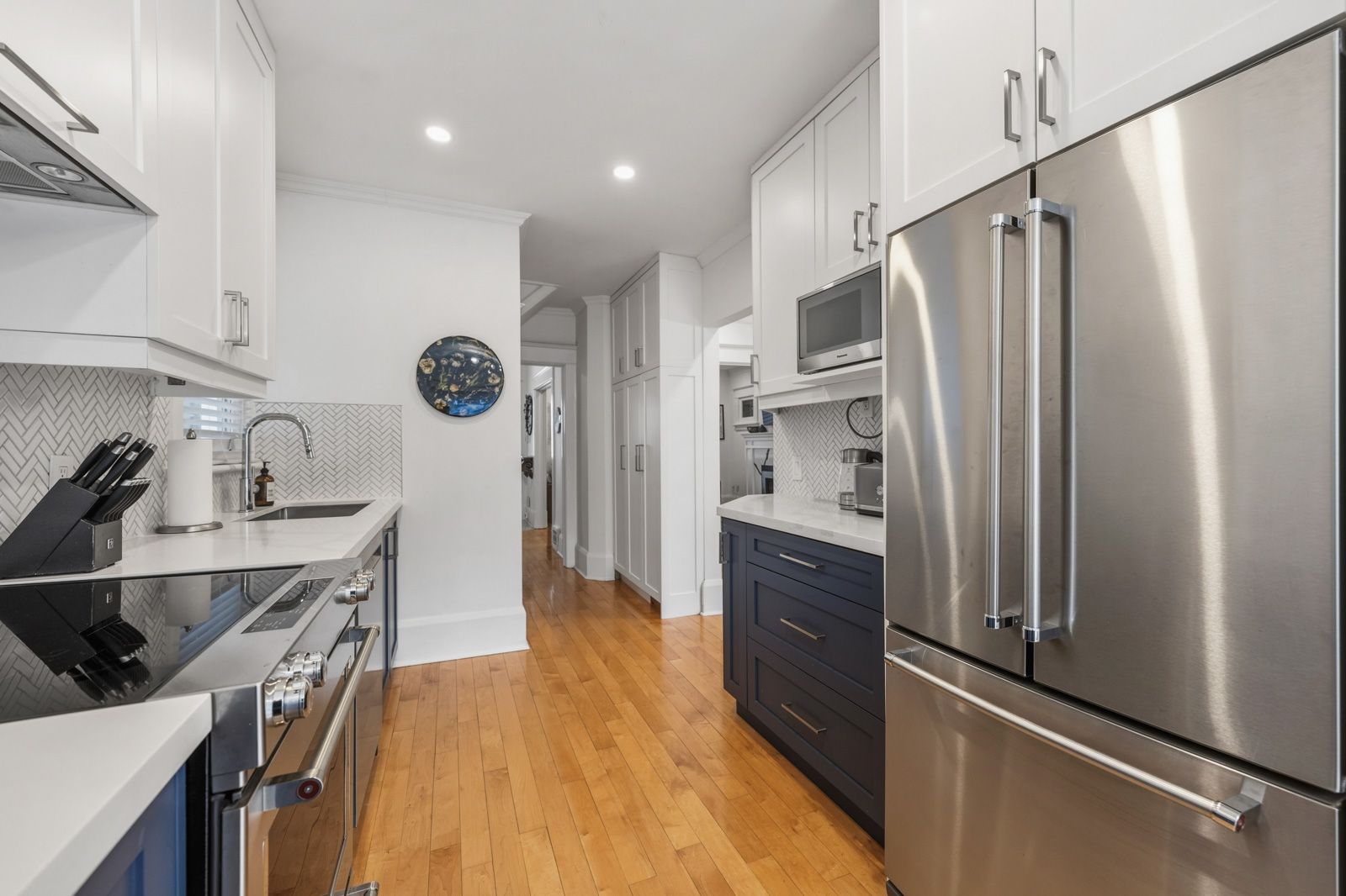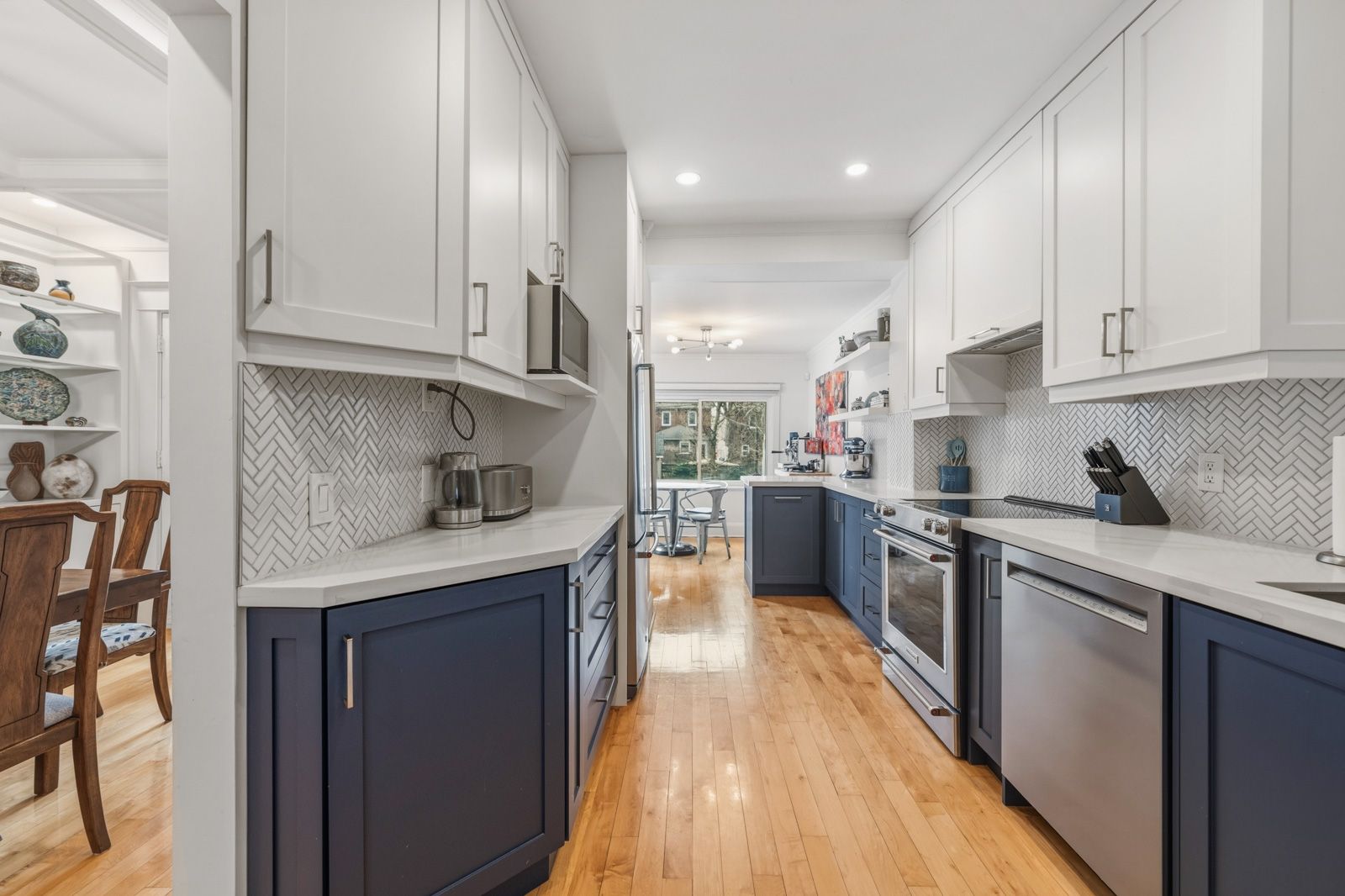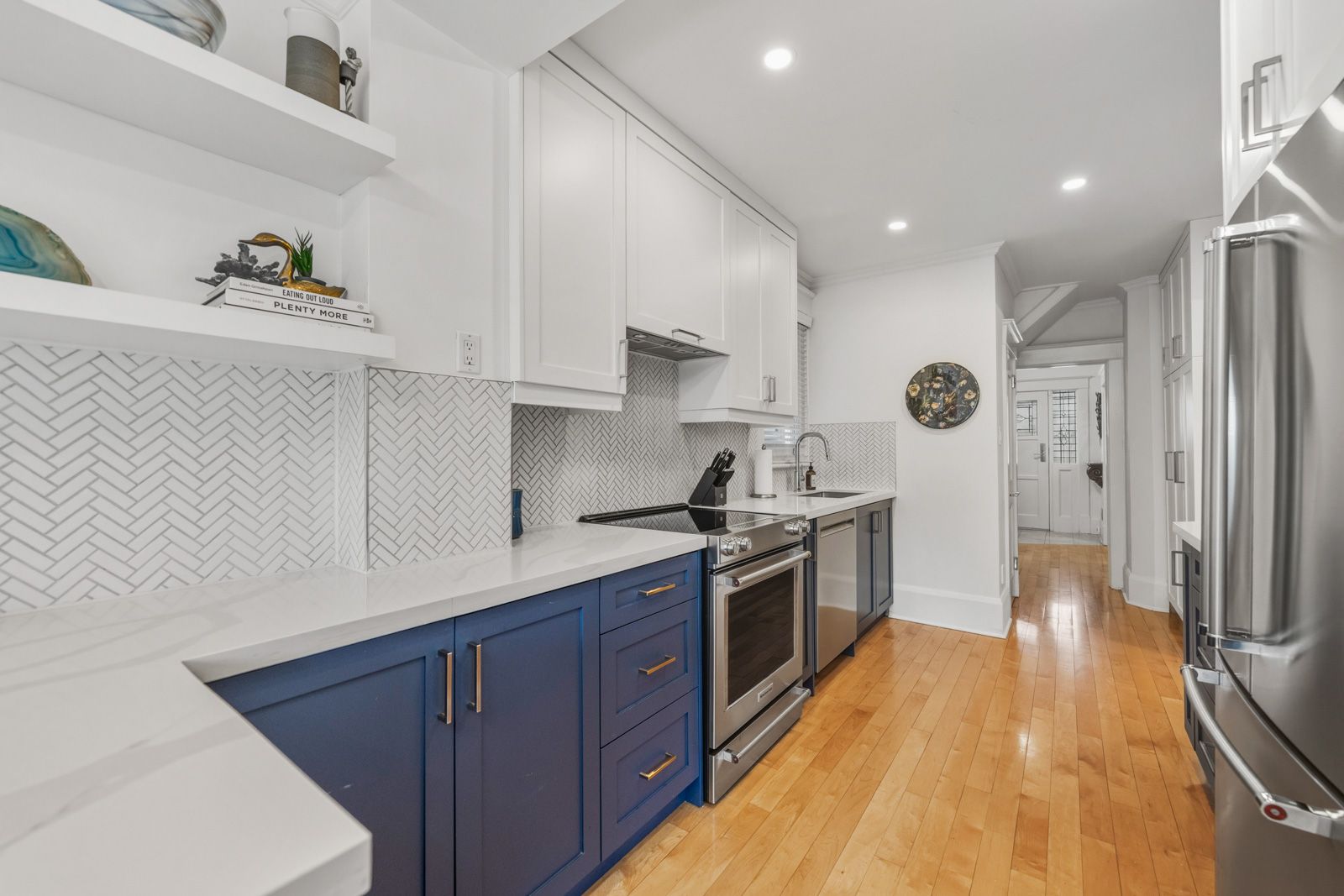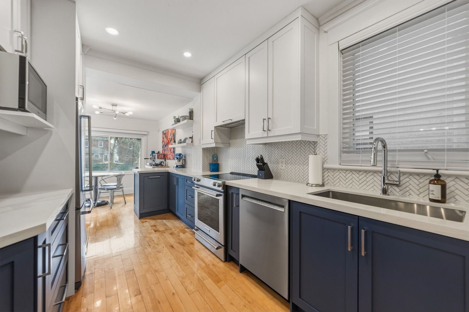 • Renovated kitchen with stainless steel appliances and a breakfast area.