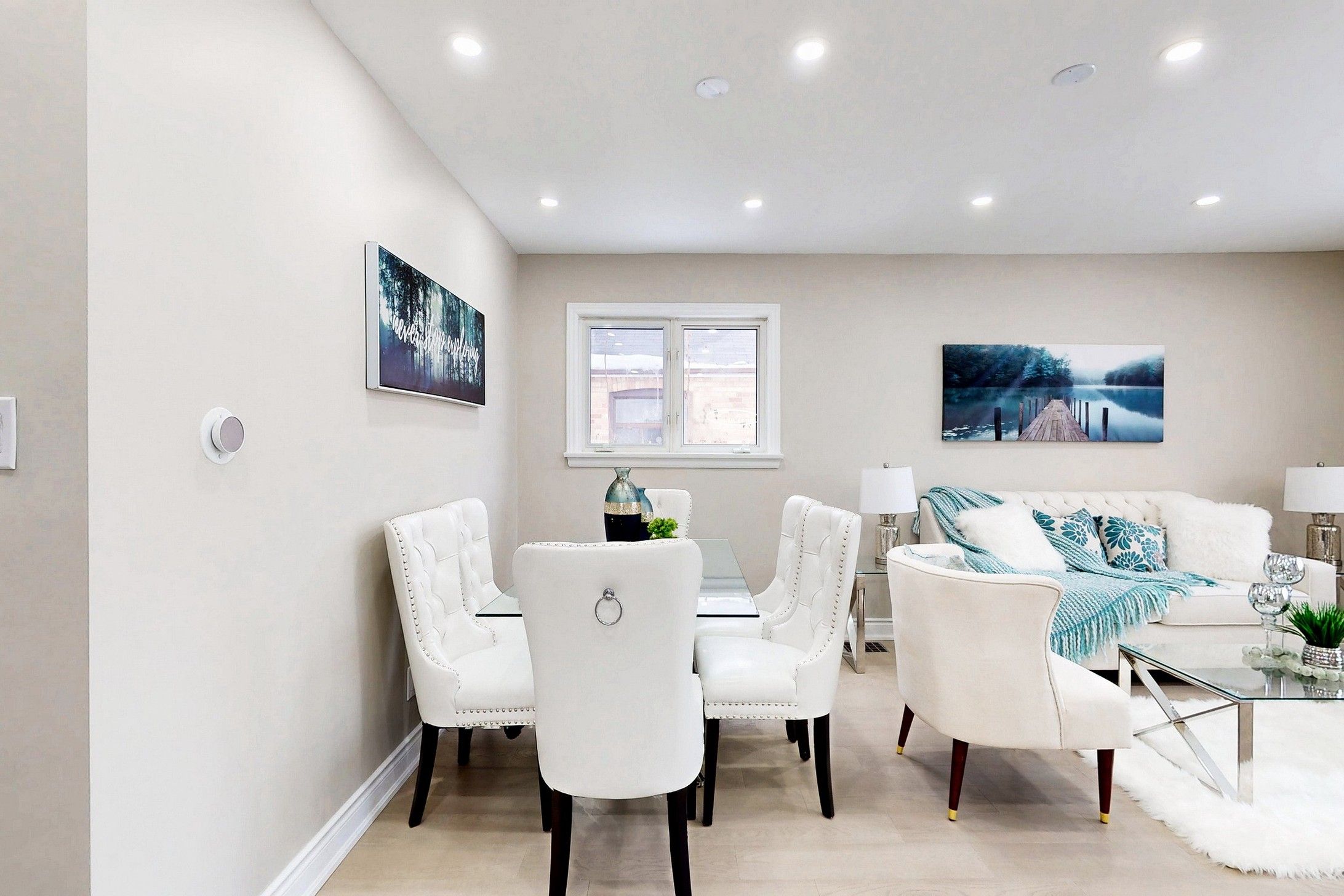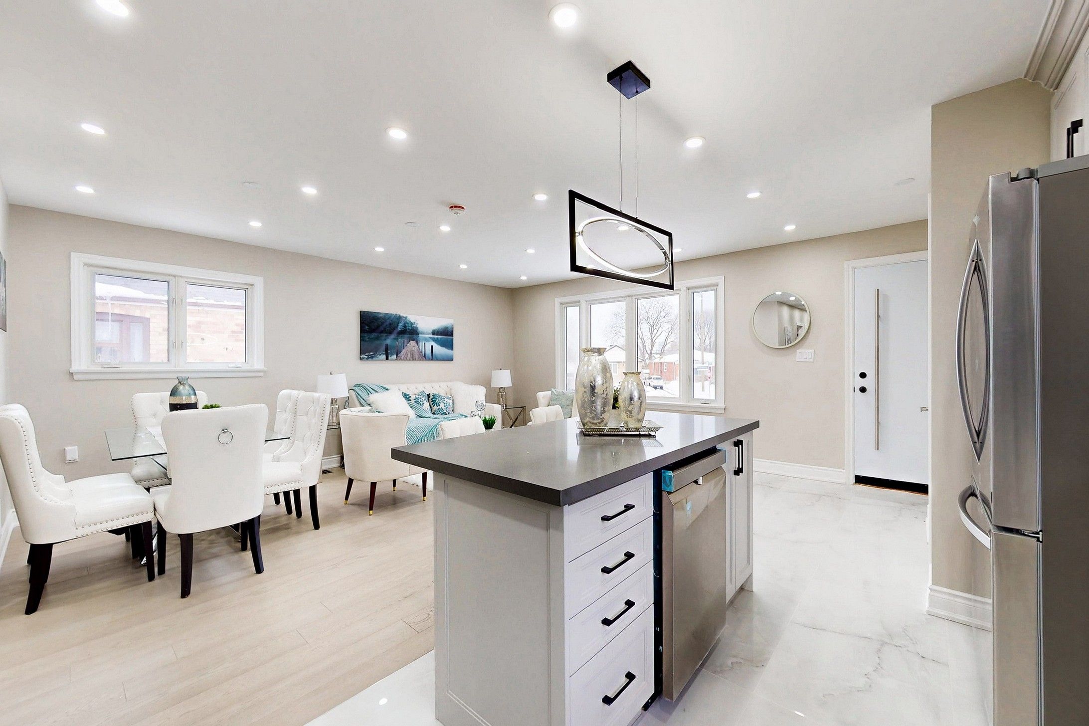 Stunning fully renovated income-generating home - turnkey opportunity! Newly & legally renovated top-to-bottom open-concept home with excellent income potential! Main floor features modern kitchen with quartz countertops & island, spacious living/dining areas, powder room, separate laundry, 3 generous bedrooms with pot lights, 4-pc bath & updated electrical panel. Finished legal basement with separate entrance offers full kitchen with quartz, 3 bedrooms, 2 full baths & approx. $2,500/month rental potential. 200-amp esa-approved service, thermal windows, new stove, tankless water heater, shingles (2023). Double garage, driveway parking up to 5 cars & spacious backyard. Prime location close to hwy 401, kennedy subway, ttc, schools, shopping & all amenities.
