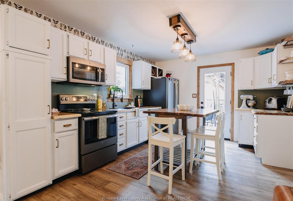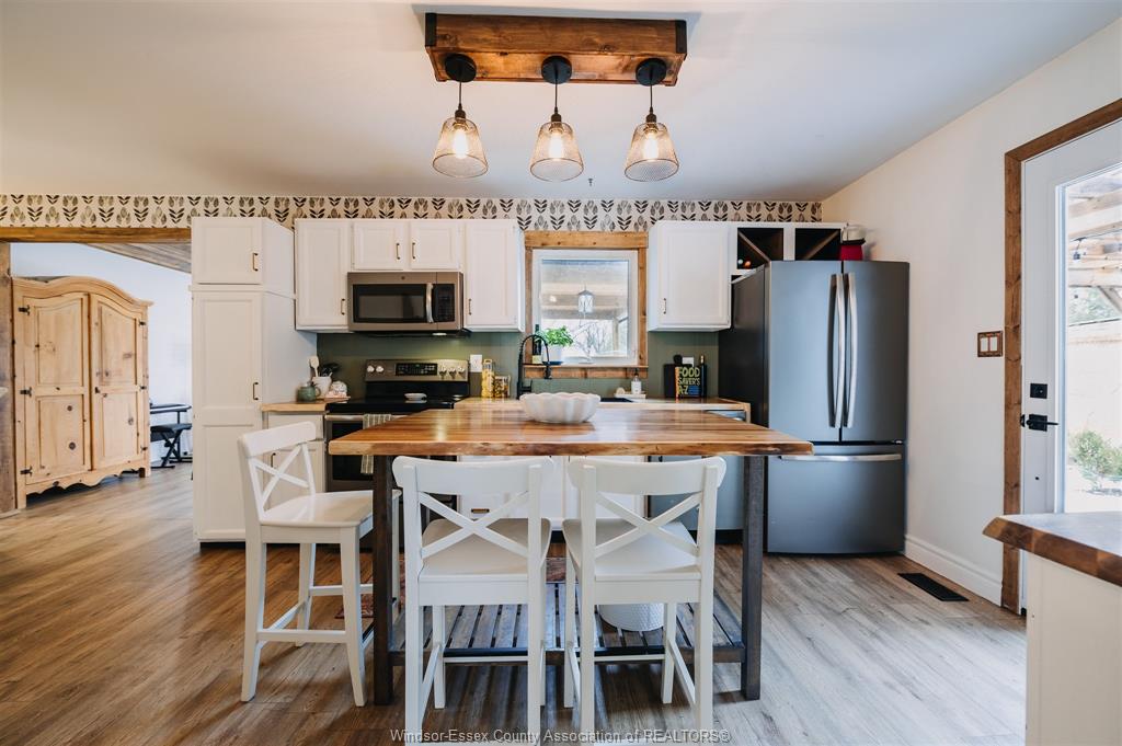 Located on a quiet street in belle river with lake access via a nearby path, and within a sought-after double school district close to cafés, parks, and shopping — an ideal setting for young families. This two-storey home pairs function with personality and offers a layout that works for everyday life. The main level includes a 2-piece bath, mudroom, spacious eat-in kitchen, and a generous family room that looks onto the large landscaped backyard. The layout supports gatherings, family time, and easy indoor-outdoor use. Upstairs are three bedrooms and a full bath. The finished lower level provides additional space with a recreation room, 2-piece bath, and ample storage. Recent updates include roof, eavestroughs, siding, windows and doors, lawn irrigation system, and landscaping. An attached garage and double concrete driveway add practical convenience. Call today to schedule a private showing!
