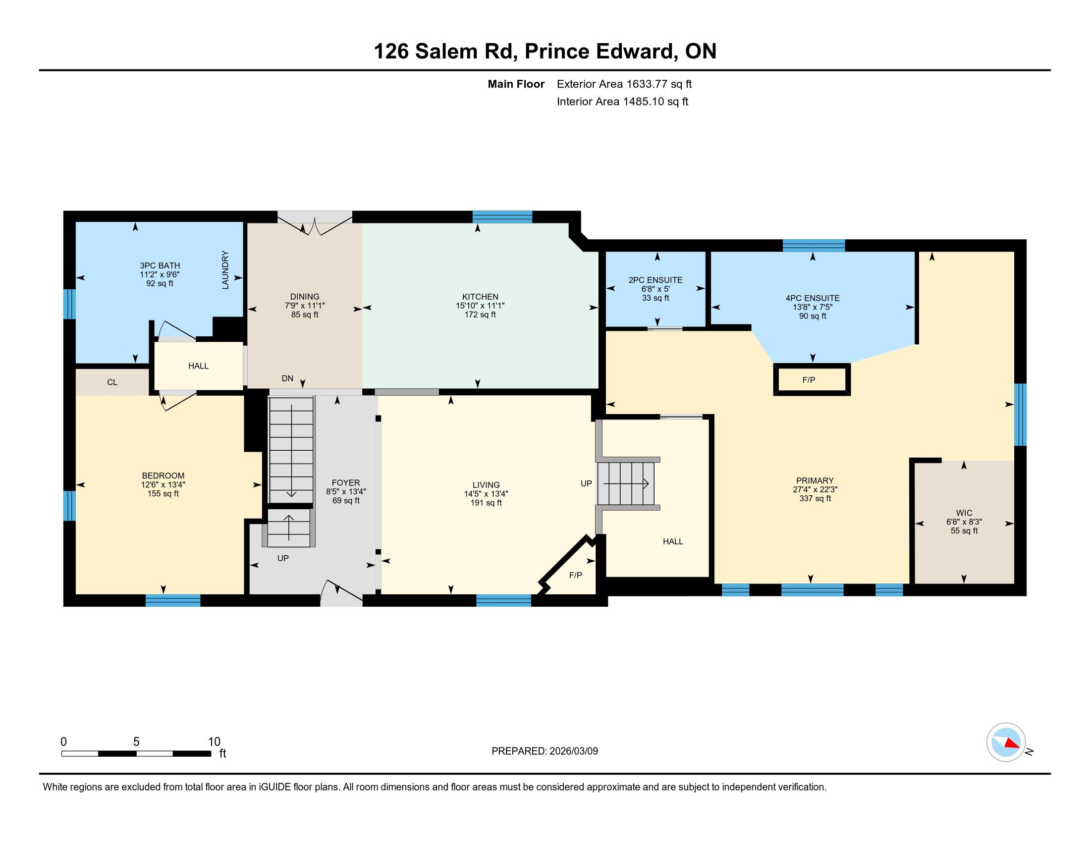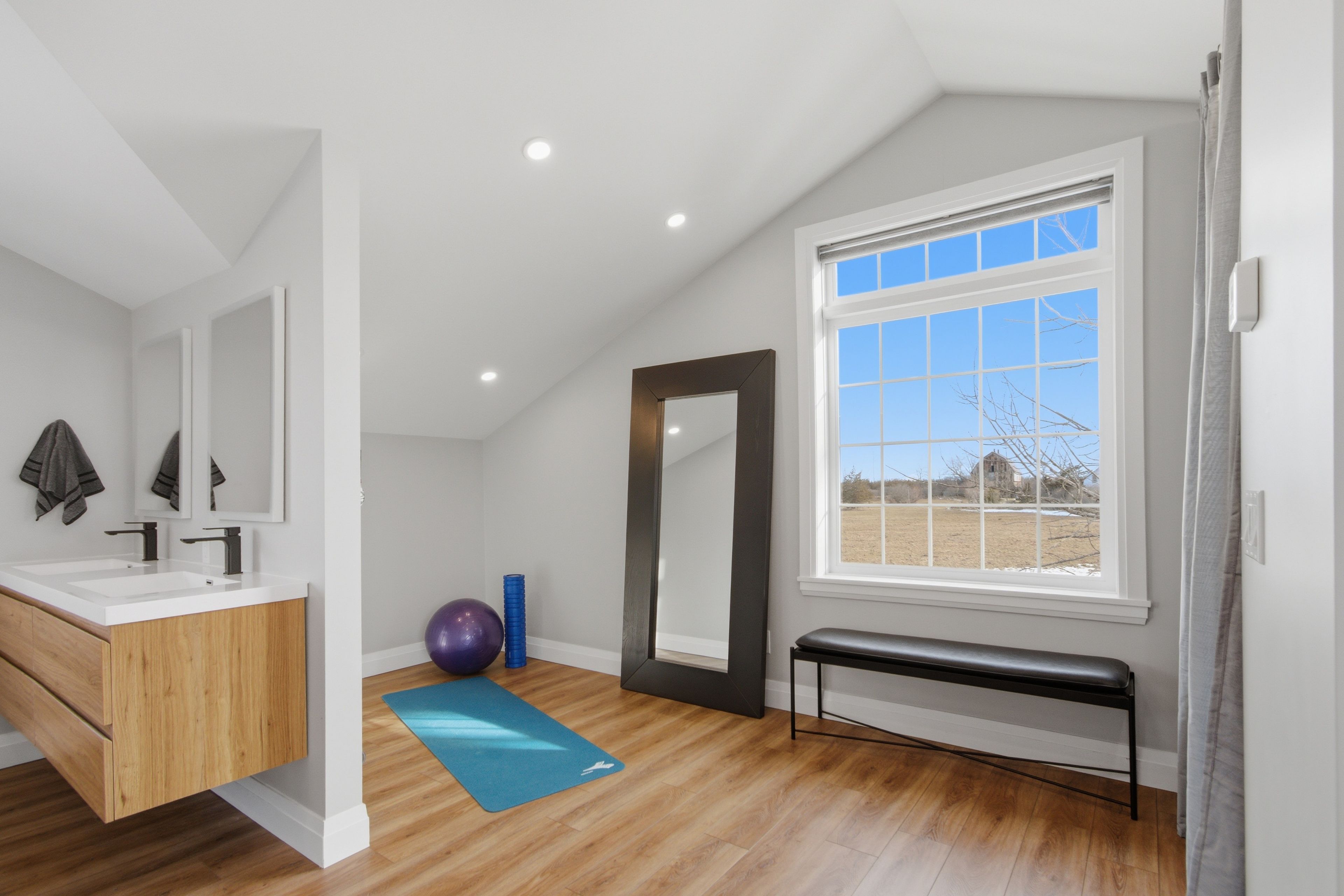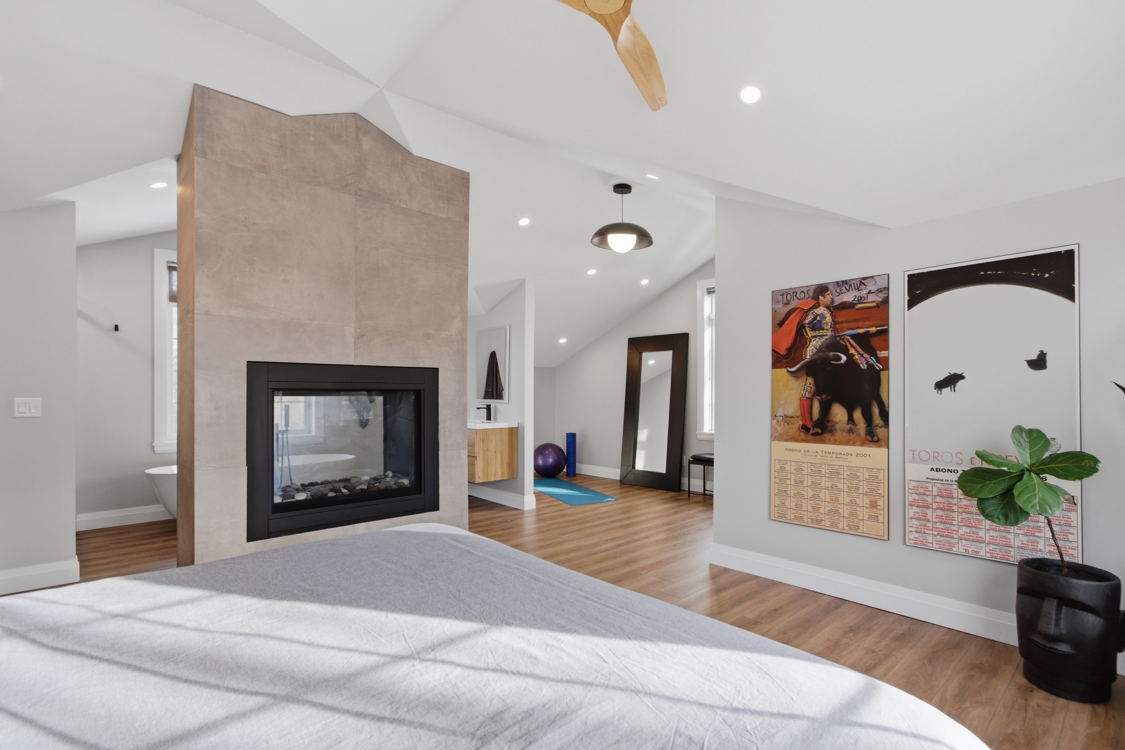 • Separate primary suite includes a spa-like en-suite and two-sided fireplace.