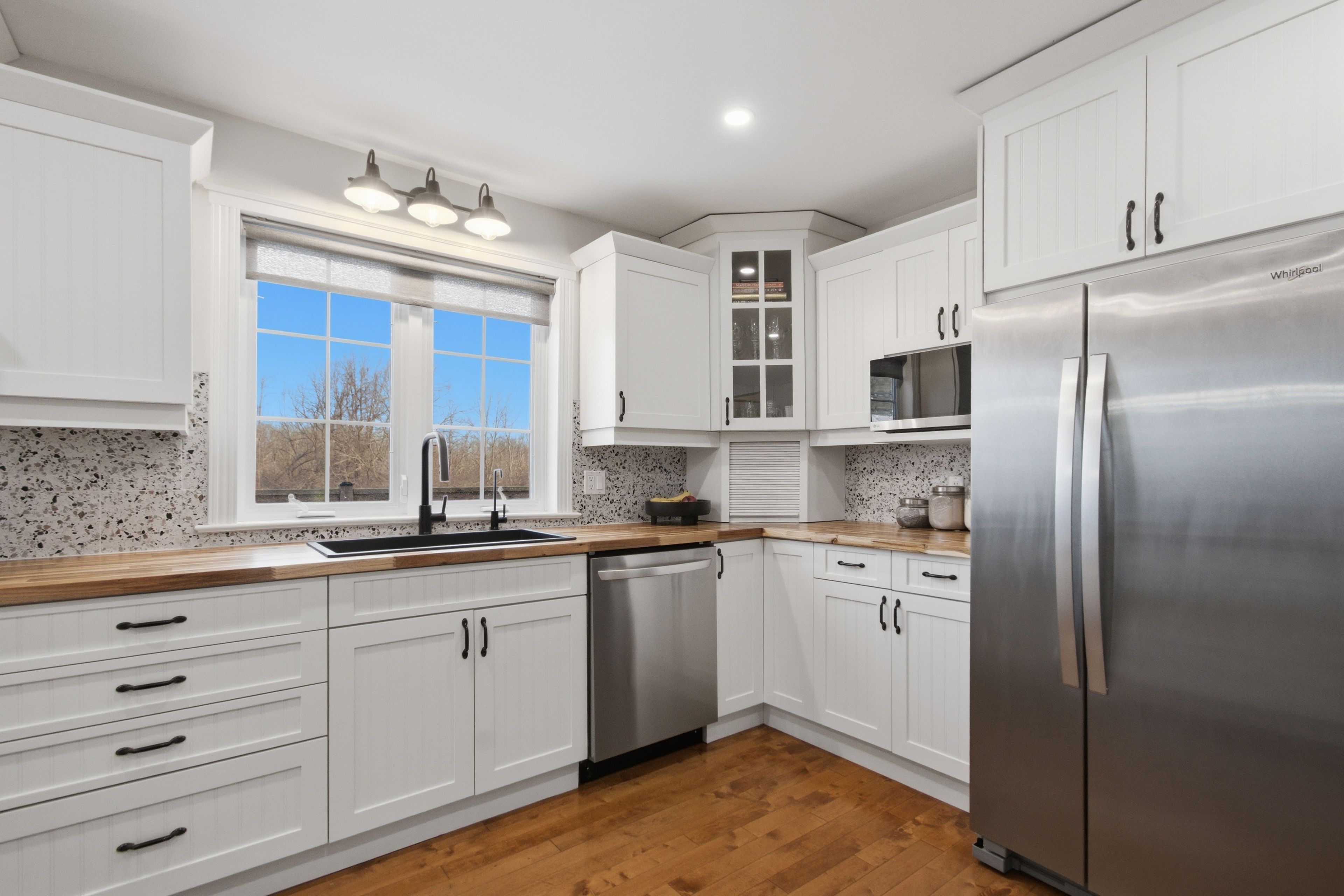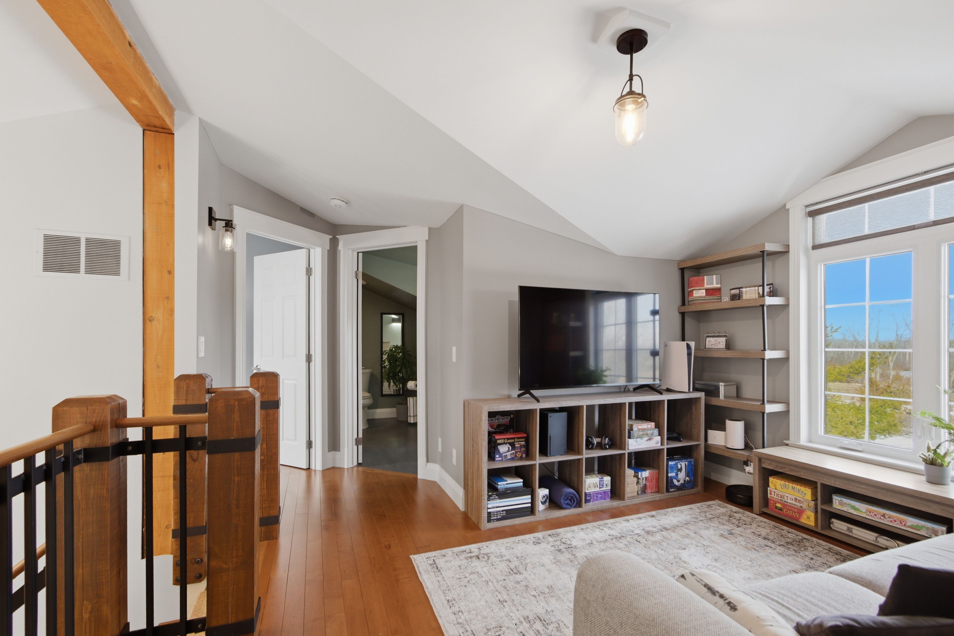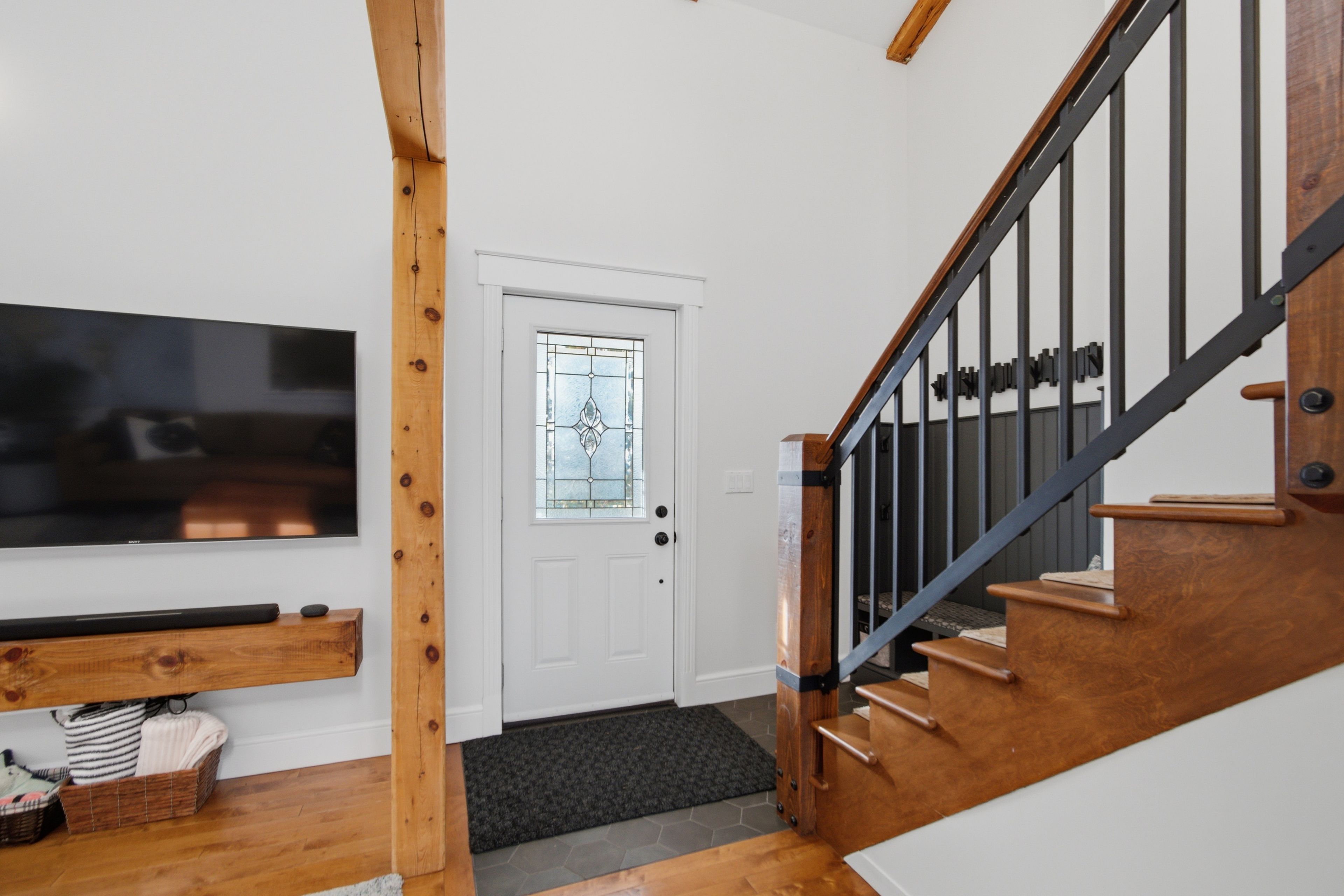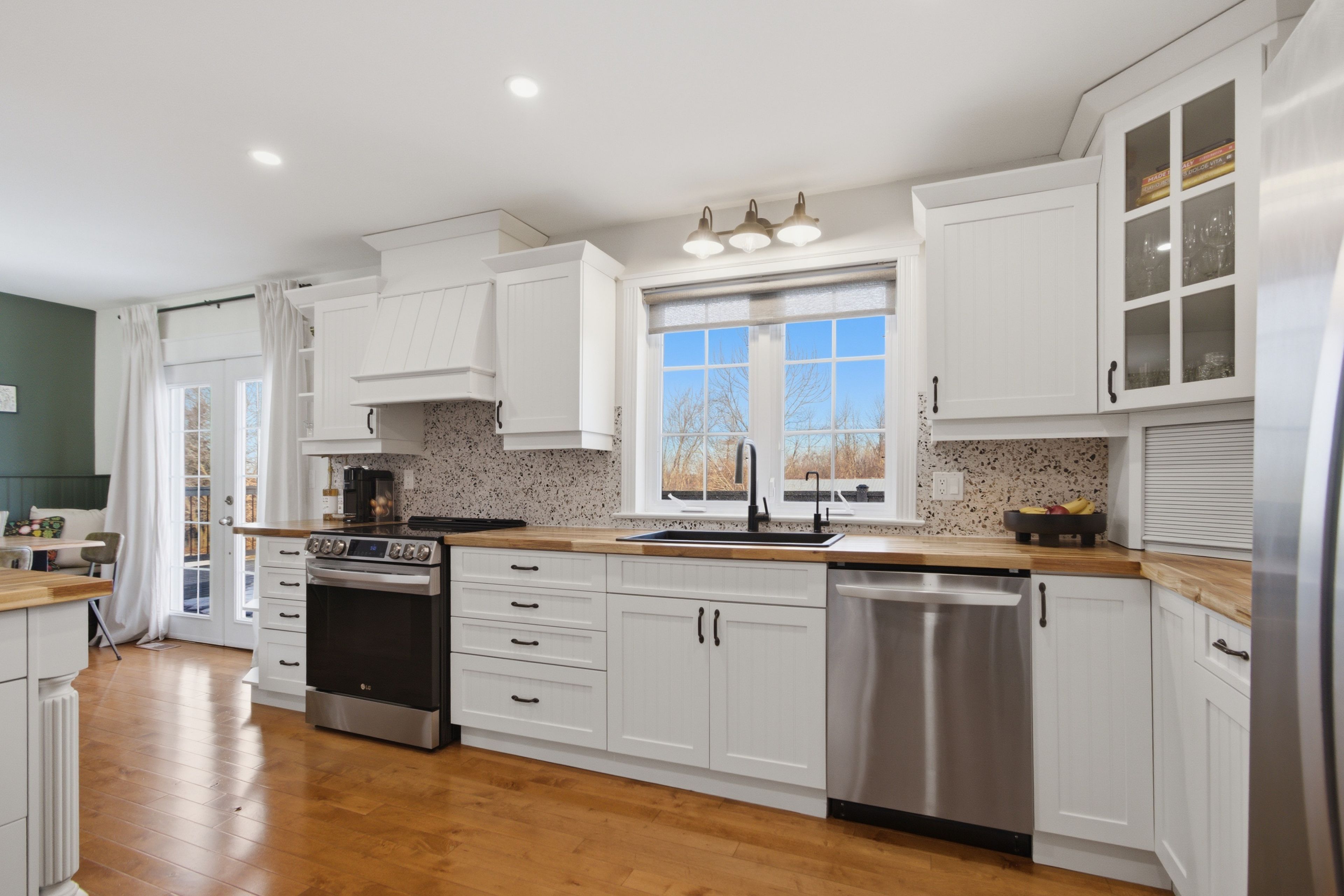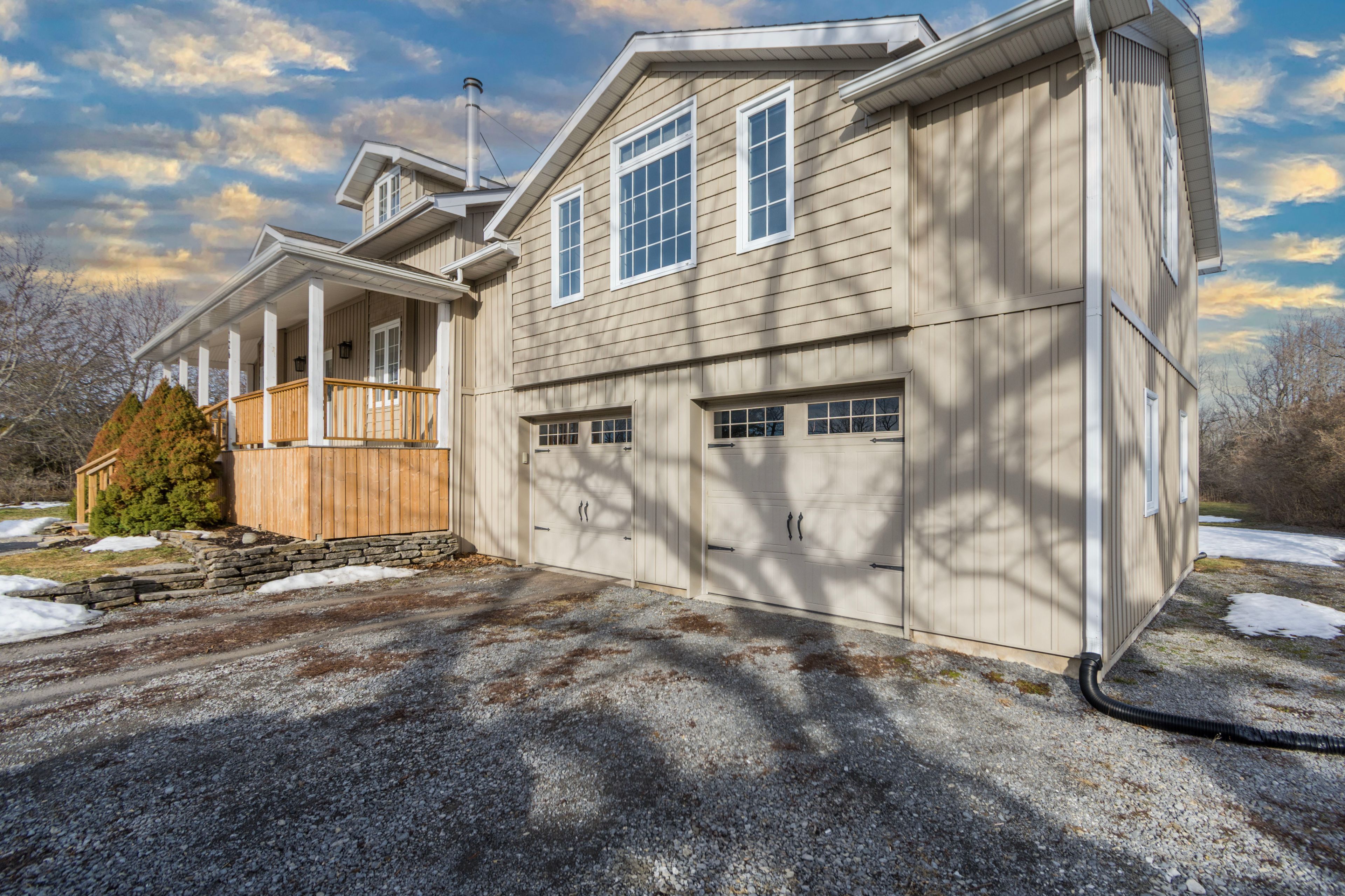 Rural luxury meets modern comfort-welcome to your private oasis! This stunning 2 storey home perfectly blends sophisticated updates with the peaceful charm of 2. 5 sprawling acres. From the high-end finishes every inch of this property has been meticulously maintained. In the heart of the home your chef's kitchen featuring custom cabinetry, rich wood countertops, and premium stainless steel appliances-a perfect blend of rustic warmth and modern function. Garden doors lead to the rear deck from the dining area creating space for entertaining family and friends. Living room's soaring vaulted ceilings create an airy, grand feel, centered around a cozy fireplace and accented by beautiful hardwood flooring. The main floor includes a convenient laundry room and a full 3 piece bathroom for guests or busy families. The separate primary suite is a true sanctuary, designed for ultimate relaxation & ambiance with the 2 sided fireplace warming both the sleeping area and the spa-like en-suite. Indulge in the deep soaker tub or the sleek walk-in shower. Upper level has two additional bright bedrooms and a versatile family room, serviced by a full 4 piece bathroom-ideal for children, guests or a home office. Enjoy your morning coffee on the classic front porch or host summer bbqs on the expansive rear deck. 2. 5 acres of manicured land featuring a functional barn and a garden shed, offering endless possibilities for hobby farming or storage. Park with ease in the 2-car garage3 and enjoy being just minutes away from world-class wineries and the region's top-rated restaurants. Doesn't everyone want to live in "the county?"