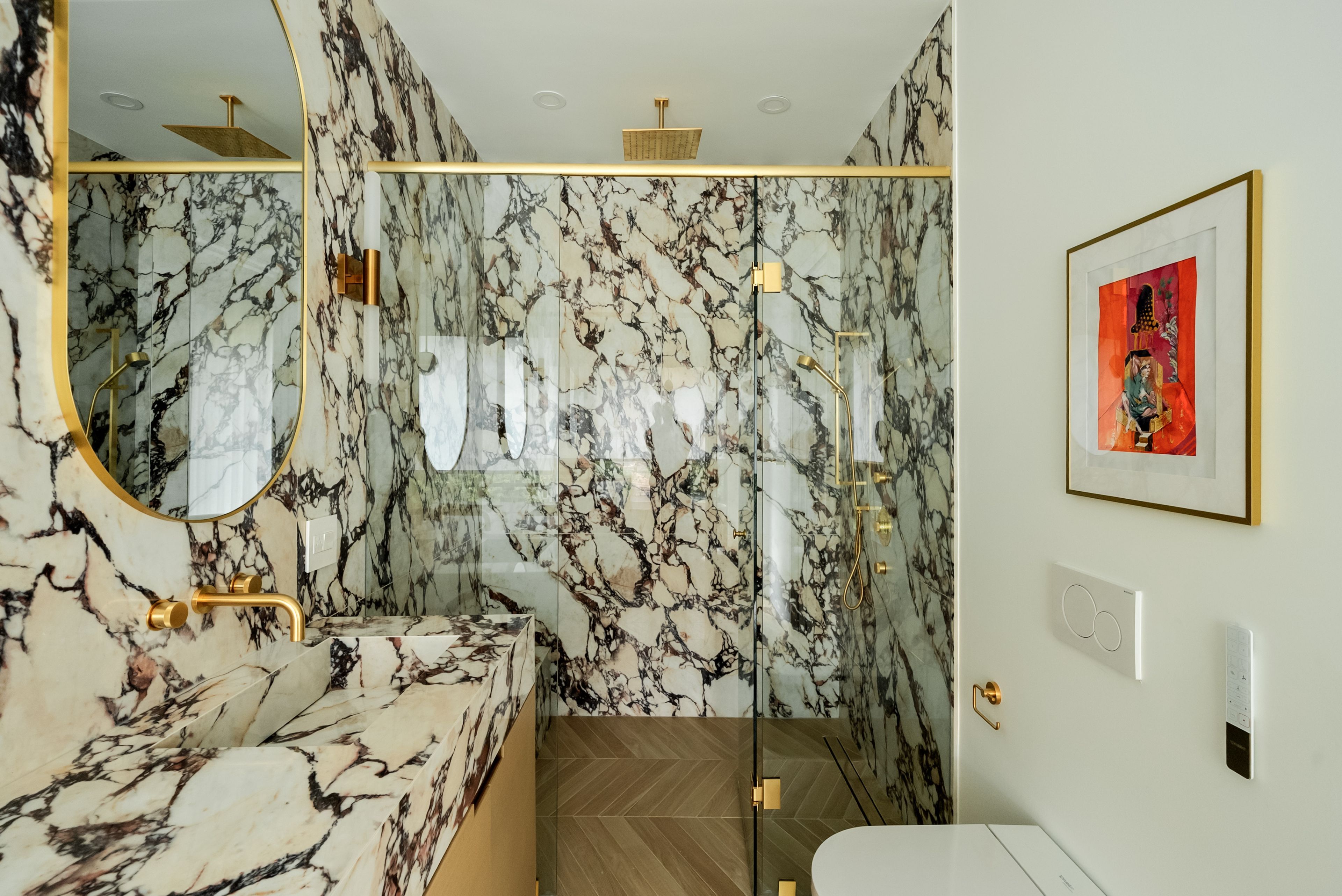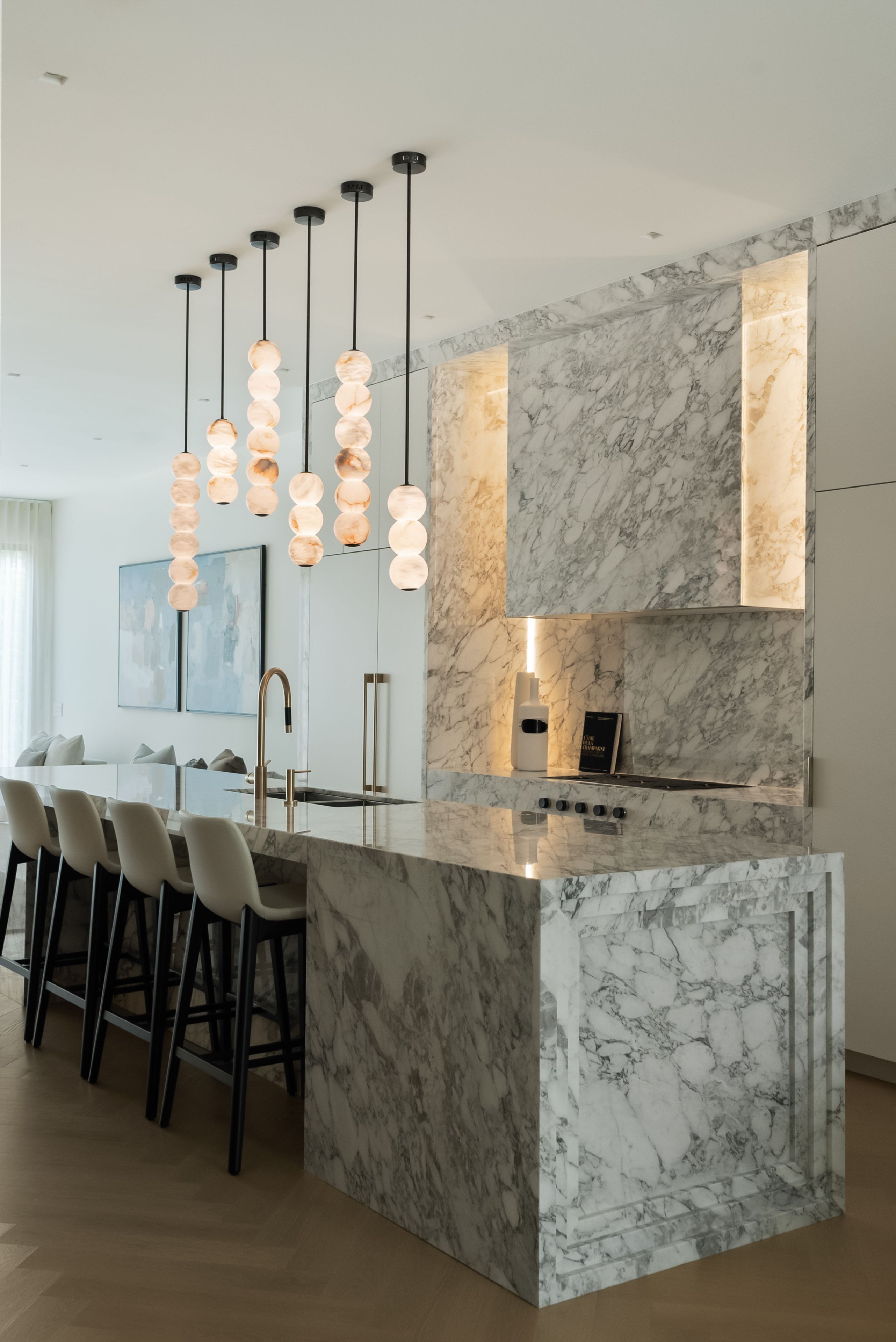 • Meticulously crafted with authentic Italian stone and custom marble features.