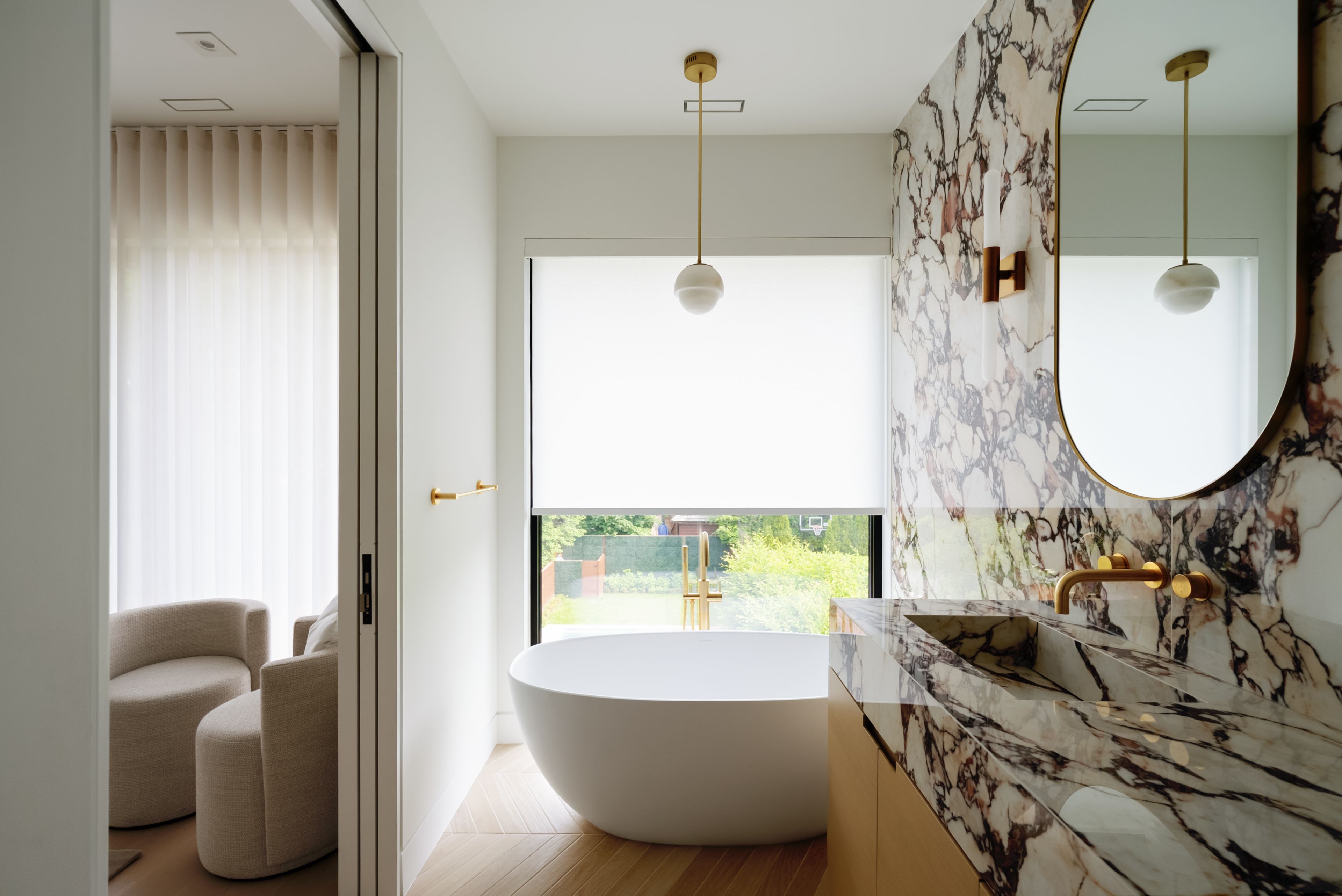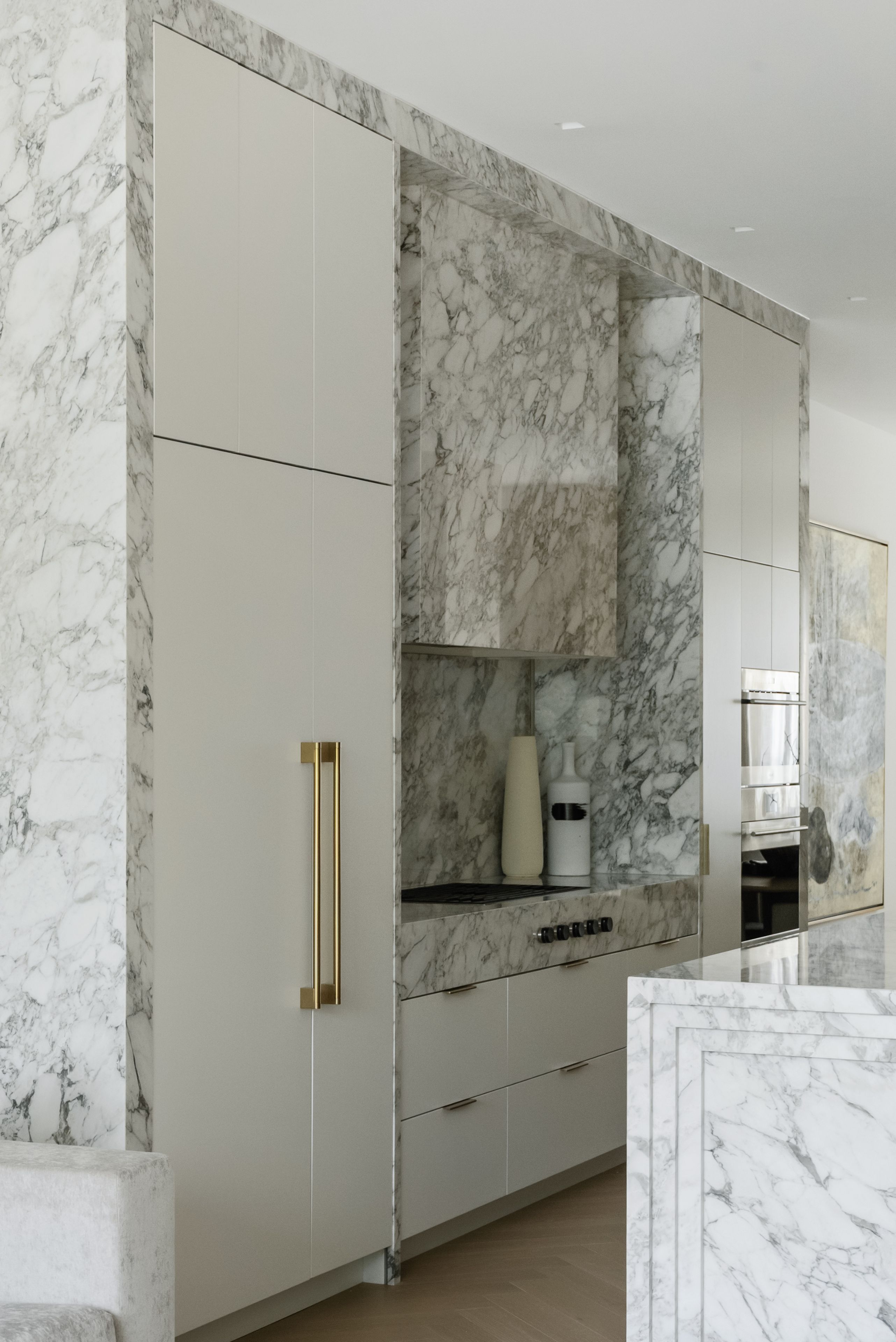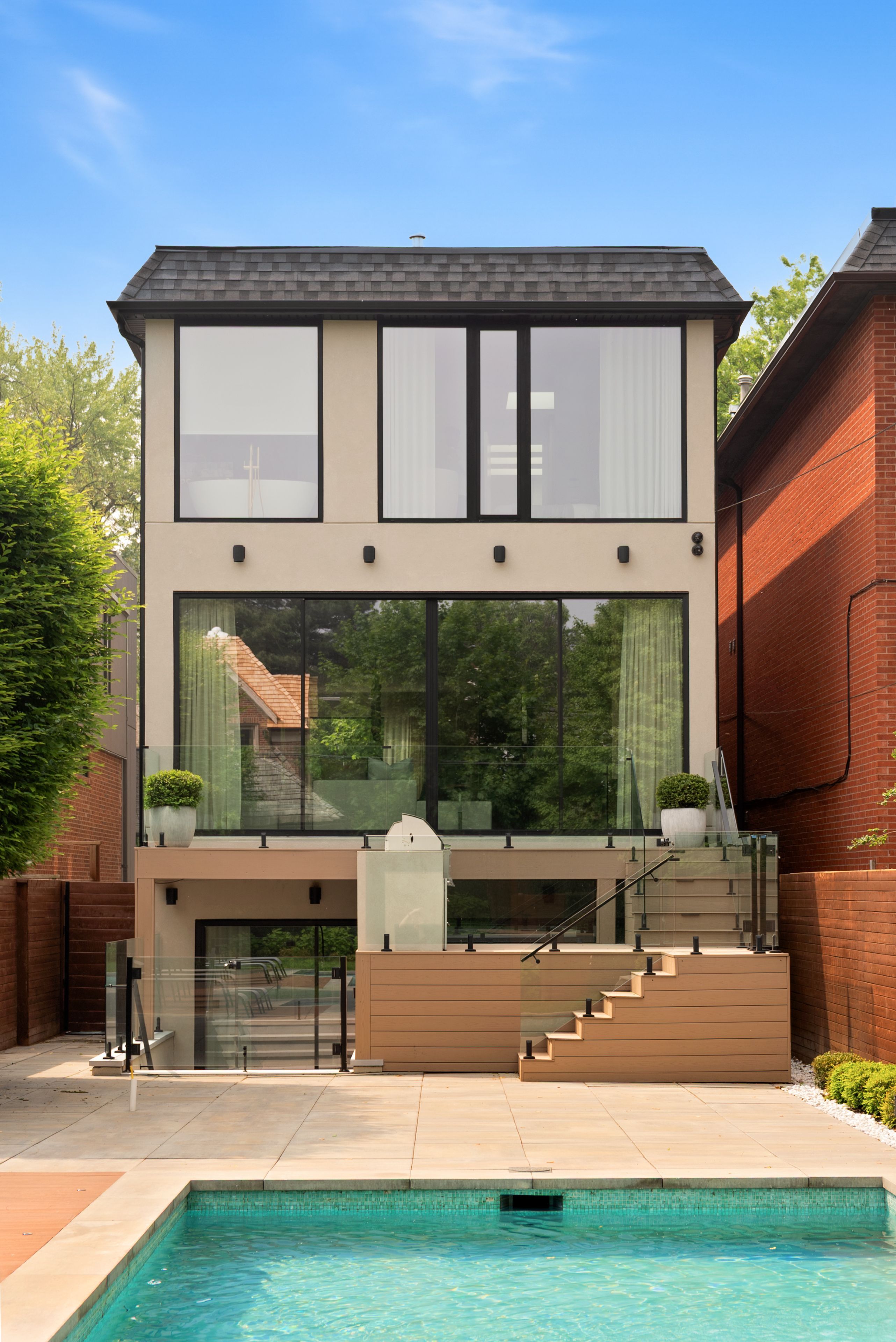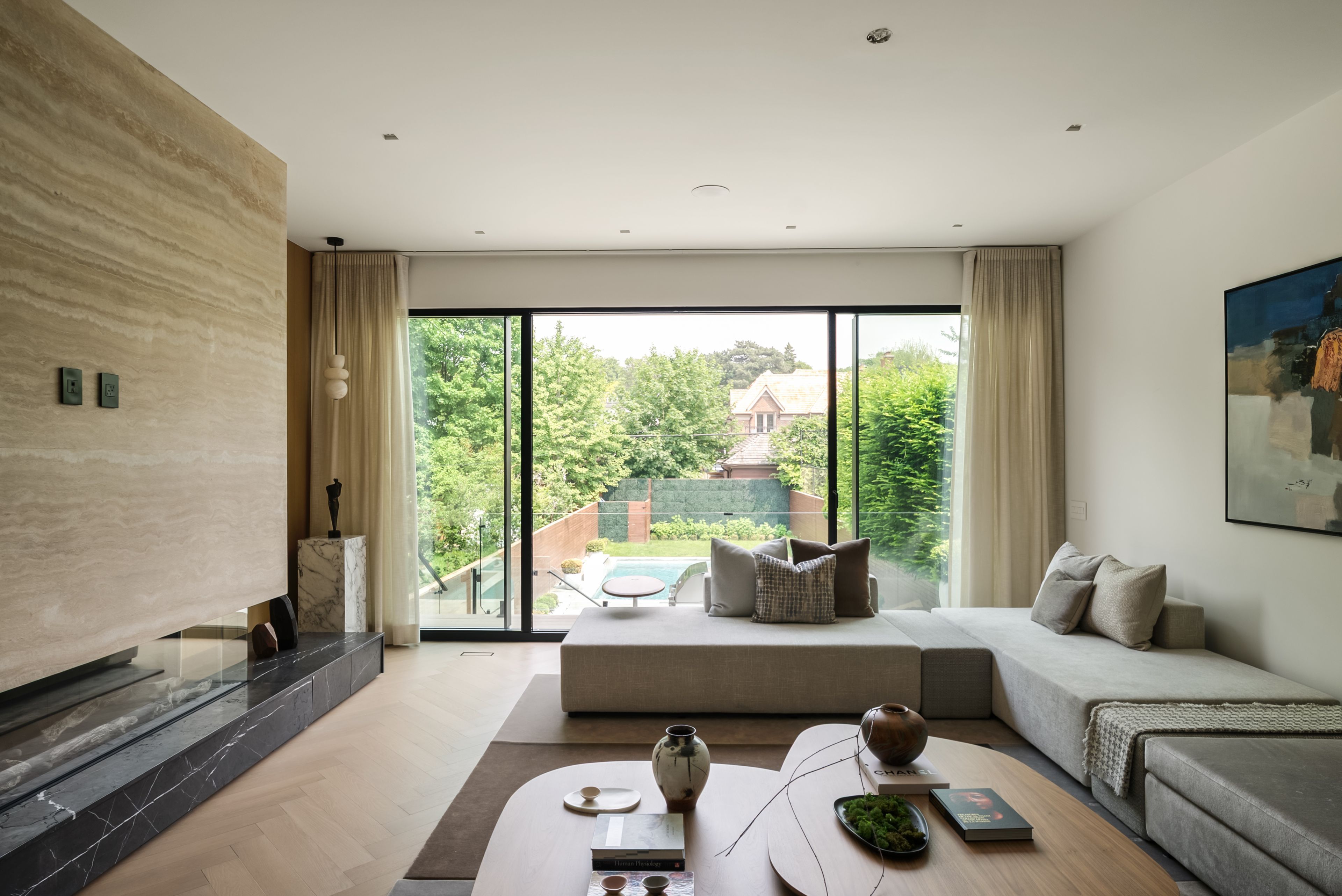 If you're not obsessed with quality, design, and craftsmanship,this is not the home for you. Before you notice the scale, you feel the intention. Set on an extraordinary 185-foot-deep irregular lot in sherwood park, this property offers something almost impossible to replicate in midtown: depth, privacy, open sky, and uninterrupted sightlines surrounded by mature trees. A three-year architectural pursuit built around one idea, permanence. The journey began in tuscany, where authentic stone was hand-selected from mountain quarries. Over 30 slabs of italian marble, calacatta vagli, calacatta viola, arabescato, travertine, pietra grey, individually chosen. Eight months were dedicated to fabrication and installation alone. The kitchen stands as a monolithic statement a 15-foot fully wrapped, bookmatched calacatta vagli island flowing seamlessly into marble-clad walls. A three-sided glass fireplace floats beneath vein-matched travertine framed in deep pietra grey. Rift-cut european white oak defines the architecture, floors, millwork, wall paneling, and the commanding 10 foot entrance door, all meticulously matched. Integrated sub-zero, wolf, and miele appliances disappear into the design. Heated floors extend from the interior living spaces to the driveway and garage. Triple-layer european windows flood more than 4,000 square feet of expanded living space with natural light. And then, the final act. A spectacular designer-landscaped backyard featuring a heated concrete pool clad in premium trend group tile, complete with a waterfall feature and convertible salt or chlorine system. Dual composite decks create layered entertaining spaces. A fully integrated lynx outdoor kitchen. A 32-by-32 custom stone terrace. Intelligent landscaping. Curated lighting. Recognized for its exceptional architecture and designthis home has also been featured in designlines and highlighted across many other respected magazines and design platforms. This is not an ordinary home, it must be experienced.