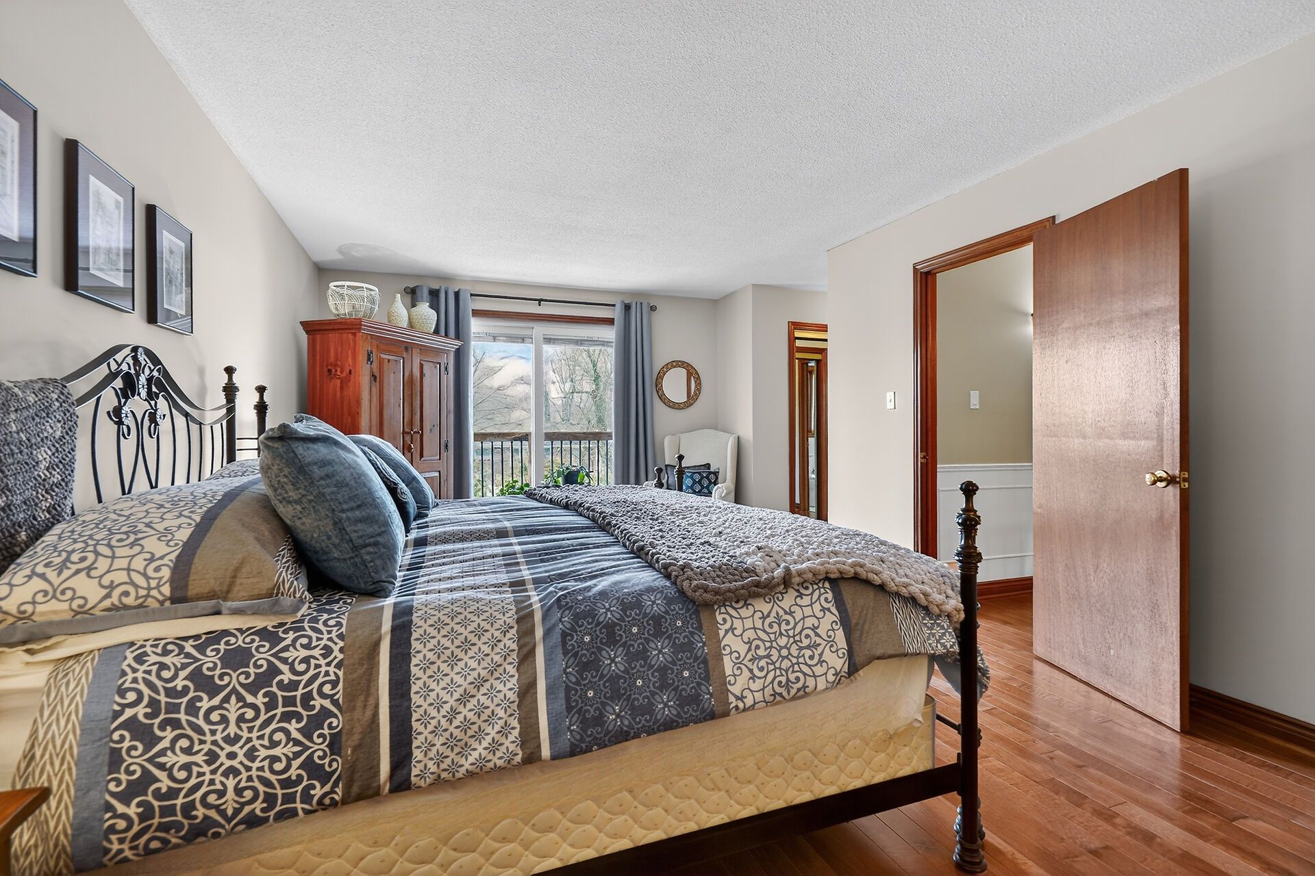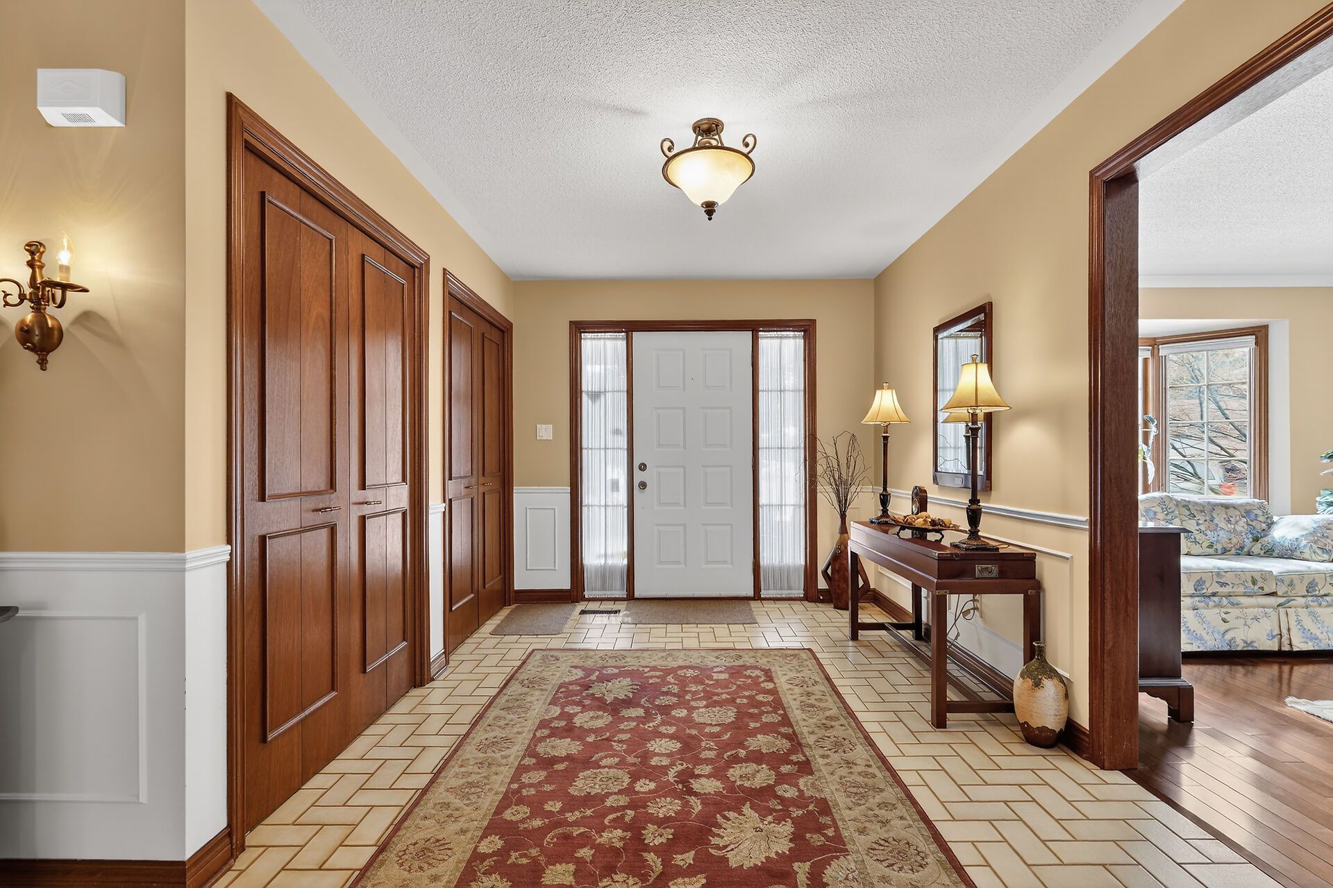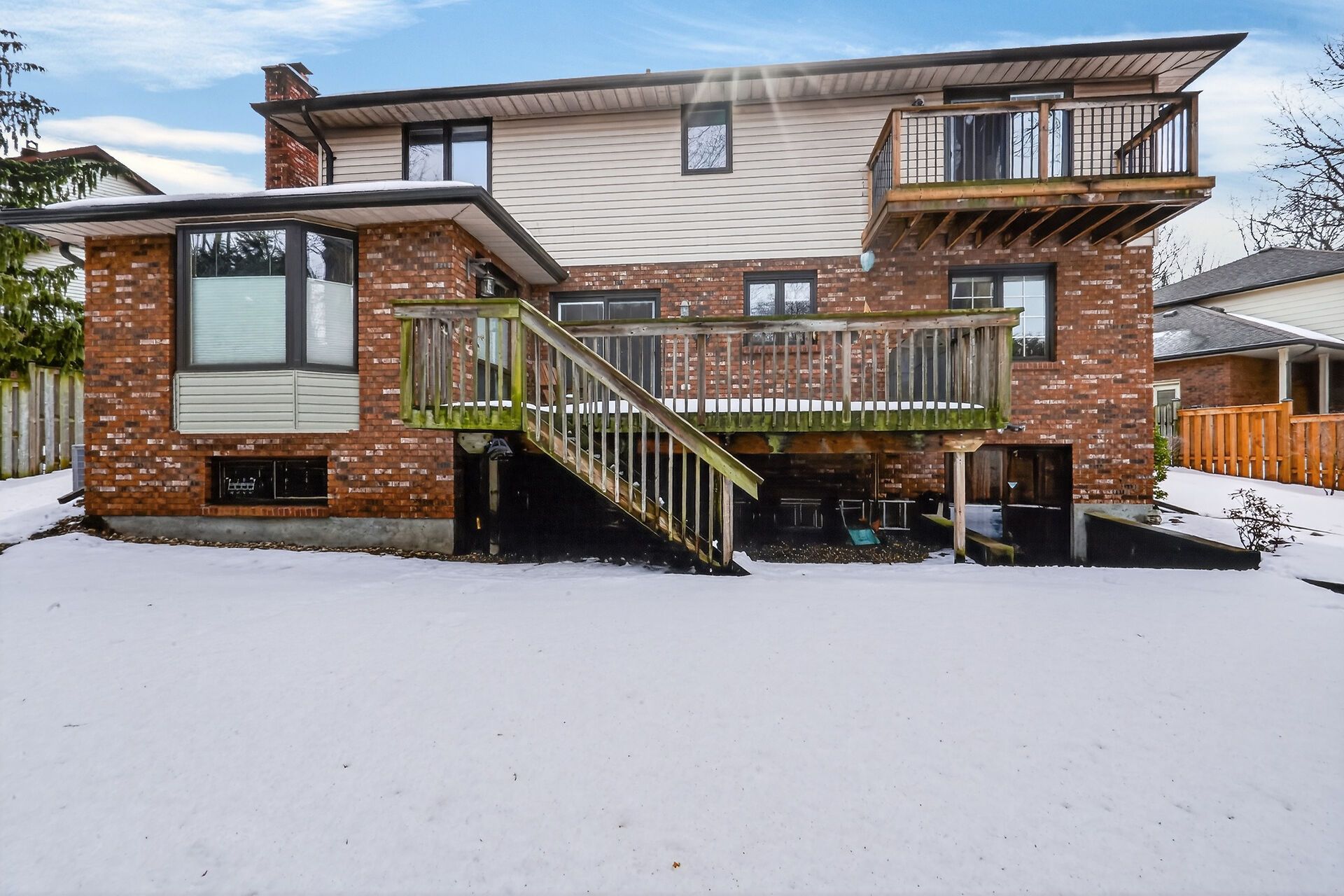 Welcome to byron! Tucked away on a quiet cul-de-sac in sought-after byron, this beautifully maintained 3,000+ sq. Ft. Harasym-built home offers the space, comfort, and privacy every growing family needs. Set on a premium pie-shaped, fully fenced, tree-lined lot, there's plenty of room for kids to play, backyard gatherings, and peaceful evenings outdoors. Enjoy your morning coffee on the private juliet balcony off the primary bedroom or host summer barbecues on the deck just off the kitchen - this home truly embraces indoor-outdoor family living. Step inside to a welcoming grand foyer highlighted by a stunning curved staircase that makes a beautiful first impression. Hardwood and ceramic flooring throughout create a clean, carpet-free environment that's both stylish and practical for busy households. The refreshed kitchen features updated countertops and hardware, seamlessly flowing into the open-concept eating area and cozy family room. Here, a charming yellow brick natural fireplace framed by built-in cabinetry creates the perfect space for movie nights, holiday gatherings, and everyday connection. Upstairs, you'll find five generously sized bedrooms - offering flexibility for large families, guest space, home offices, or a dedicated tv/playroom. Everyone can have their own space while still feeling connected. The lower level walkout is ready for your finishing touches, providing endless possibilities - whether you envision a recreation room, in-law suite, teen retreat, or additional living space as your family grows. Lovingly cared for and filled with pride of ownership, this is more than just a house - it's a place where your family can settle in, spread out, and create lasting memories.