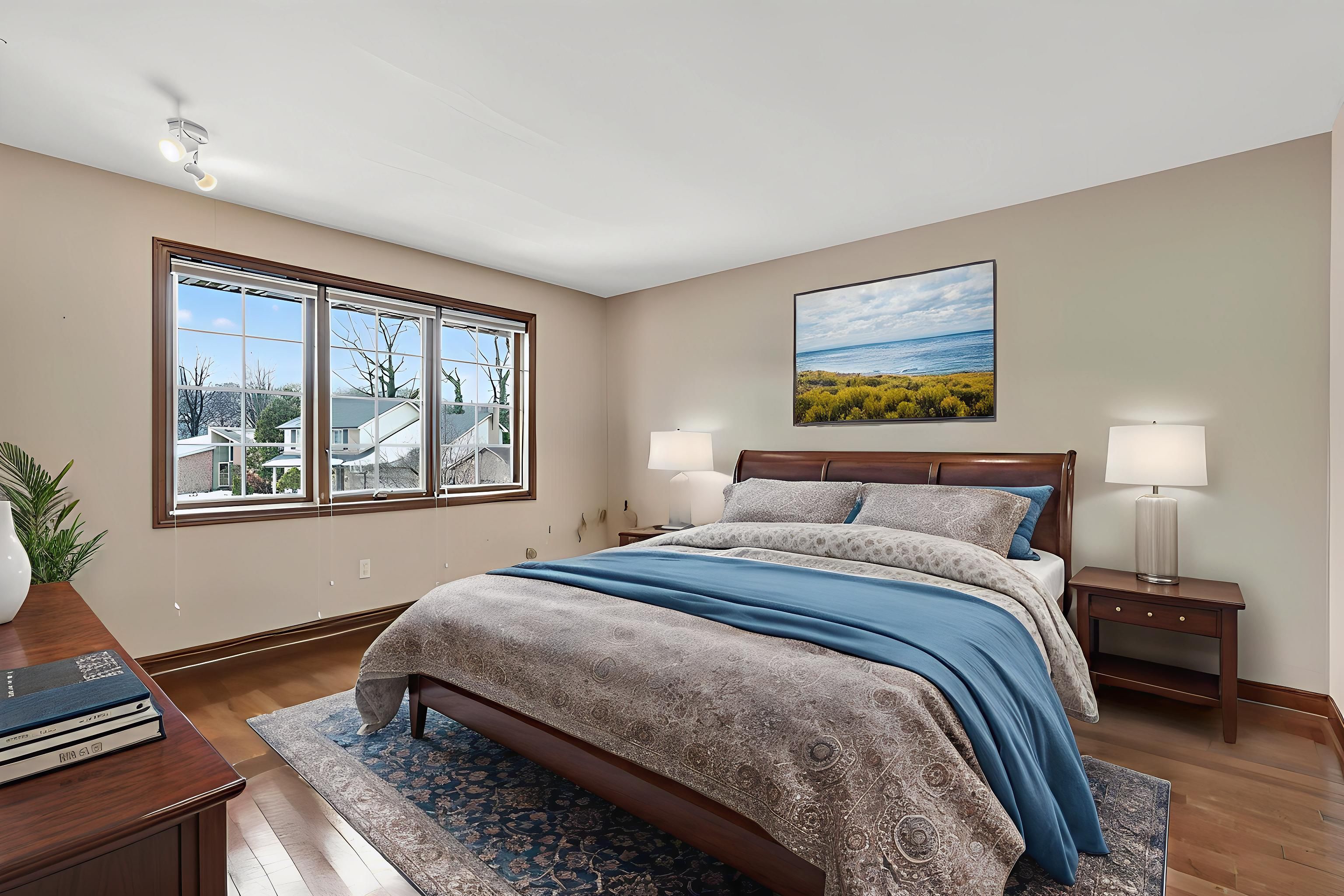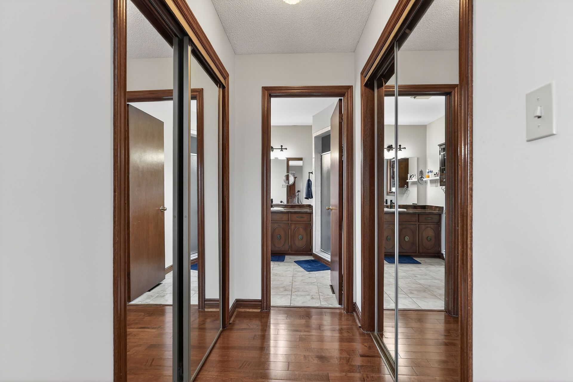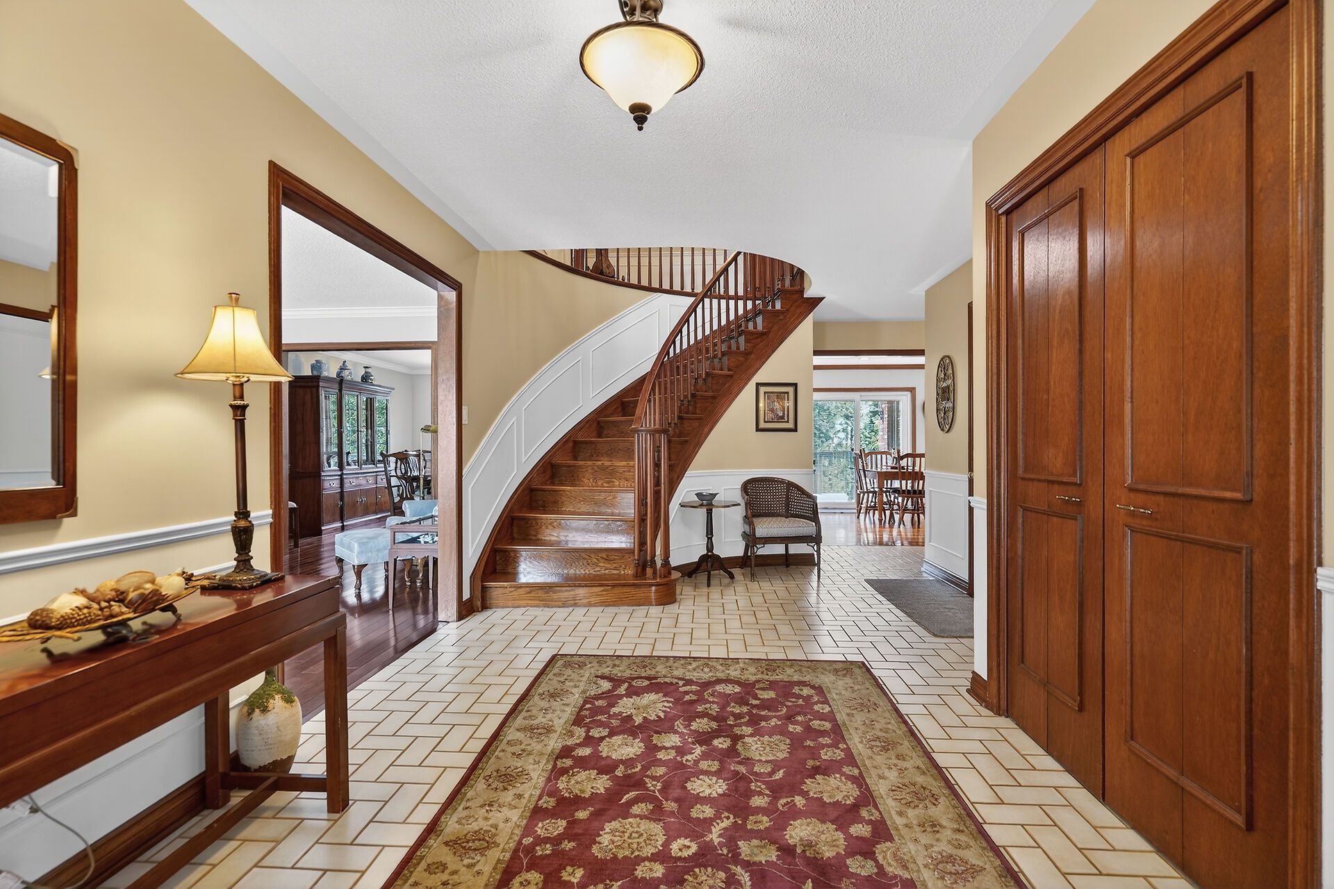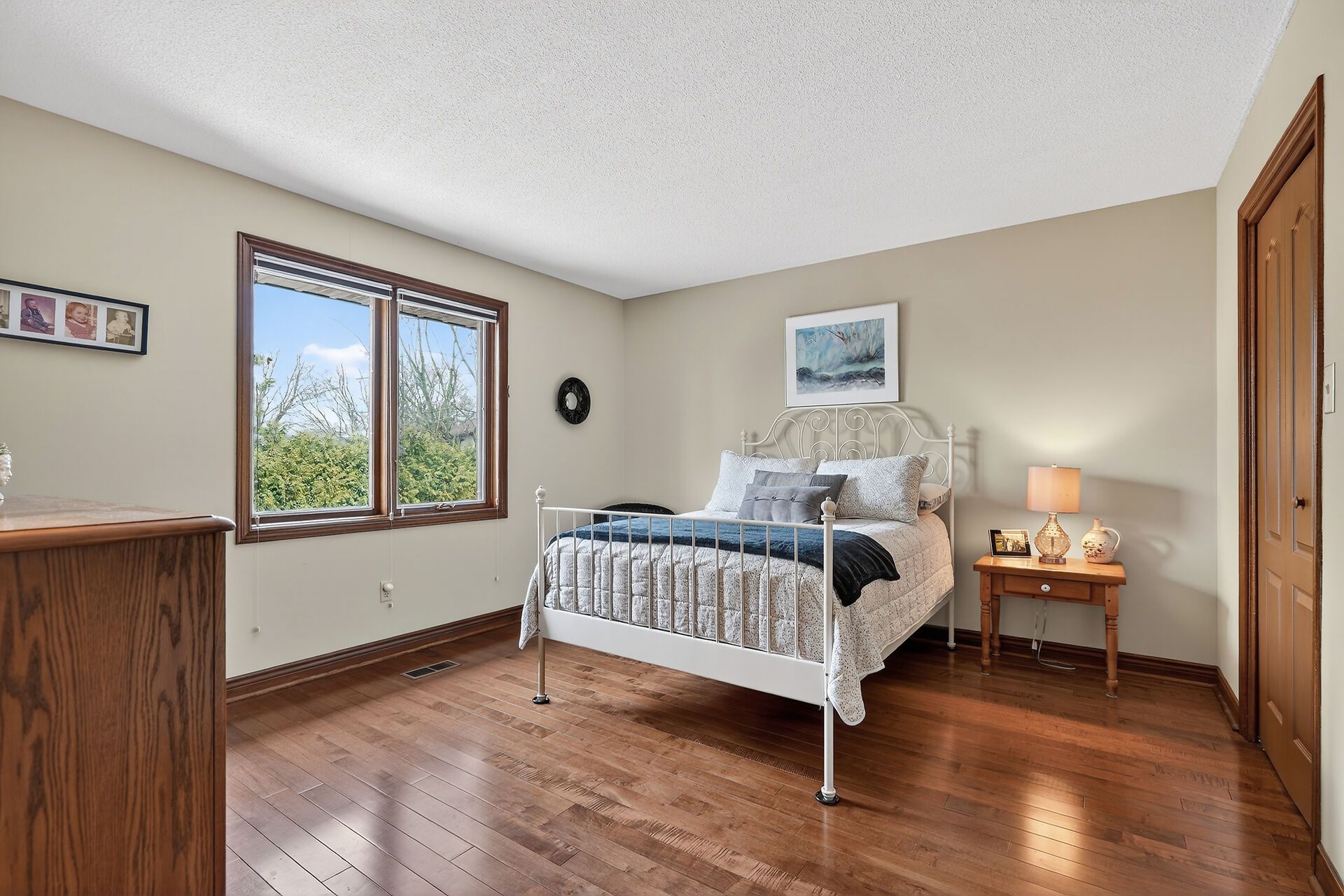 Welcome to byron! Tucked away on a quiet cul-de-sac in sought-after byron, this beautifully maintained 3,000+ sq. Ft. Harasym-built home offers the space, comfort, and privacy every growing family needs. Set on a premium pie-shaped, fully fenced, tree-lined lot, there's plenty of room for kids to play, backyard gatherings, and peaceful evenings outdoors. Enjoy your morning coffee on the private juliet balcony off the primary bedroom or host summer barbecues on the deck just off the kitchen - this home truly embraces indoor-outdoor family living. Step inside to a welcoming grand foyer highlighted by a stunning curved staircase that makes a beautiful first impression. Hardwood and ceramic flooring throughout create a clean, carpet-free environment that's both stylish and practical for busy households. The refreshed kitchen features updated countertops and hardware, seamlessly flowing into the open-concept eating area and cozy family room. Here, a charming yellow brick natural fireplace framed by built-in cabinetry creates the perfect space for movie nights, holiday gatherings, and everyday connection. Upstairs, you'll find five generously sized bedrooms - offering flexibility for large families, guest space, home offices, or a dedicated tv/playroom. Everyone can have their own space while still feeling connected. The lower level walkout is ready for your finishing touches, providing endless possibilities - whether you envision a recreation room, in-law suite, teen retreat, or additional living space as your family grows. Lovingly cared for and filled with pride of ownership, this is more than just a house - it's a place where your family can settle in, spread out, and create lasting memories.