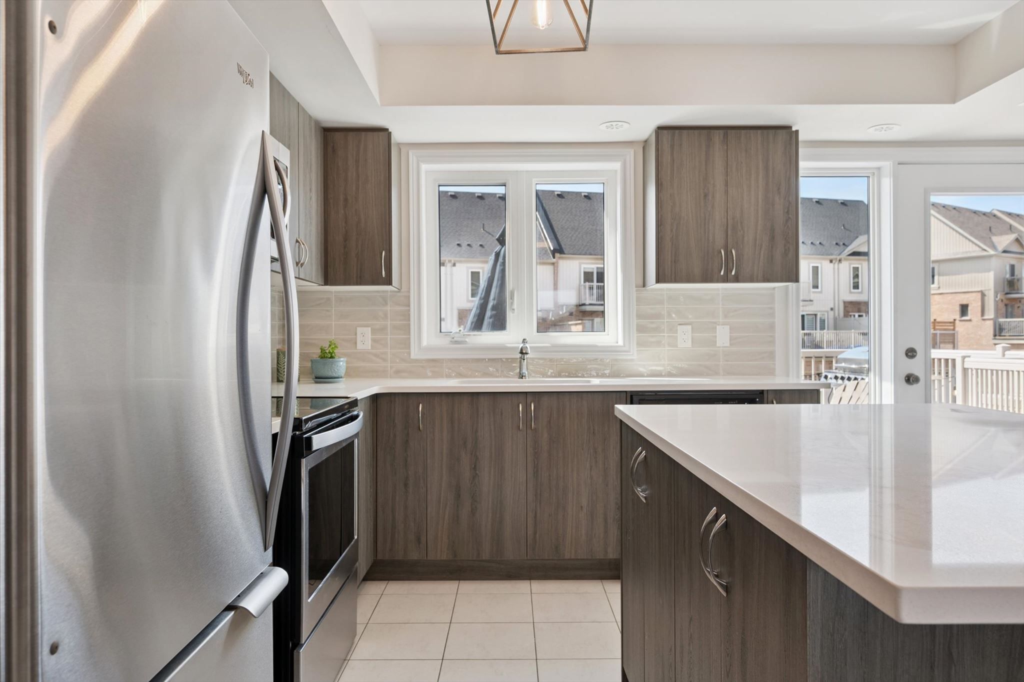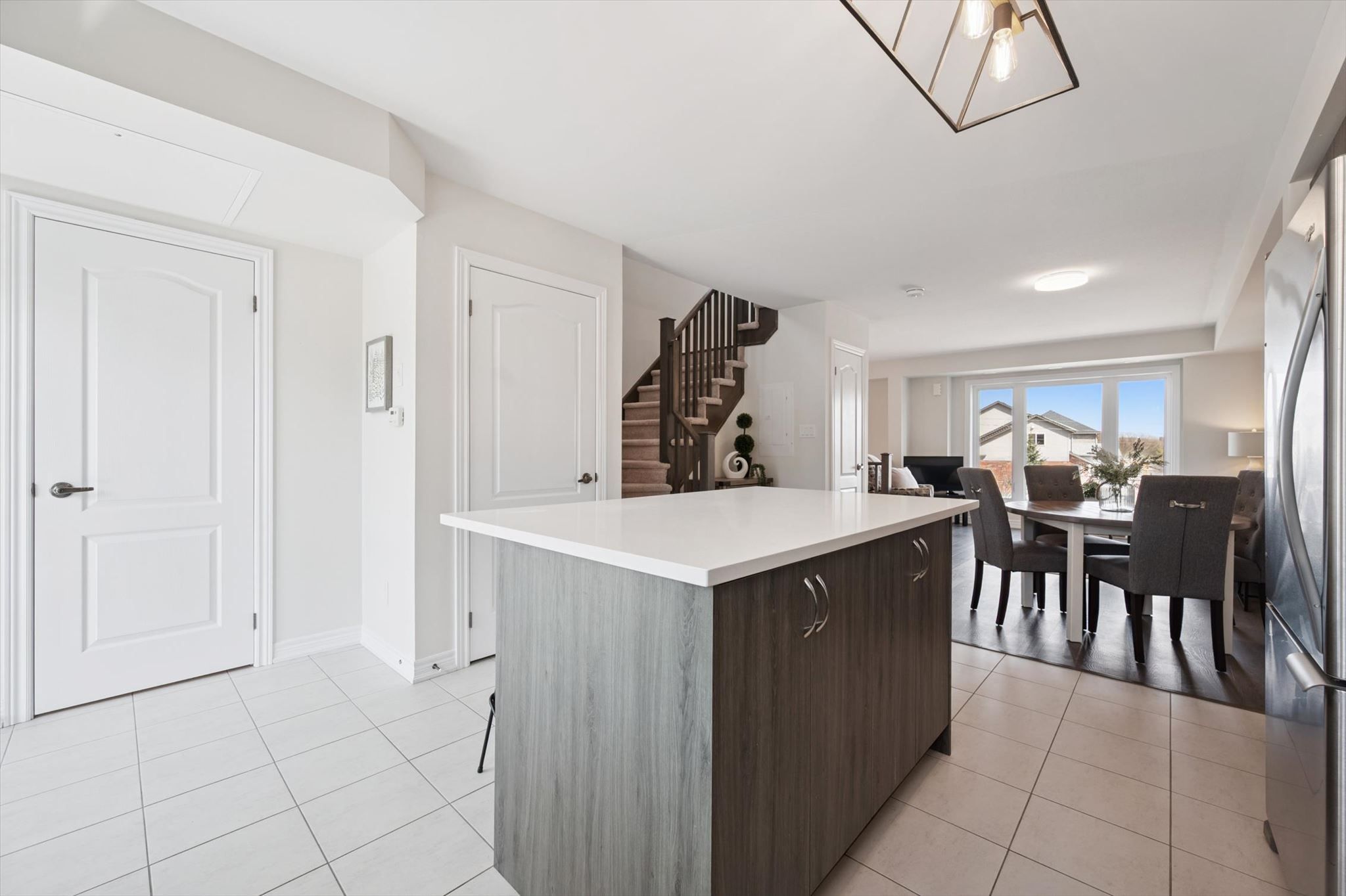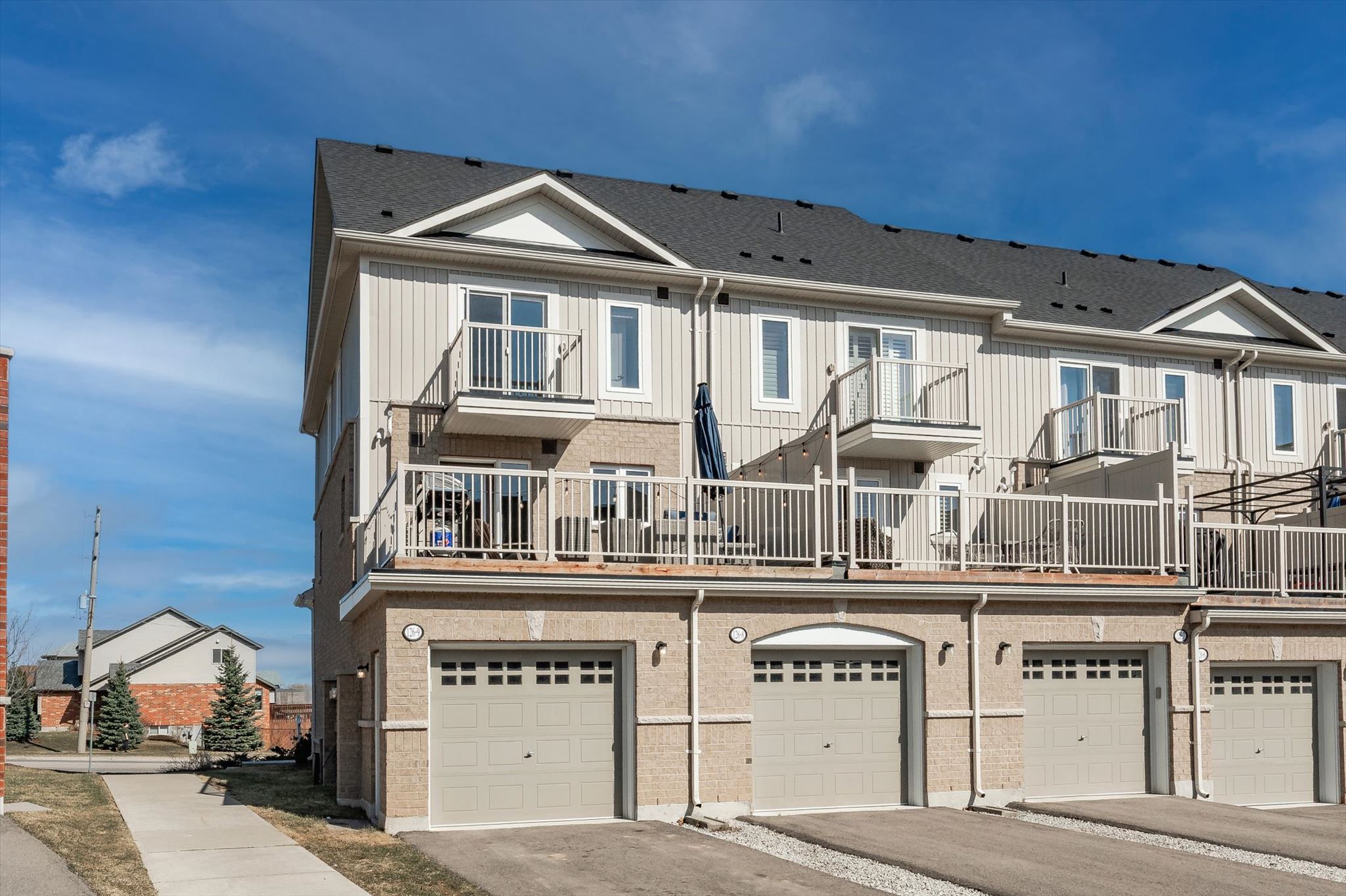 Incredible home in an incredible location! This large end unit 3 bedroom, 2. 5 bath townhome is sure to impress complete with 3 parking spaces! Upon entering you're greeted with the massive open concept main living level filled with natural light from east and west facing windows. The generous living room and dining room space allow for any furniture choices you wish. A contemporary kitchen complete with plenty of storage, quartz counters, stunning backsplash tile, ss appliances and massive island with seating on 2 sides (plus storage front & back!) is the hub of this home. You'll enjoy relaxing or entertaining in this fantastic space with it's views over treed property with the nearby pond in the distance. Off the kitchen is a very large back deck perfect for your quiet morning coffees or evenings entertaining family and friends. Finishing off this level is a lovely 2 pce bath. Upstairs are 3 right sized bedrooms plus desirable bedroom level laundry (complete with floor drain). The primary bedroom is truly a retreat with its own private balcony, generous walk-in closet and upgraded ensuite with glass + tile shower. An unexpected surprise here is the oversized attached garage... Tons of room for storage while still fitting your vehicle! The single wide driveway can hold two cars long. Upgraded luxury vinyl flooring on main and second floors 2023 & new hot water heater 2026. Tasteful neutral decor throughout & the added natural light from additional windows being an end unit are icing on the cake. This east end of guelph area is ideal for families, couples or individuals alike with great schools close by, library, tons of trails/ponds for nature enthusiasts, eastview park with splashpad, disc golf and soccer fields, directly on public transit line and commuter close to main routes! This home must be seen to be appreciated, book your showing today!