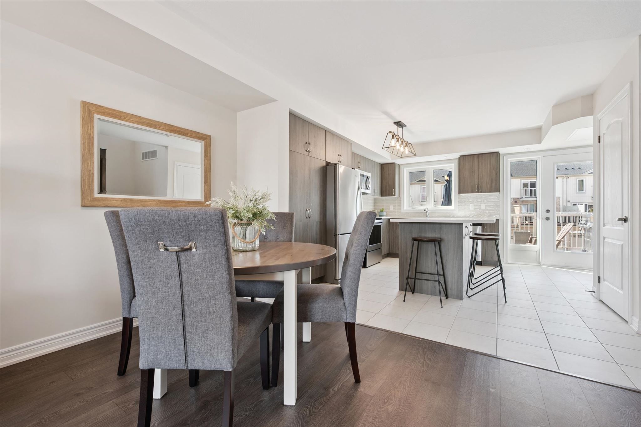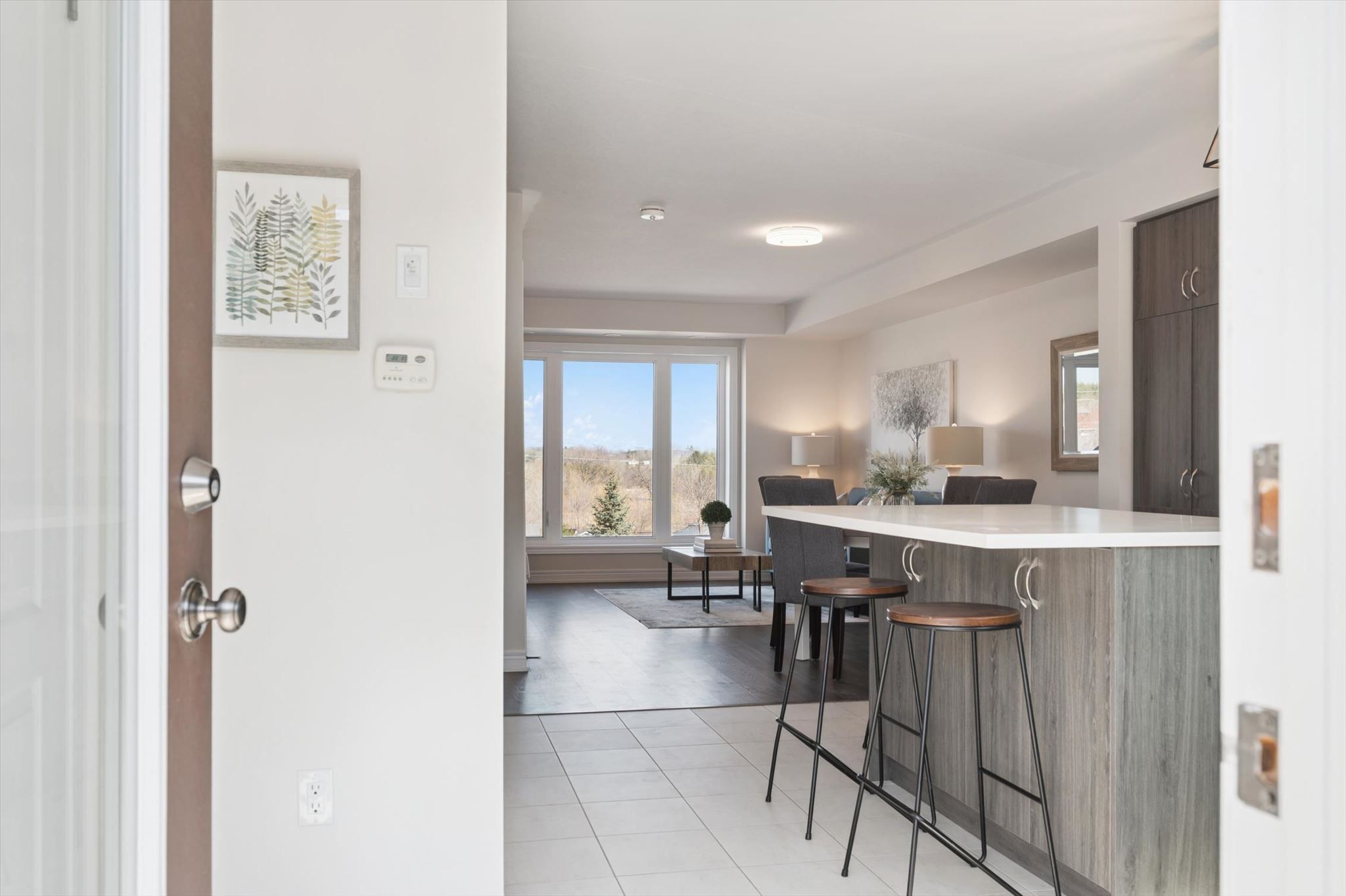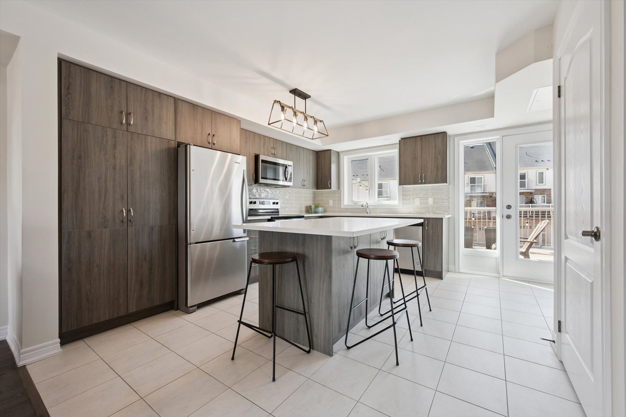 Incredible home in an incredible location! This large end unit 3 bedroom, 2. 5 bath townhome is sure to impress complete with 3 parking spaces! Upon entering you're greeted with the massive open concept main living level filled with natural light from east and west facing windows. The generous living room and dining room space allow for any furniture choices you wish. A contemporary kitchen complete with plenty of storage, quartz counters, stunning backsplash tile, ss appliances and massive island with seating on 2 sides (plus storage front & back!) is the hub of this home. You'll enjoy relaxing or entertaining in this fantastic space with it's views over treed property with the nearby pond in the distance. Off the kitchen is a very large back deck perfect for your quiet morning coffees or evenings entertaining family and friends. Finishing off this level is a lovely 2 pce bath. Upstairs are 3 right sized bedrooms plus desirable bedroom level laundry (complete with floor drain). The primary bedroom is truly a retreat with its own private balcony, generous walk-in closet and upgraded ensuite with glass + tile shower. An unexpected surprise here is the oversized attached garage... Tons of room for storage while still fitting your vehicle! The single wide driveway can hold two cars long. Upgraded luxury vinyl flooring on main and second floors 2023 & new hot water heater 2026. Tasteful neutral decor throughout & the added natural light from additional windows being an end unit are icing on the cake. This east end of guelph area is ideal for families, couples or individuals alike with great schools close by, library, tons of trails/ponds for nature enthusiasts, eastview park with splashpad, disc golf and soccer fields, directly on public transit line and commuter close to main routes! This home must be seen to be appreciated, book your showing today!