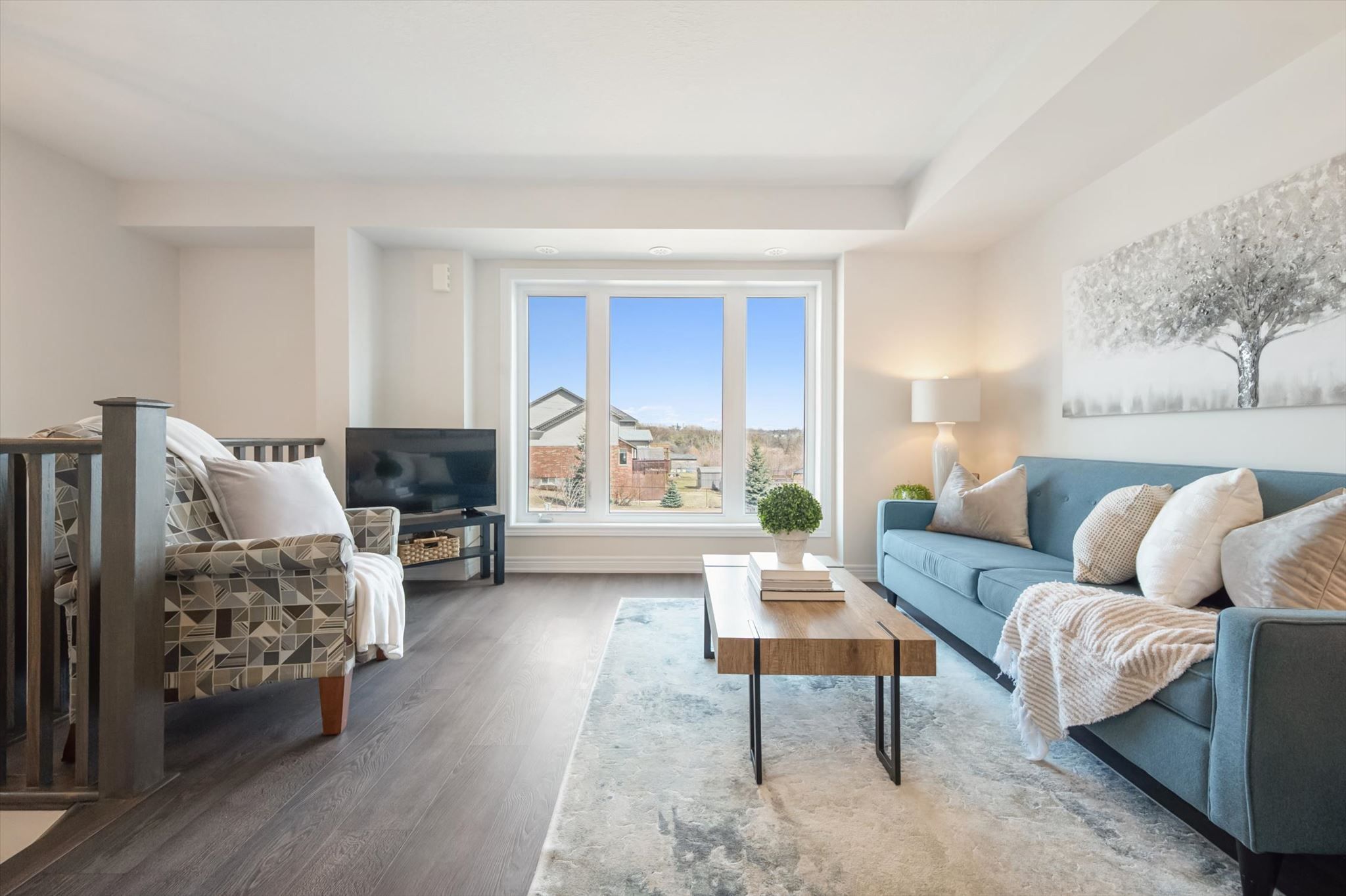 • Bright open concept living area with ample natural light from multiple windows.