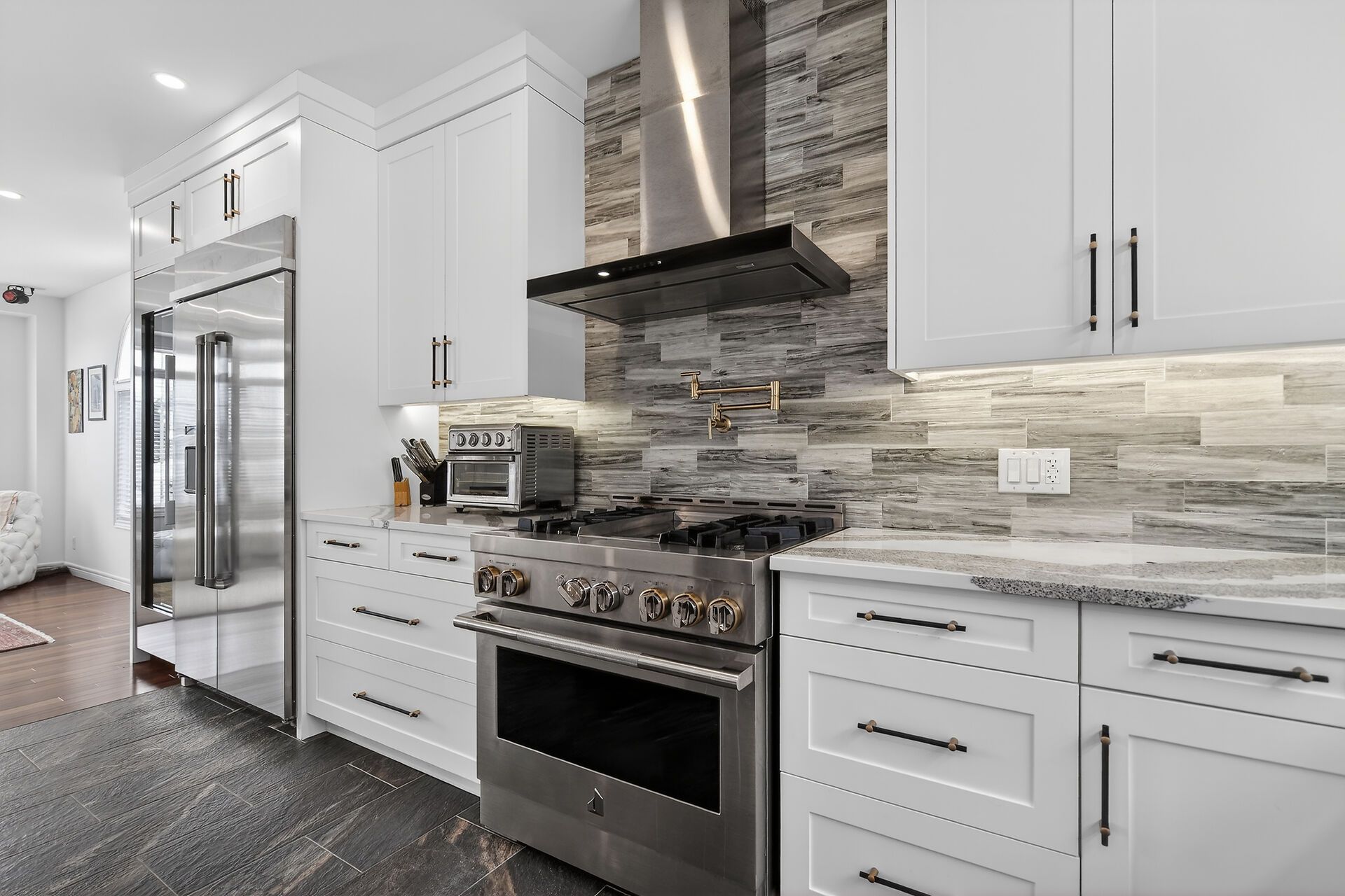 • Stunning cut stone façade with elegant windows for great curb appeal.