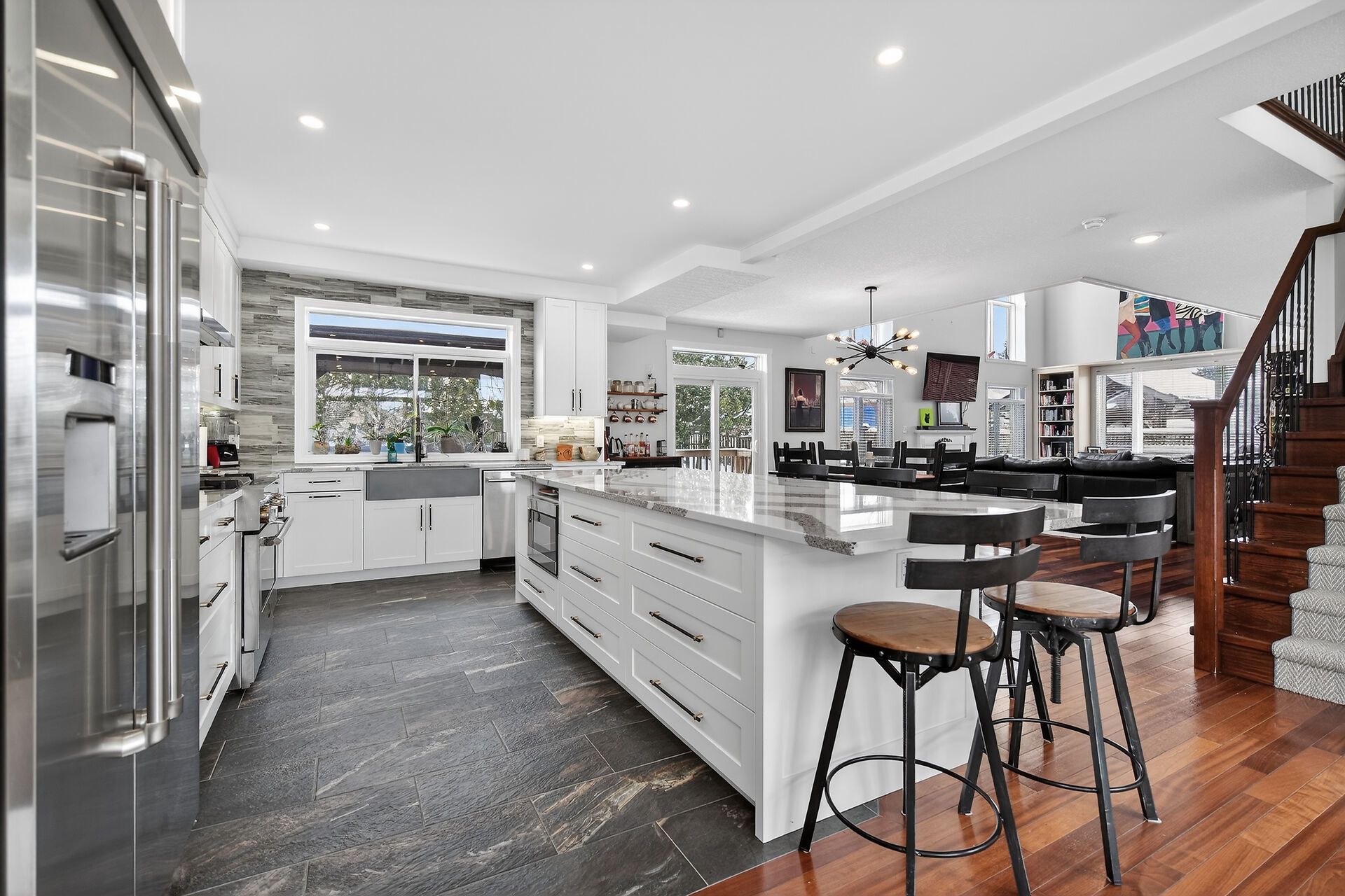 • Bright main floor with high ceilings and dimmable kitchen lighting.