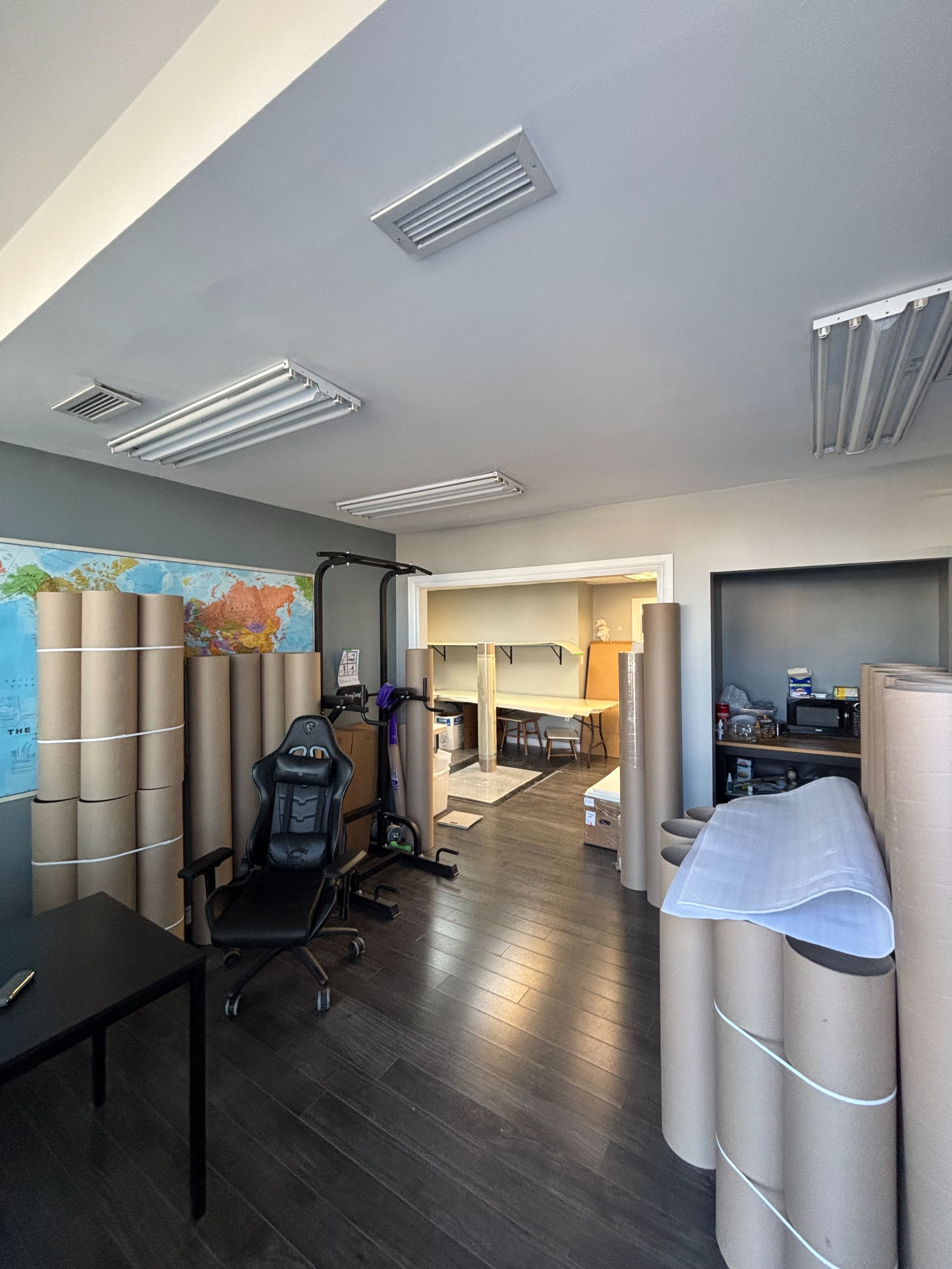 • Renovated mezzanine adds extra work or storage space.