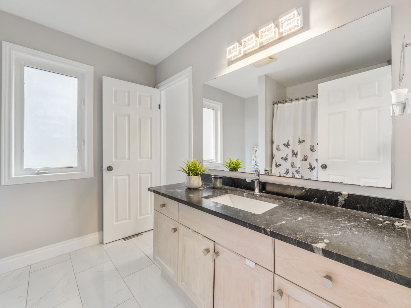 • Bright open-concept main floor with fresh paint and vinyl flooring.